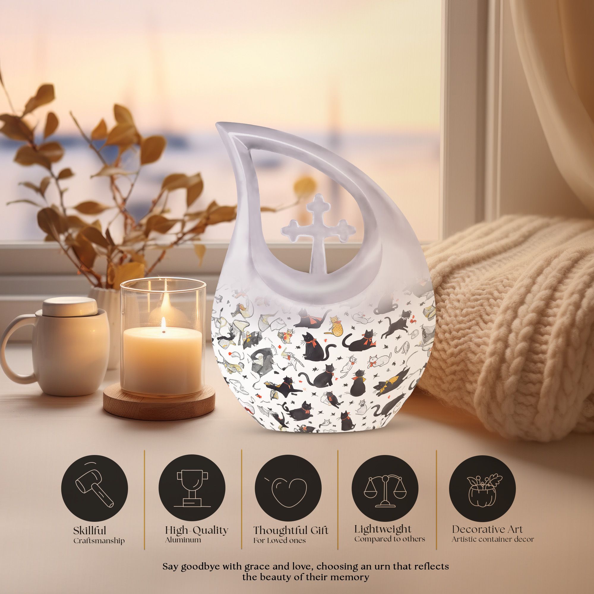 Crafted from durable aluminium, this urn features a gentle cat-pattern motif symbolizing companionship, loyalty, and comfort. Its compact size makes it ideal for keepsake small urns, small urns for ashes adult female, and personal remembrance displays. Whether used as a primary keepsake urn, shared among family, or added to your collection of memorial keepsakes for ashes, this design brings peace and warmth to any space.