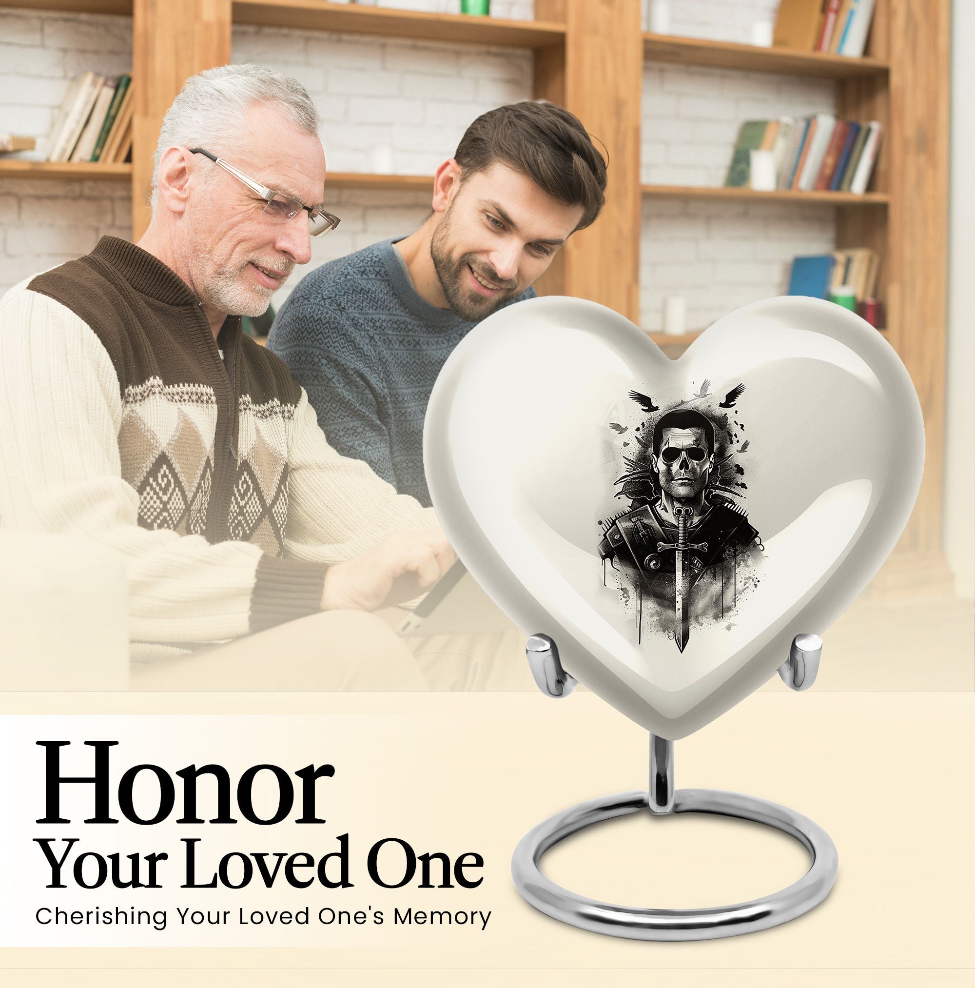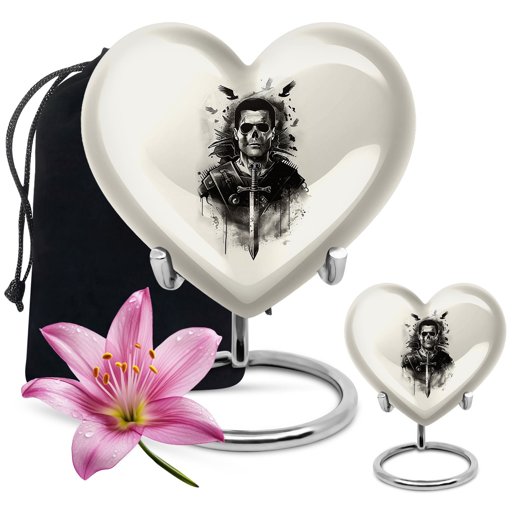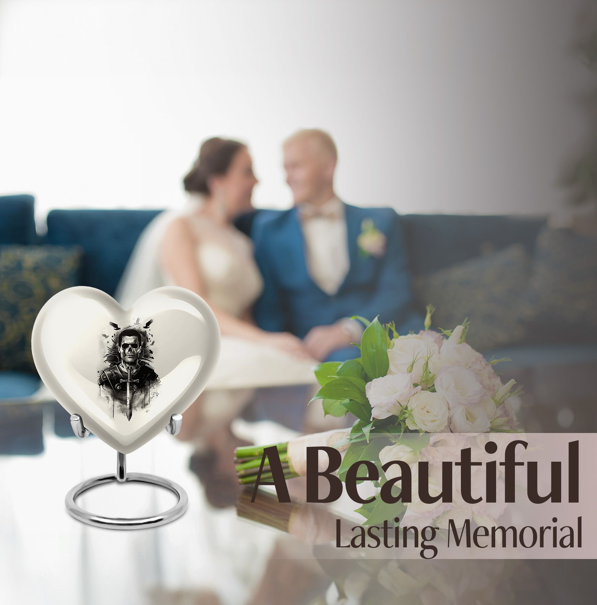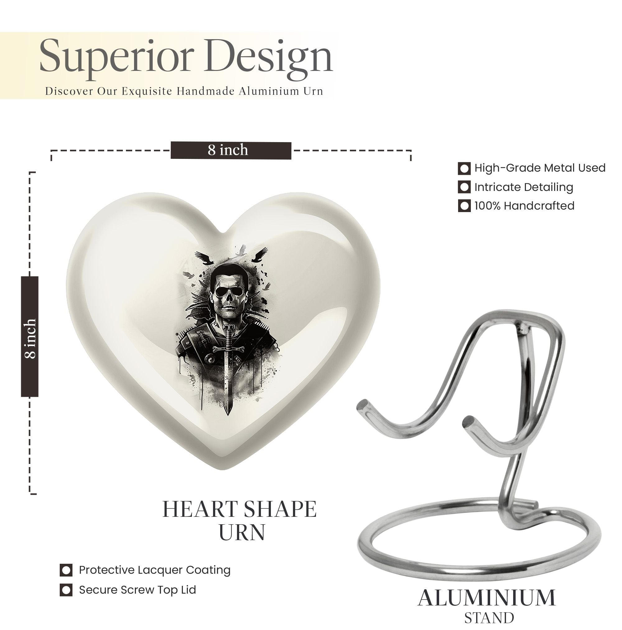 Honor your loved one's memory with our beautifully crafted, 10-inch tall Catholic Urn, a distinct choice among burial funeral cremation urns. Carefully weighing 3.3 pounds, this large urn, fashioned from high-grade Aluminium, evokes comfort and peace. Its compelling heart urn theme and abstract stylization create a cherished resting space for ashes. Each urn includes a velvet pouch, just apt to store cherished remembrances. With a substantial capacity of 200 cubic inches, it can accommodate adult male or woman’s ashes. As a thoughtful touch, you also have the option to personalize it with engraved names. Our Catholic urn stands out among cremation urns for human ashes, as this urn can be used as a decorative urn at home too. Note: 'Cremation urn' is an important search term to keep in mind when looking for our product. The durability and finish of our man's metal cremation urn will certainly impress.