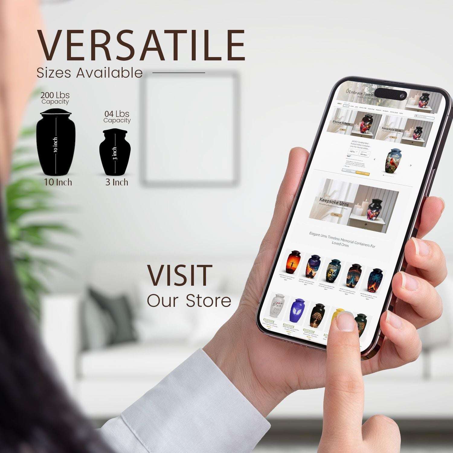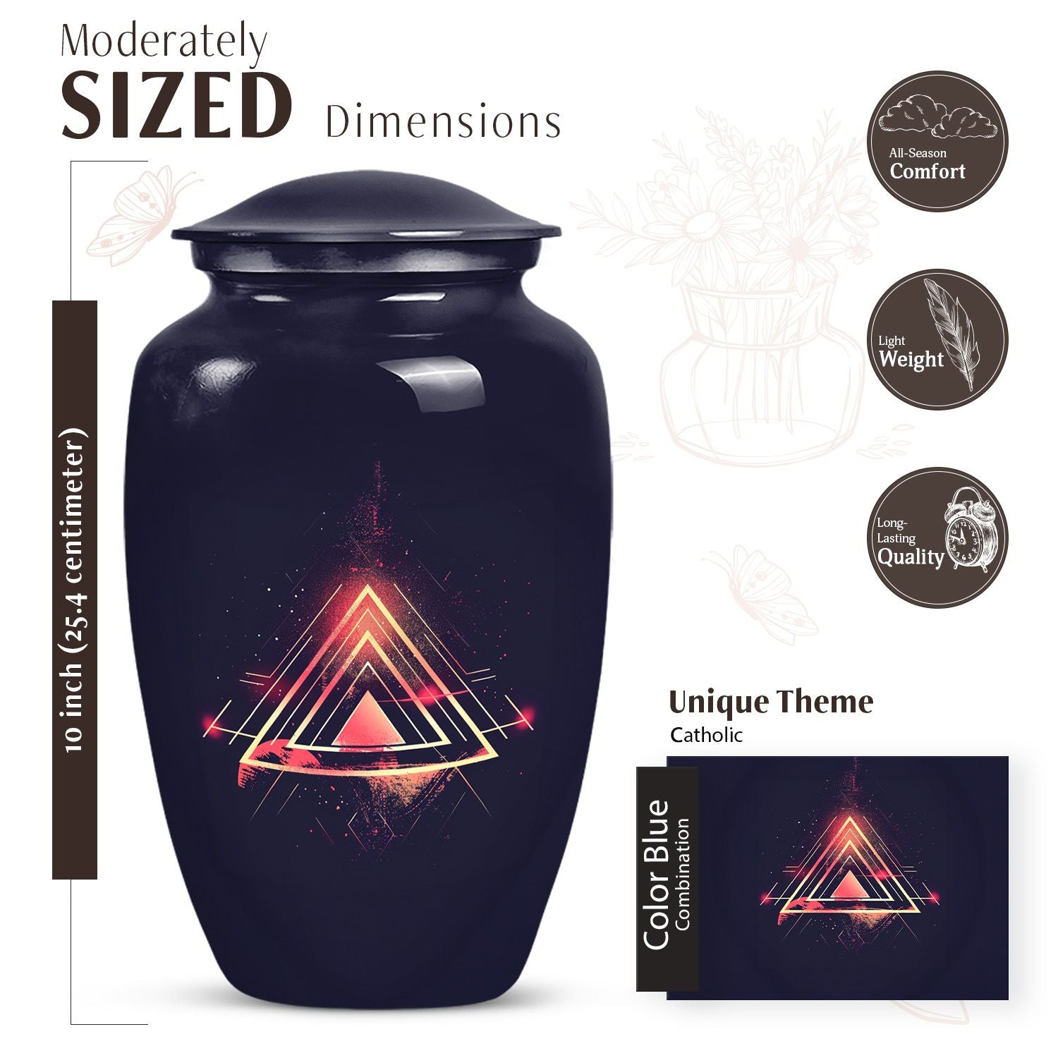 Embrace eternal peace with our classic, 10 inch, catholic urn. Crafted from sturdy aluminium, this burial urn is an artistic amalgamation of abstract theme with a classic silhouette. A weight of 3.3 pounds and dimensions of 10 inches in height, this cremation urn offers a capacity of 200 cubic inches, making it a suitable choice for preserving the cherished memories of your loved ones. Unlike ordinary urns, this particular item allows personal customization - engrave names to immortalize the eternal bond shared with the departed. Further adding to its convenience is the inclusion of a velvety pouch - designed for the containment of ashes. Whether you are looking for cremation urns for women or metal urns for burial in ground large, this product aligns with diverse needs. Experience a meaningful remembrance with our unique, medium size, catholic urn that is made even more special with its potential for personalization.