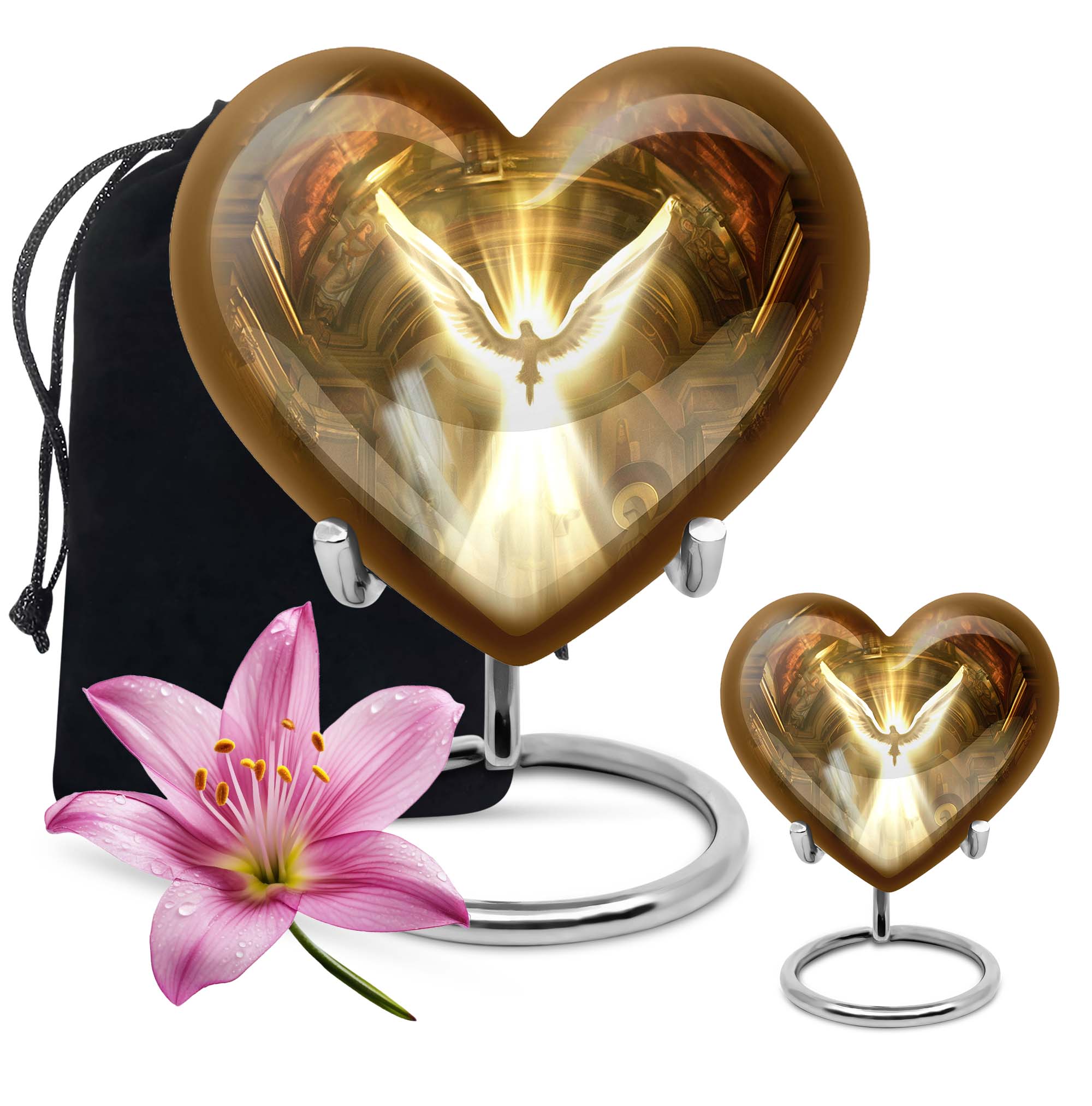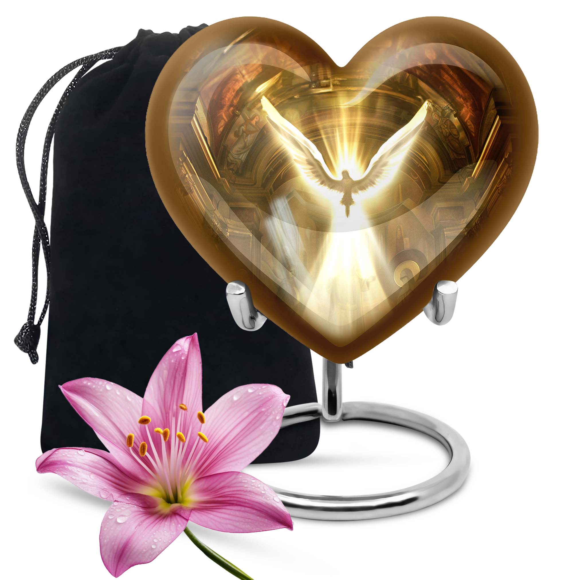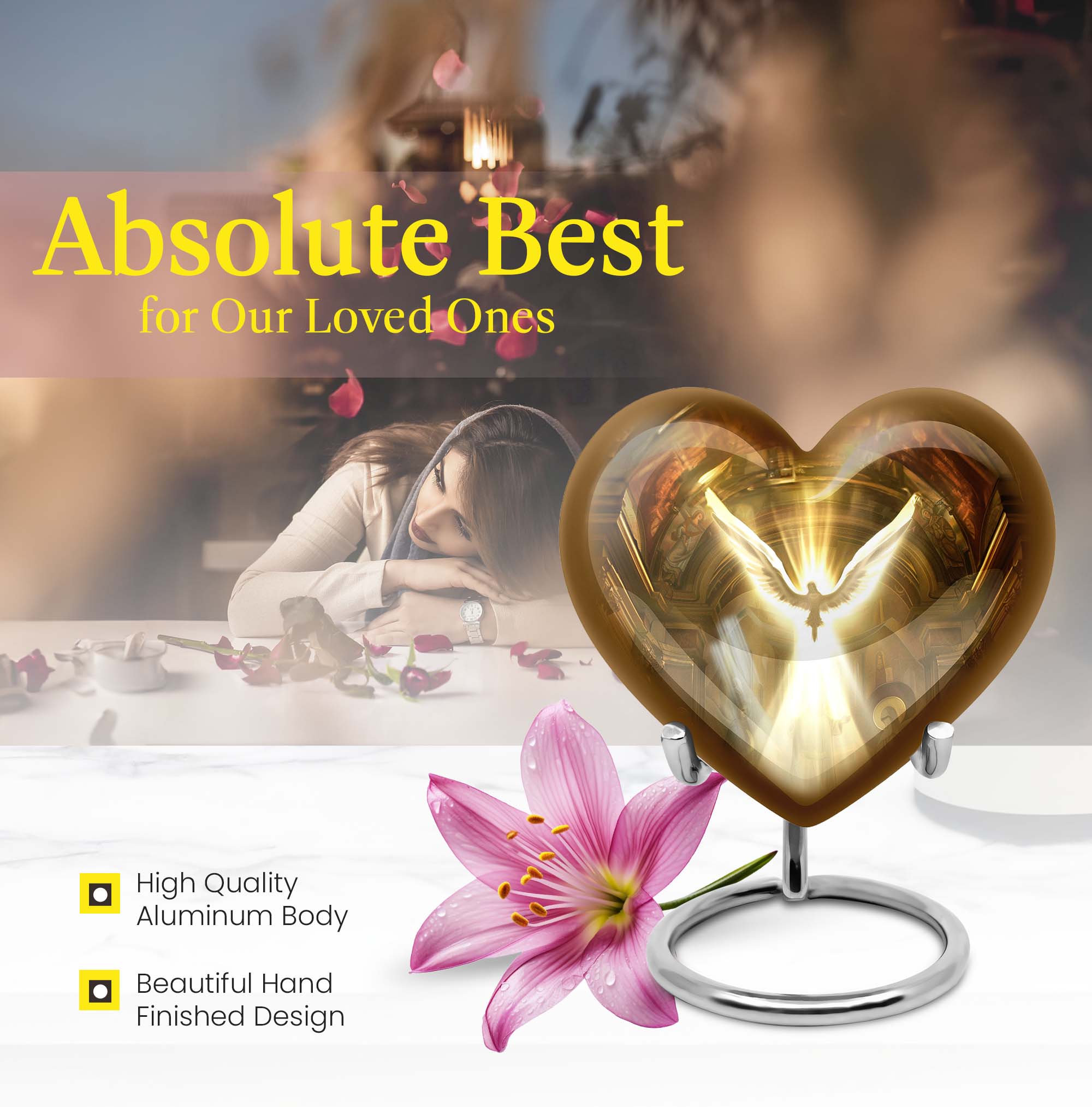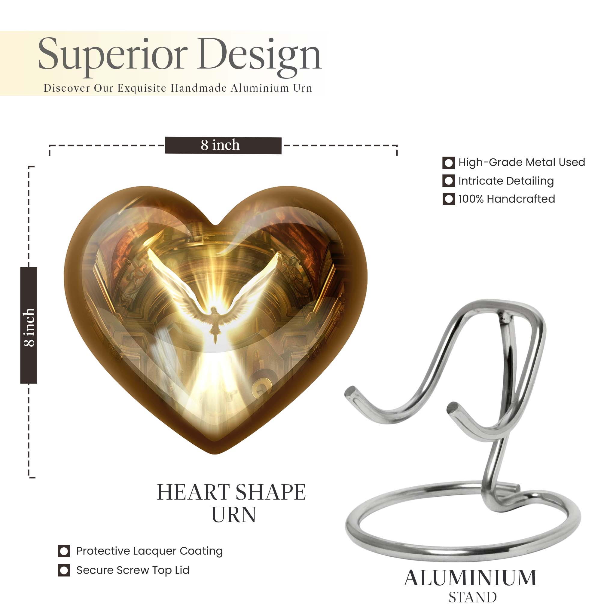 Honor your loved ones with this exquisite 10 Inch Heart Urn, a symbol of love and dedication. Crafted from durable Aluminium and weighing 3.3 pounds, this large urn is perfectly suited for holding up to 200 cubic inches of ashes. Each cremation medium urn is finely detailed with an abstract theme, expressing profound respect and dignity. It takes a unique place in the category of catholic urns, representing a blend of spiritual faith and appreciation for the departed. The urn is accompanied by a velvet pouch, adding a touch of elegance to the containment of ashes. Personally, engrave names on it, creating a heartfelt keepsake. With emphasis on funeral urns for human ashes adult, this product adheres to the solemnity of the moment, serving as a distinctive alternative to traditional burial cremation urns or human cremation shaped to go containers. An exceptional choice for those wanting to preserve the memory of the deceased with dignity and grace.