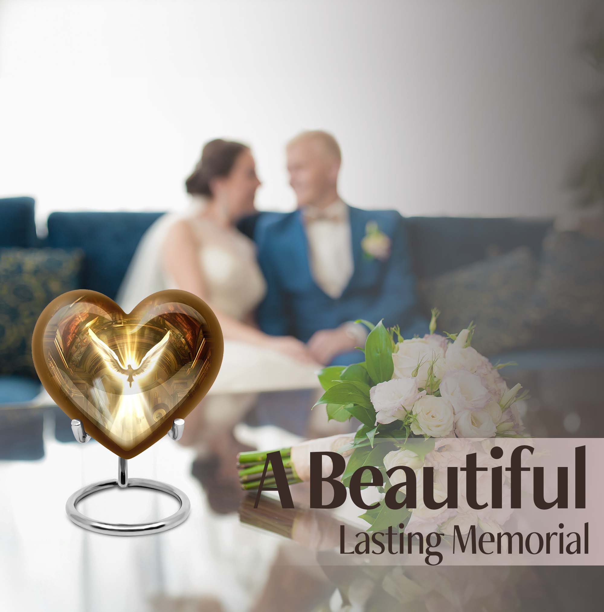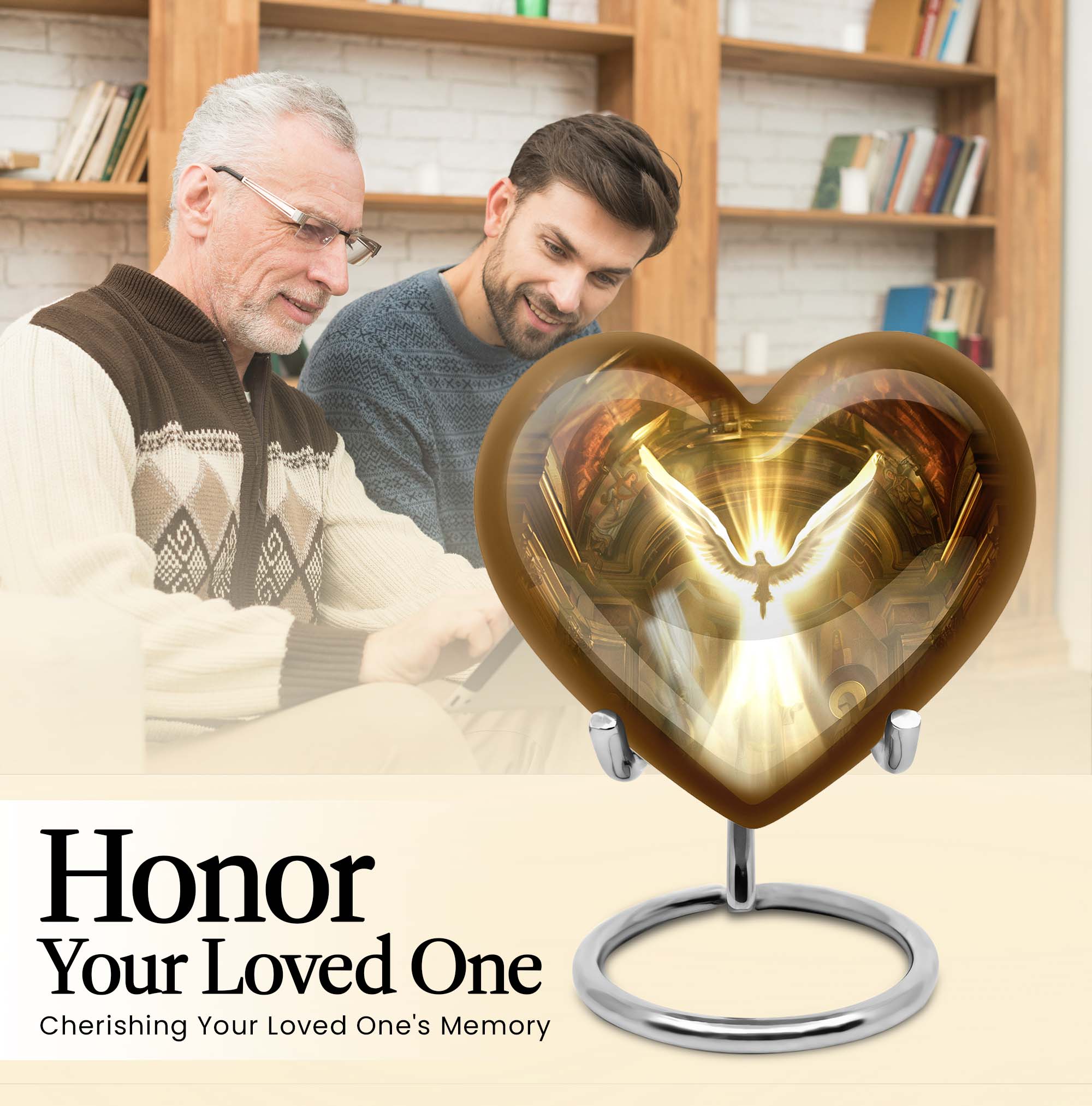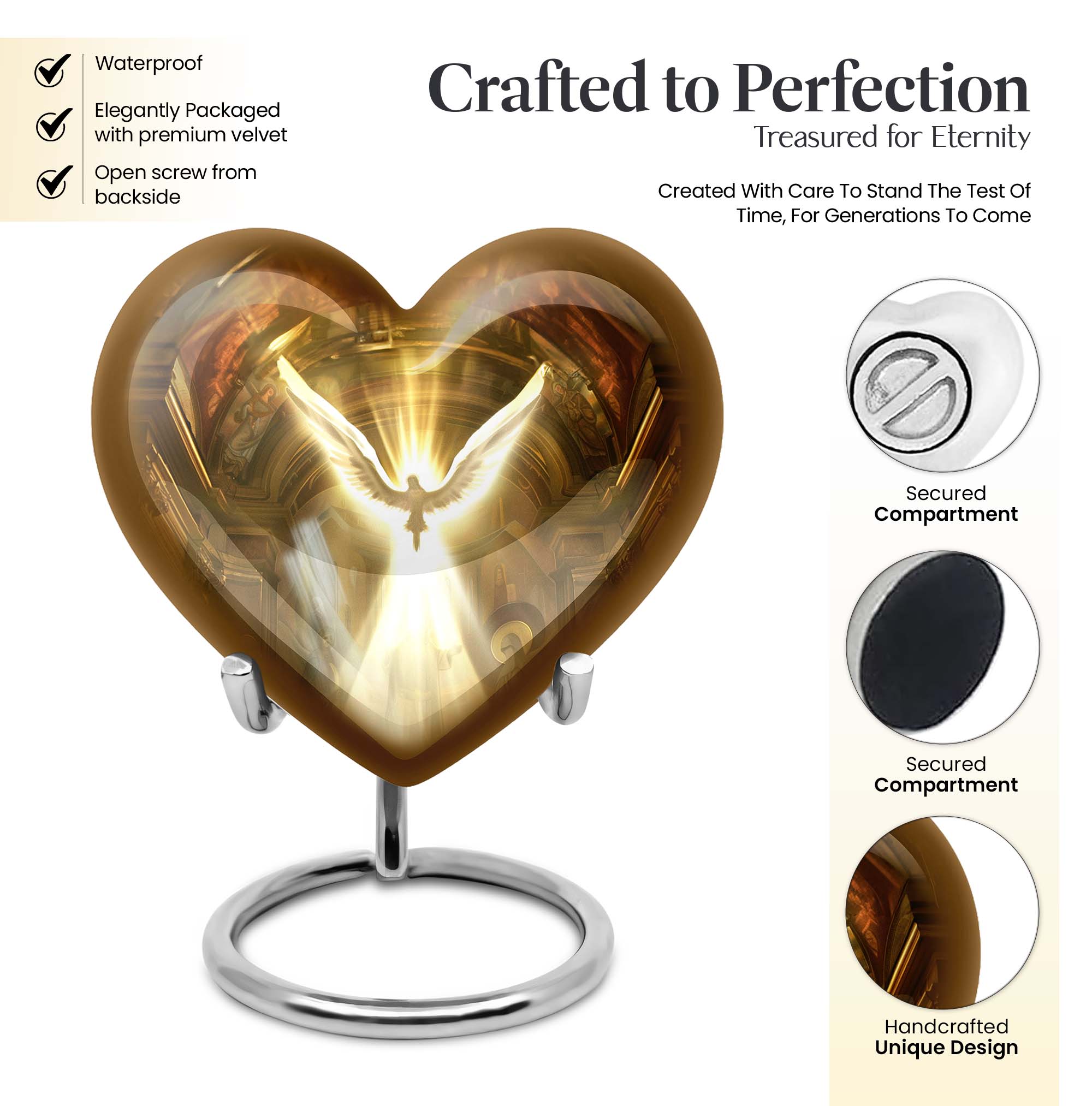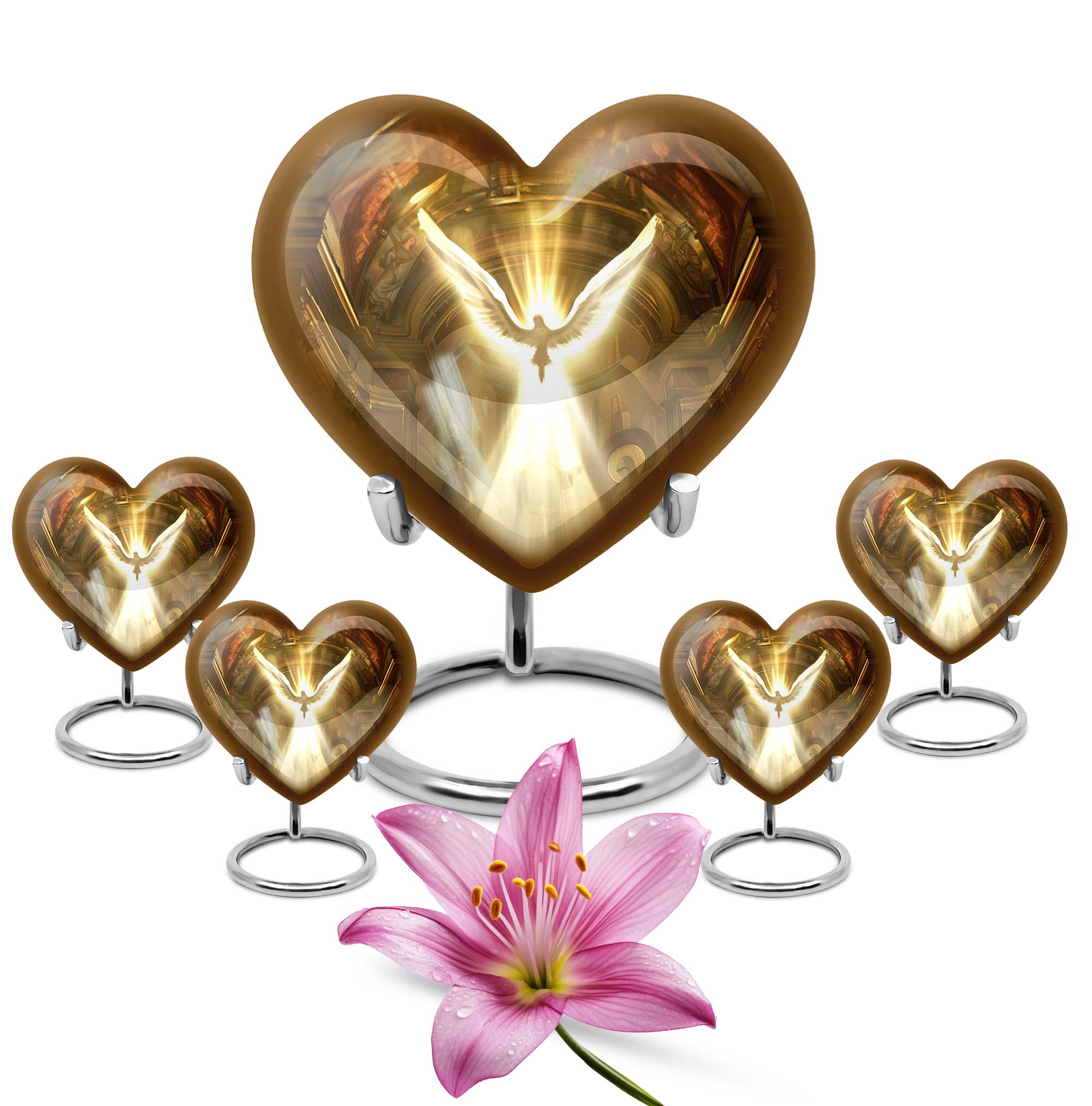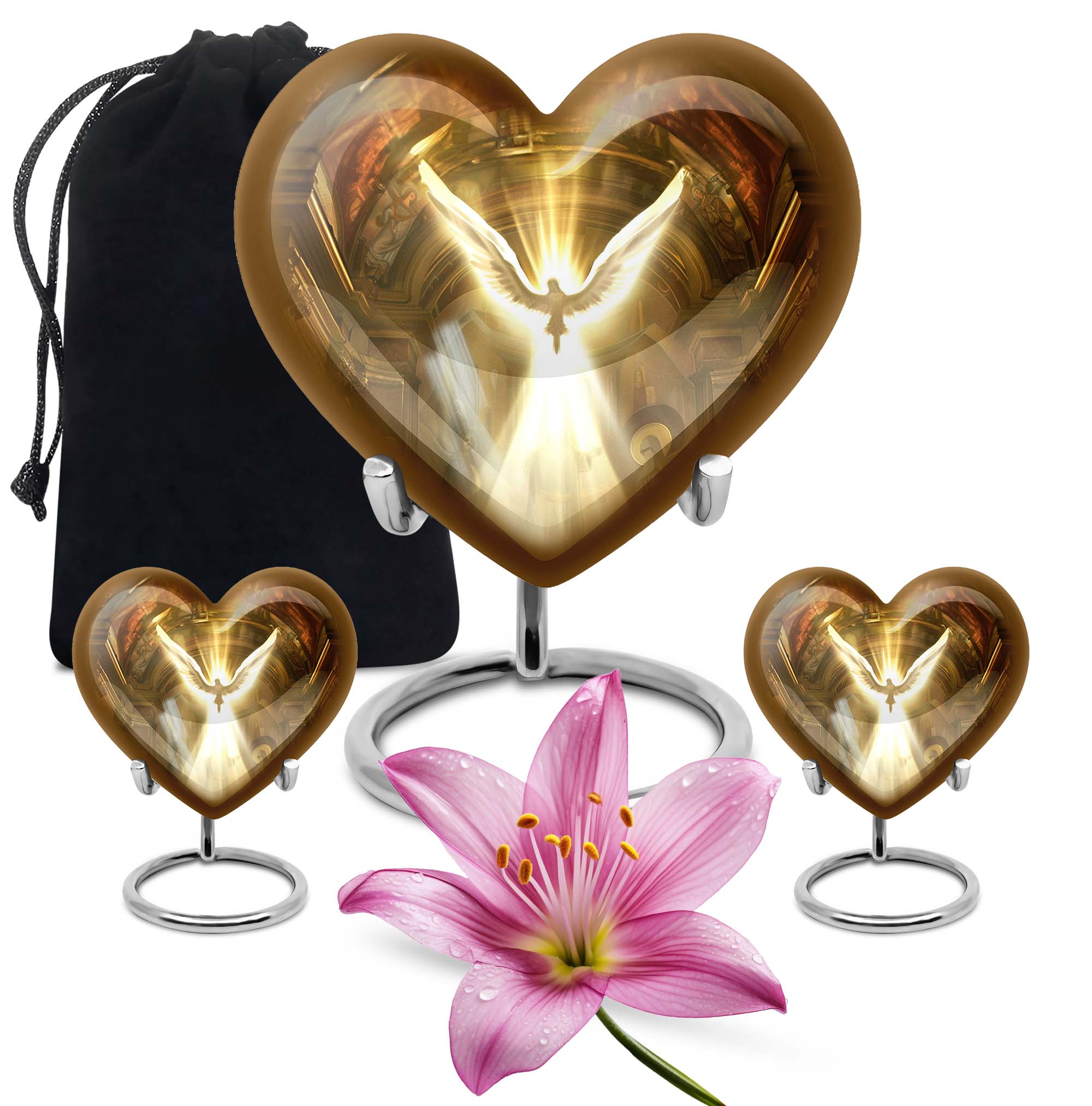 Honor your loved ones with this exquisite 10 Inch Heart Urn, a symbol of love and dedication. Crafted from durable Aluminium and weighing 3.3 pounds, this large urn is perfectly suited for holding up to 200 cubic inches of ashes. Each cremation medium urn is finely detailed with an abstract theme, expressing profound respect and dignity. It takes a unique place in the category of catholic urns, representing a blend of spiritual faith and appreciation for the departed. The urn is accompanied by a velvet pouch, adding a touch of elegance to the containment of ashes. Personally, engrave names on it, creating a heartfelt keepsake. With emphasis on funeral urns for human ashes adult, this product adheres to the solemnity of the moment, serving as a distinctive alternative to traditional burial cremation urns or human cremation shaped to go containers. An exceptional choice for those wanting to preserve the memory of the deceased with dignity and grace.