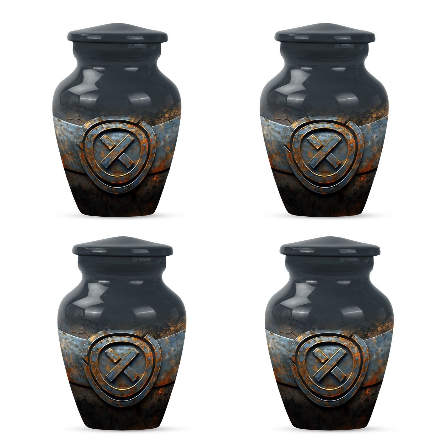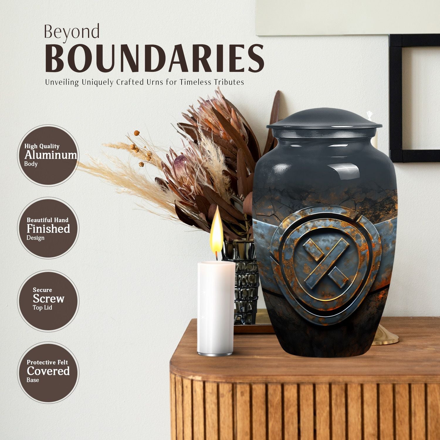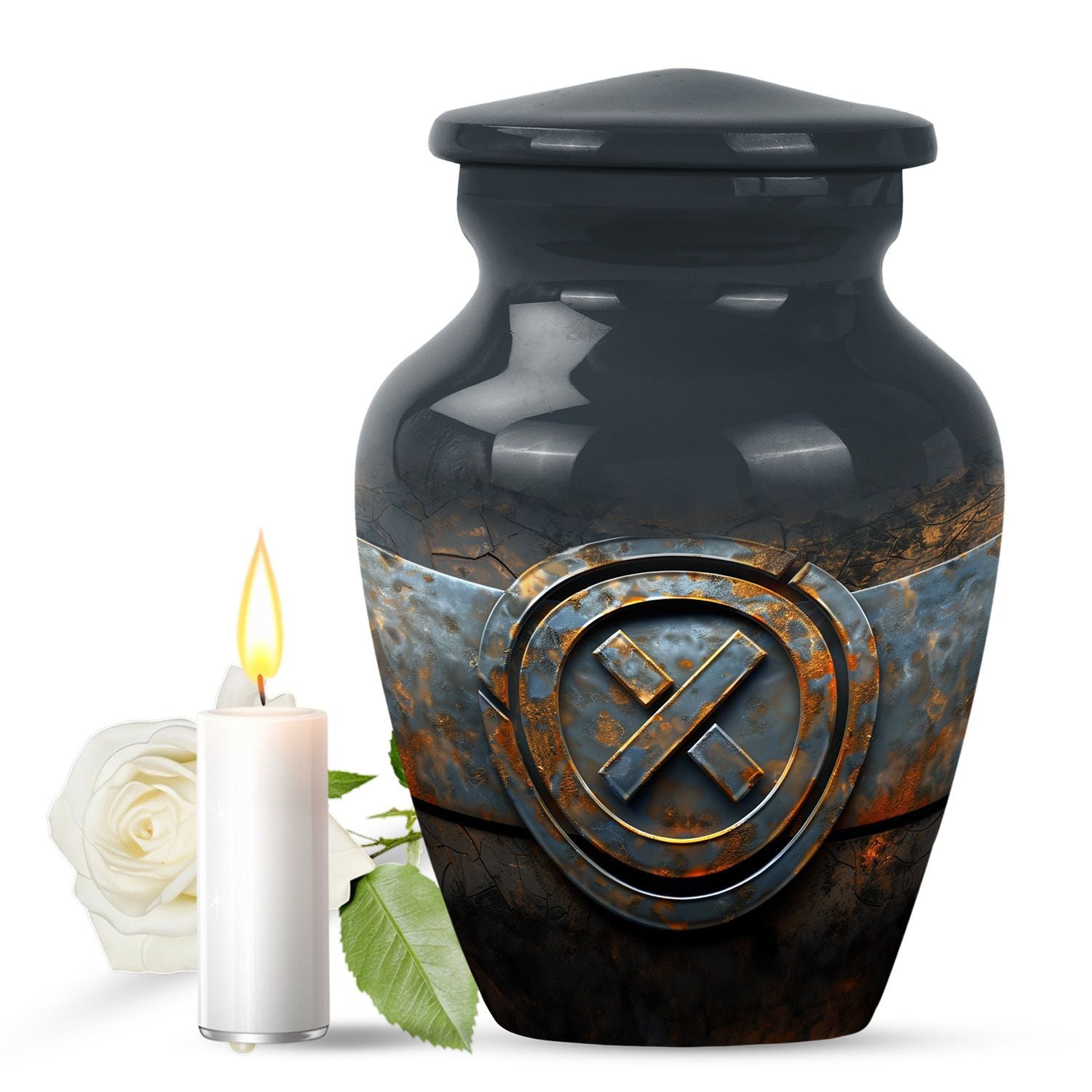 Put your trust in our timeless Classic Catholic Urn, a respectful and solemn choice for a beloved male or female adult. Crafted from durable aluminum, this sturdy, large-sized urn boasts a capacity of 200 cubic inches and a reassuring weight of 3.3 pounds. Measuring an ecclesiastical height of 10 inches, our memorial urns are not only objects of ceremonial significance, but also beautiful pieces of decor that impeccably honor the memory of a loved one. Each urn also offers personalization options such as engraved names, making it even more special. The package includes a velvet pouch, designed for thoughtful and respectful containment of ashes. Our carefully curated abstract theme infuses sobriety and reverence into the urn, rendering it a fitting tribute to the departed. Browse through our collection to find this and many other funeral urns for human ashes. Note: the urn's design does not include specific religious symbols, making it a universal choice for different faiths.