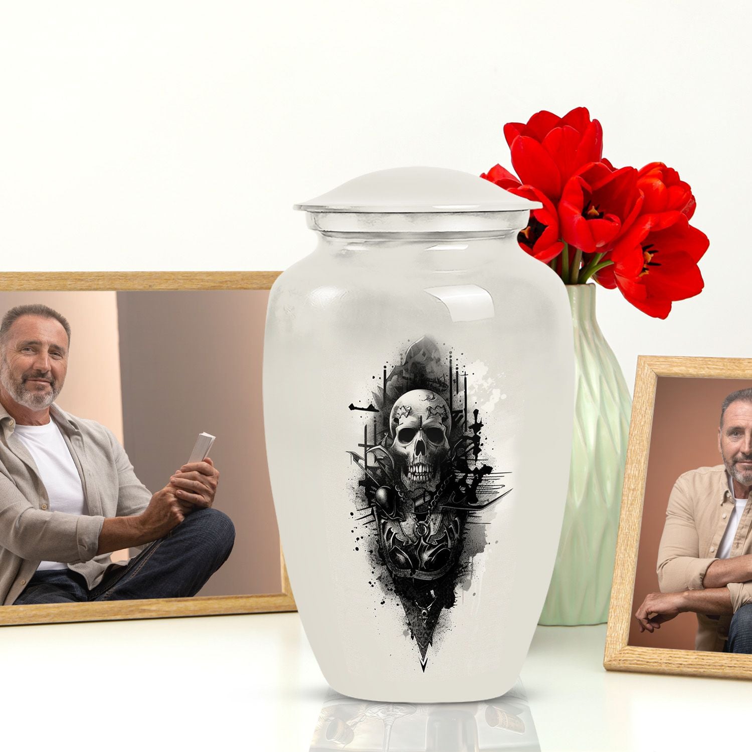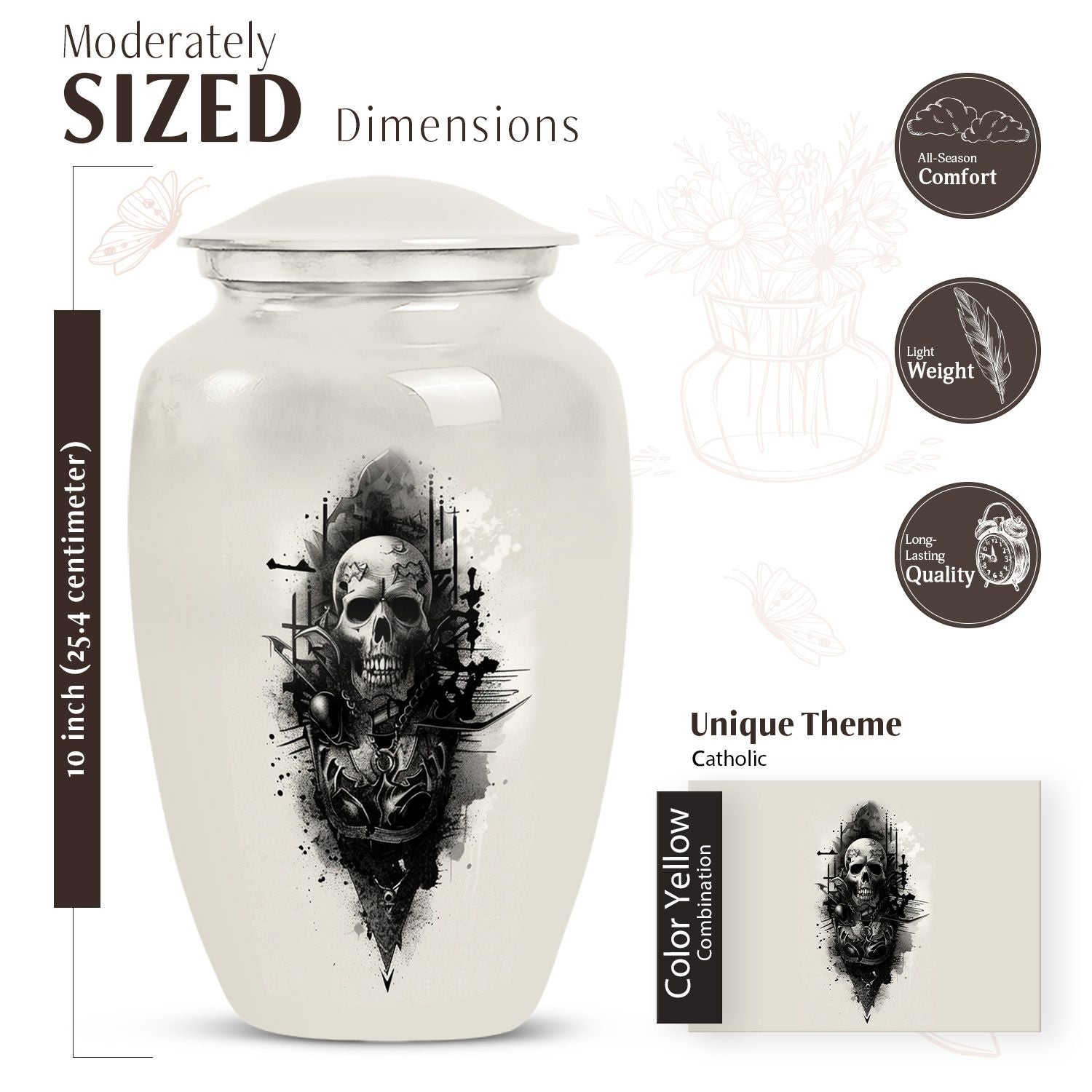 Offering a solemn blend of beauty and supreme craftsmanship, this Large-sized Catholic Urn is a meaningful tribute to your departed loved one. Boasting a refined Abstract theme, the urn is meticulously crafted from high quality Aluminium, ensuring a lasting tribute for years to come. Its monumental size, standing 10 inches in height and weighing 3.3 pounds, offers a generous capacity of 200 cubic inches - ample space for the ashes of an adult male or female. The funeral urn comes complete with a velvet pouch, providing respectful containment of ashes. For a truly personal touch, the urn can be customized with engraved names, providing a lasting testament to your loved one's legacy. This cremation urn is more than just a resting place for ashes, it's a stylish centerpiece perfect for display. As a search-friendly note, customers often find this product while looking for 'cremation urns for mom', 'cremation urn for dad', 'funeral urns', and similar phrases. Every detail of this urn embodies legacy and remembrance, making it a fitting testament to a life well-lived.