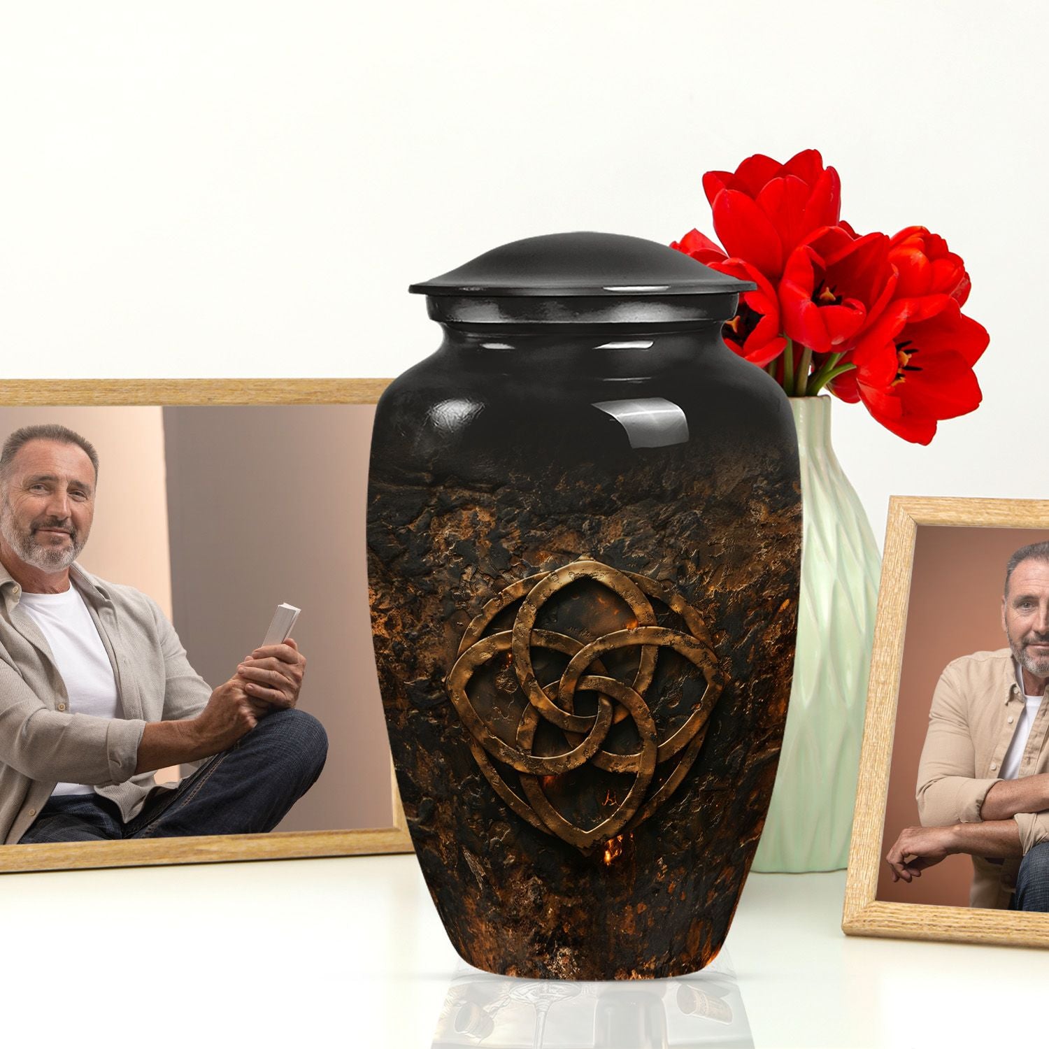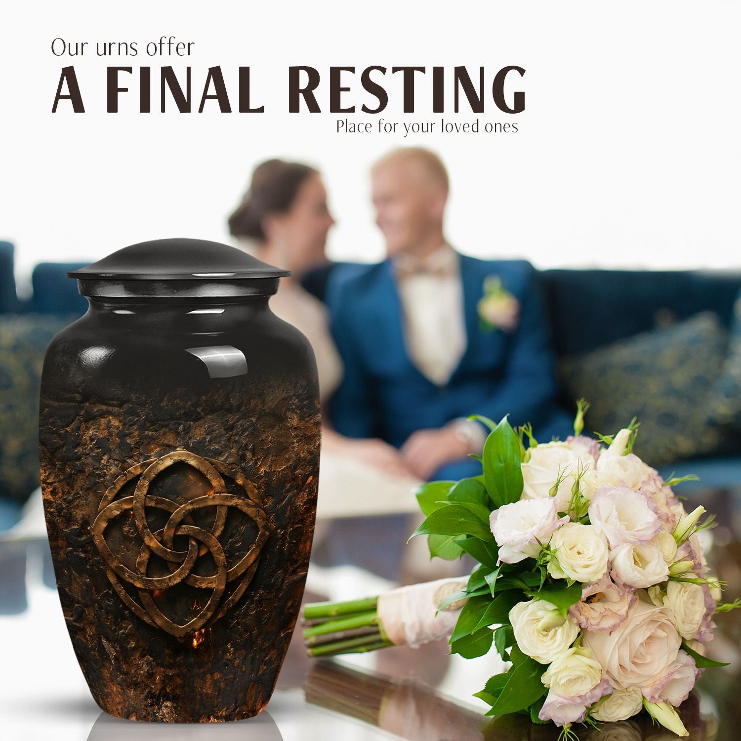 Celebrate the heavenly journey of your loved ones with this exquisite Catholic Urn. Designed for those in search of funeral cremation urns for women, this 10-inch, elegant memorial urn defines dignity at its best in the poignant occasion. Weighing a sturdy 3.3 pounds, the capacity of this abstract-themed urn is 200 cubic inches, adept for retaining the cherished remains of your dear. Crafted from resilient aluminium, this urn displays an abstract theme that resonates the sublime journey of life and beyond. Personalize this large urn with engraved names, adding a heartfelt tribute to your loved ones. Its dimensions are 10 inches in height, with a structurally stable urn-shape, making it a lasting keepsake. Included is a soft velvet pouch, upholding the ashes safely, further underlining the memorial's sanctity. For those seeking distinctly unique funeral urns for adult ashes, look no further than this dignified, endearing tribute option.