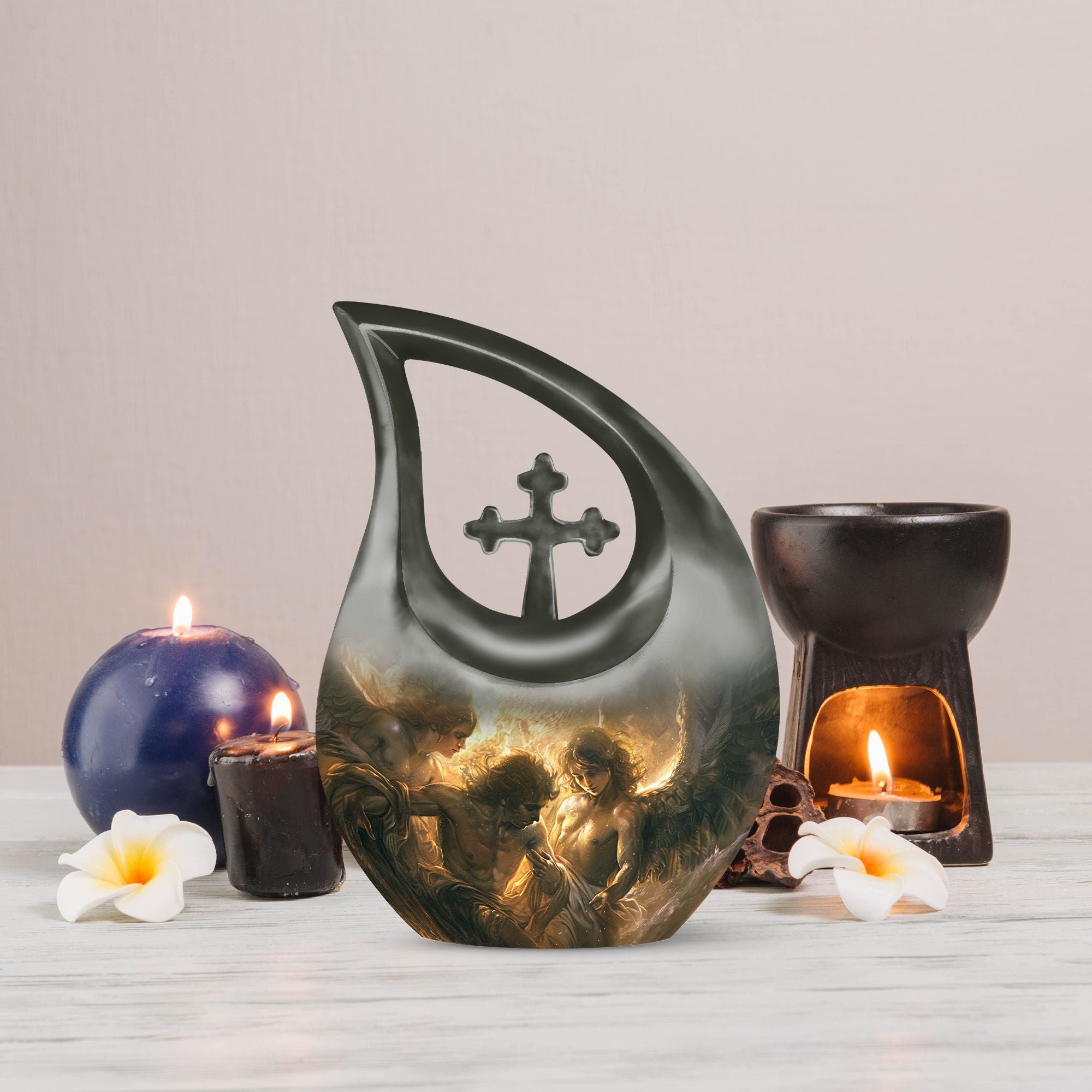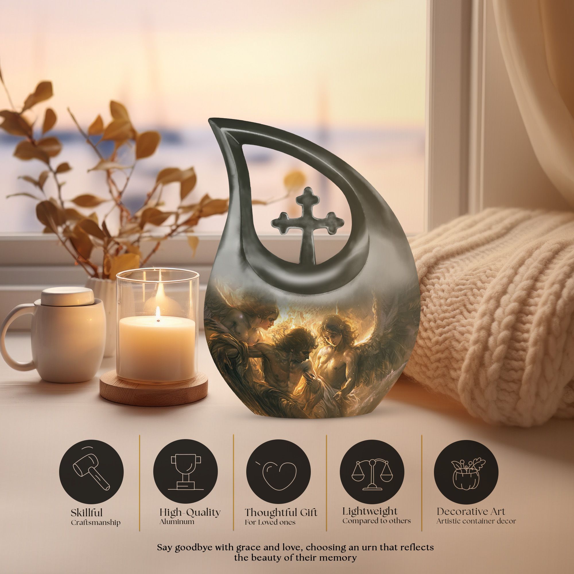 This urn offers comfort and reverence for families seeking spiritual remembrance. Its symbolic design brings peace to any memorial service, home display, or burial ceremony, helping preserve the legacy of a deeply cherished life.