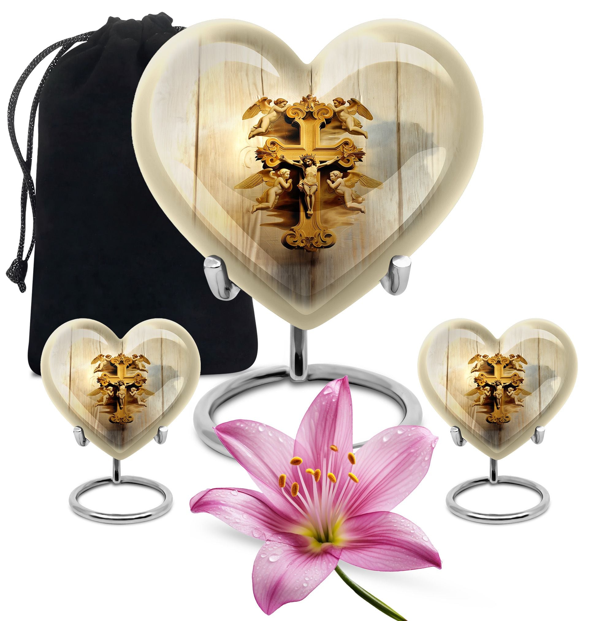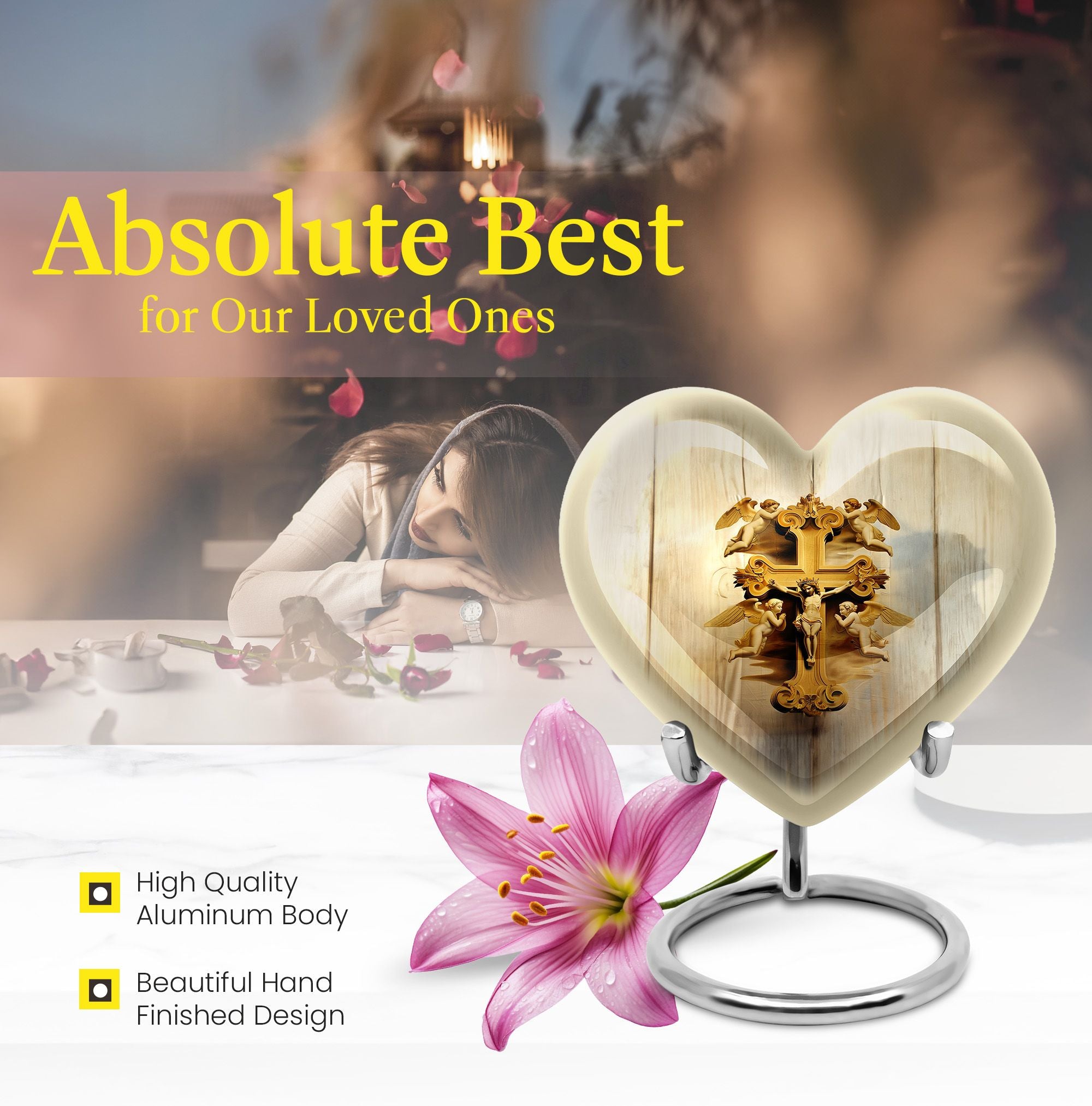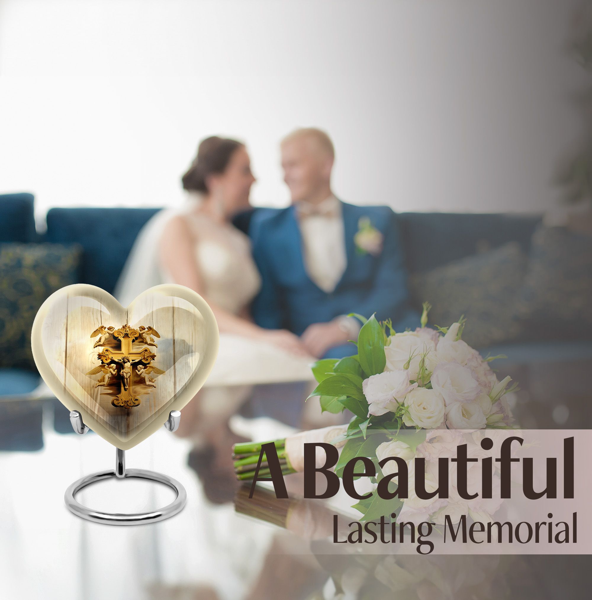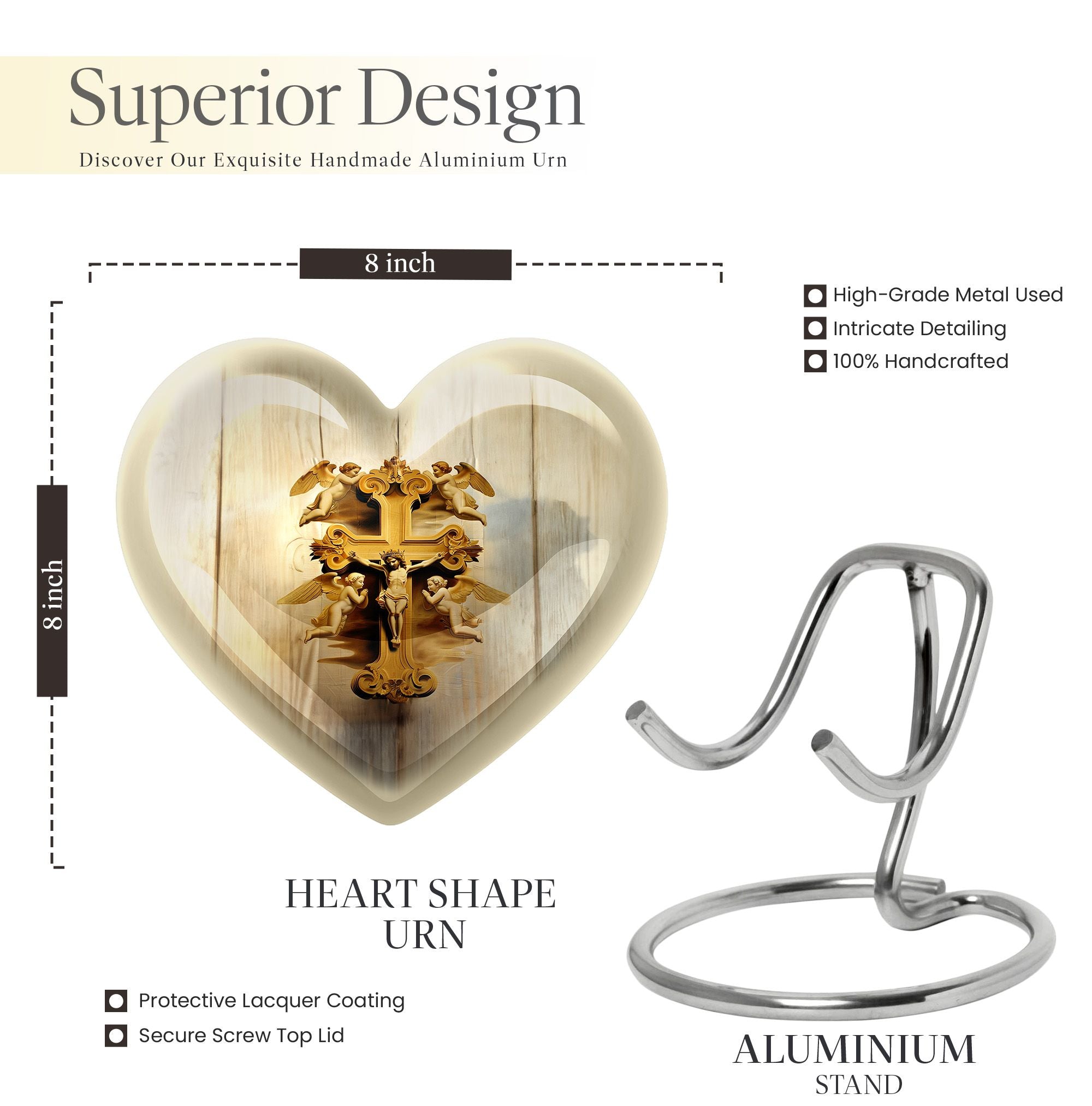 Express your continuing love and respect with this heartwarming, Catholic urn, a tender way of conveying your deep-rooted affection forever. Meticulously crafted from solid aluminium, it weighs a sturdy 3.3 pounds and stands proud at 10 inches, reflecting durability that harmonizes with style. Sized at 10 inches, this cremation urn for human ashes offers enough space to house 200 cubic inches – an ideal provision for adult male ashes that helps you keep cherished memories close. The package includes a gentle velvet pouch, ensuring the safe containment and preservation of the precious remains. Designed to cater to varied preferences, this Abstract-themed, Large urn allows personalization with engraved names – a special touch to truly make it your own. Notably, its appeal transcends towards burial medium size urns, urn human ash cremation urn, adult size urns, and funeral urns for adult ashes women. Sealing in the essence of love, this urn does not just store ashes; it encapsulates a constellation of beautiful memories attached with the departed soul.