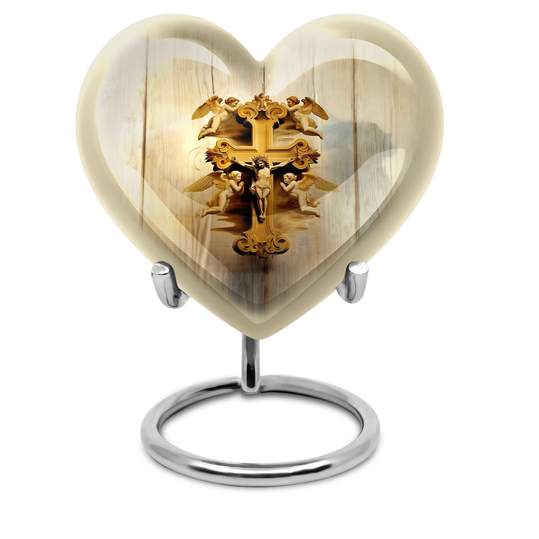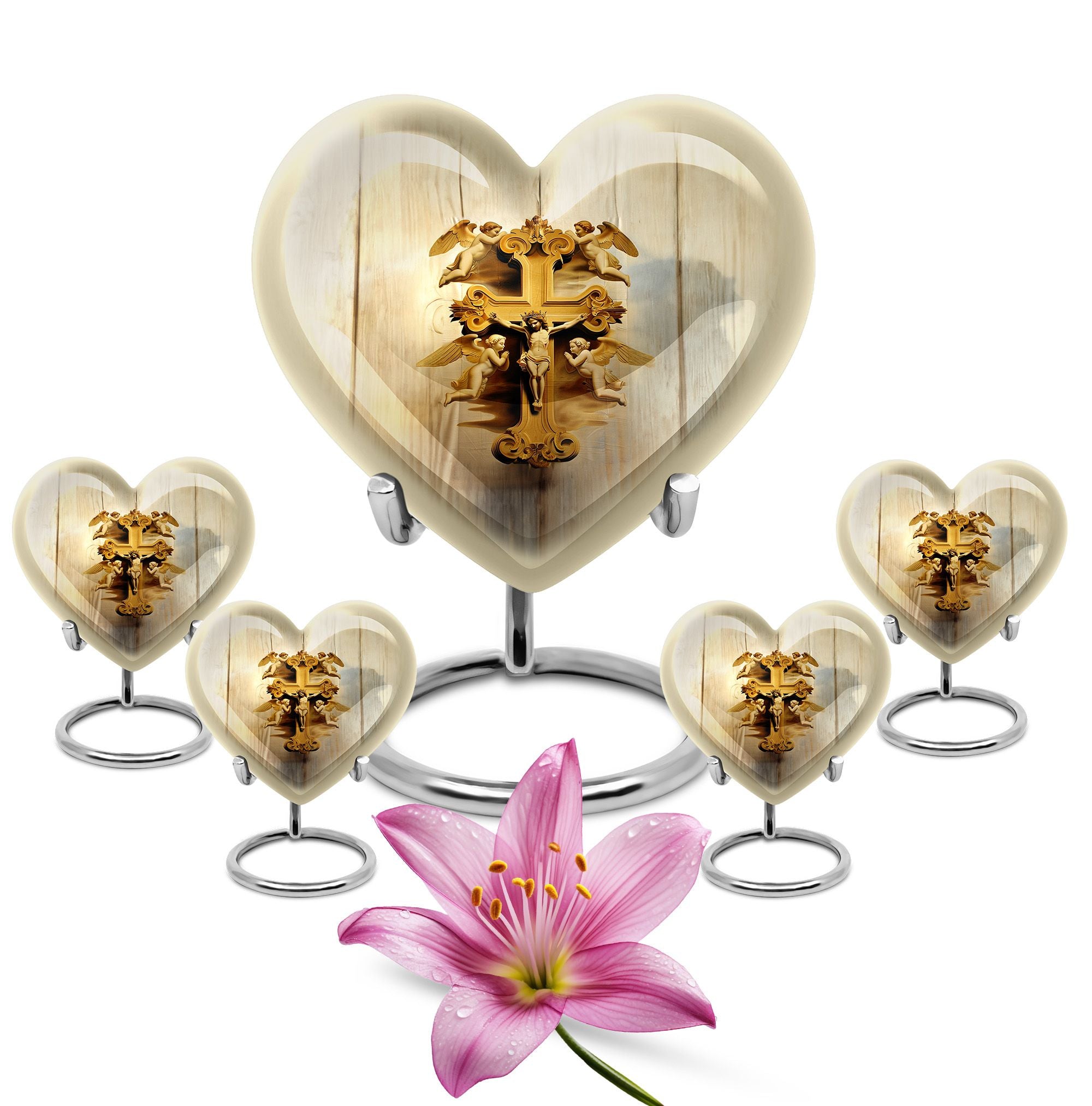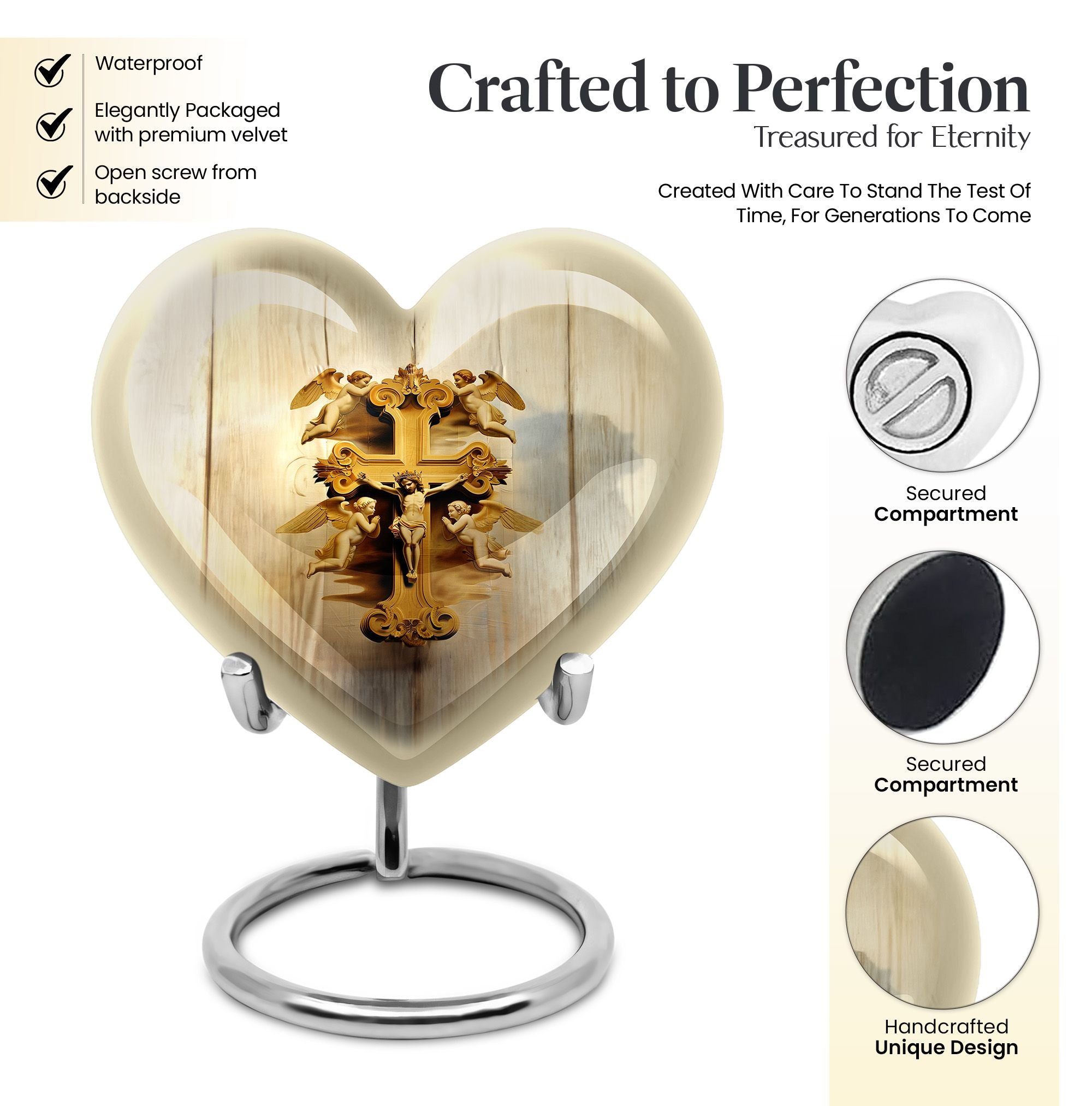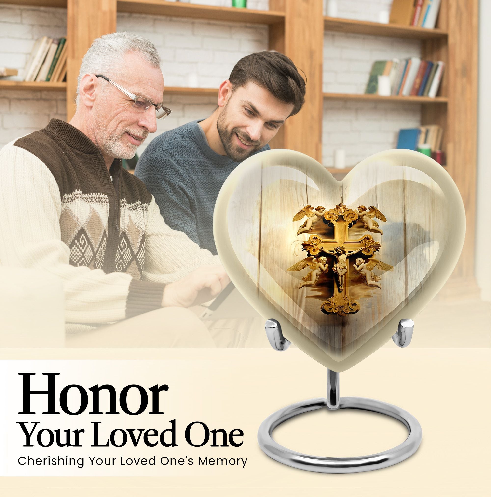 Express your continuing love and respect with this heartwarming, Catholic urn, a tender way of conveying your deep-rooted affection forever. Meticulously crafted from solid aluminium, it weighs a sturdy 3.3 pounds and stands proud at 10 inches, reflecting durability that harmonizes with style. Sized at 10 inches, this cremation urn for human ashes offers enough space to house 200 cubic inches – an ideal provision for adult male ashes that helps you keep cherished memories close. The package includes a gentle velvet pouch, ensuring the safe containment and preservation of the precious remains. Designed to cater to varied preferences, this Abstract-themed, Large urn allows personalization with engraved names – a special touch to truly make it your own. Notably, its appeal transcends towards burial medium size urns, urn human ash cremation urn, adult size urns, and funeral urns for adult ashes women. Sealing in the essence of love, this urn does not just store ashes; it encapsulates a constellation of beautiful memories attached with the departed soul.
