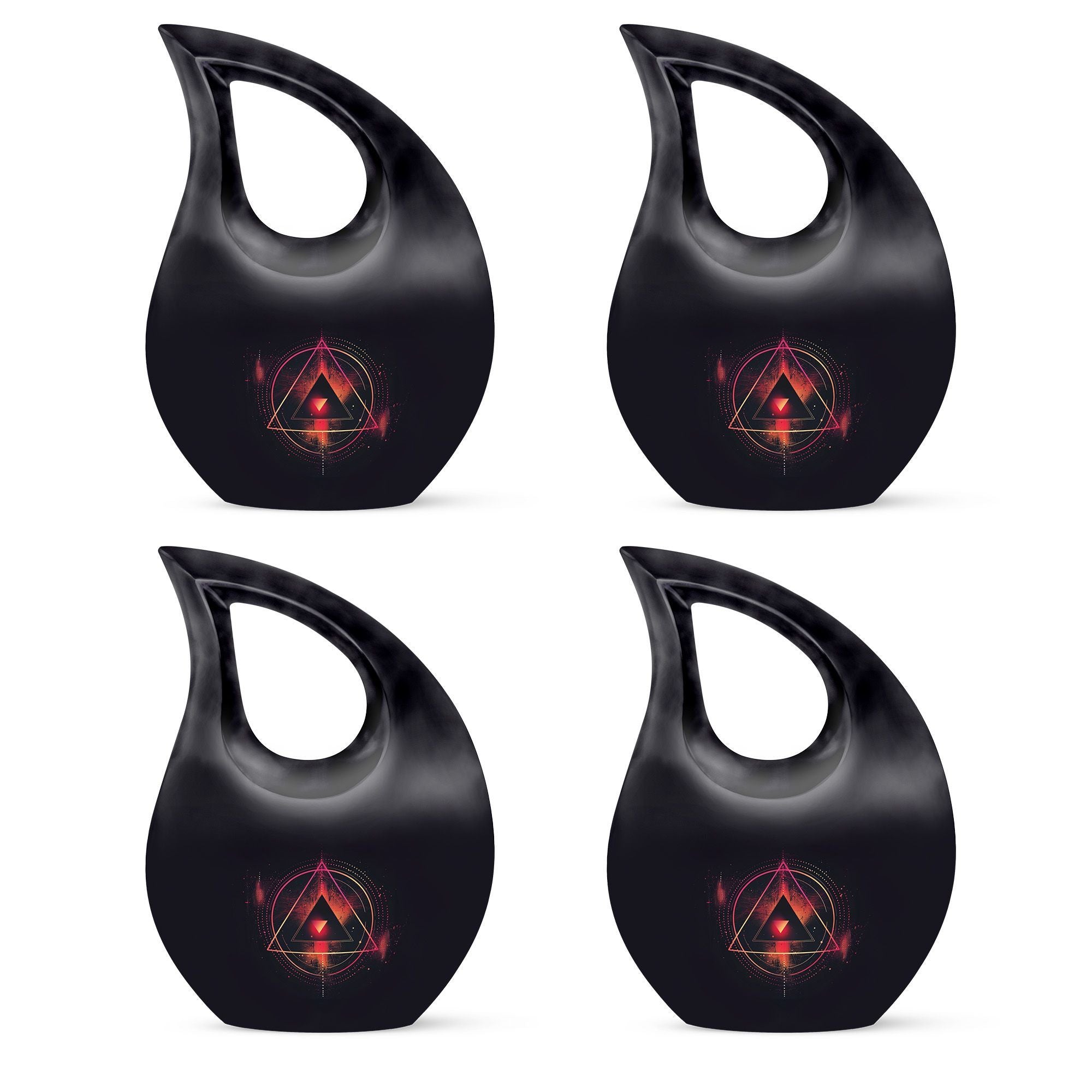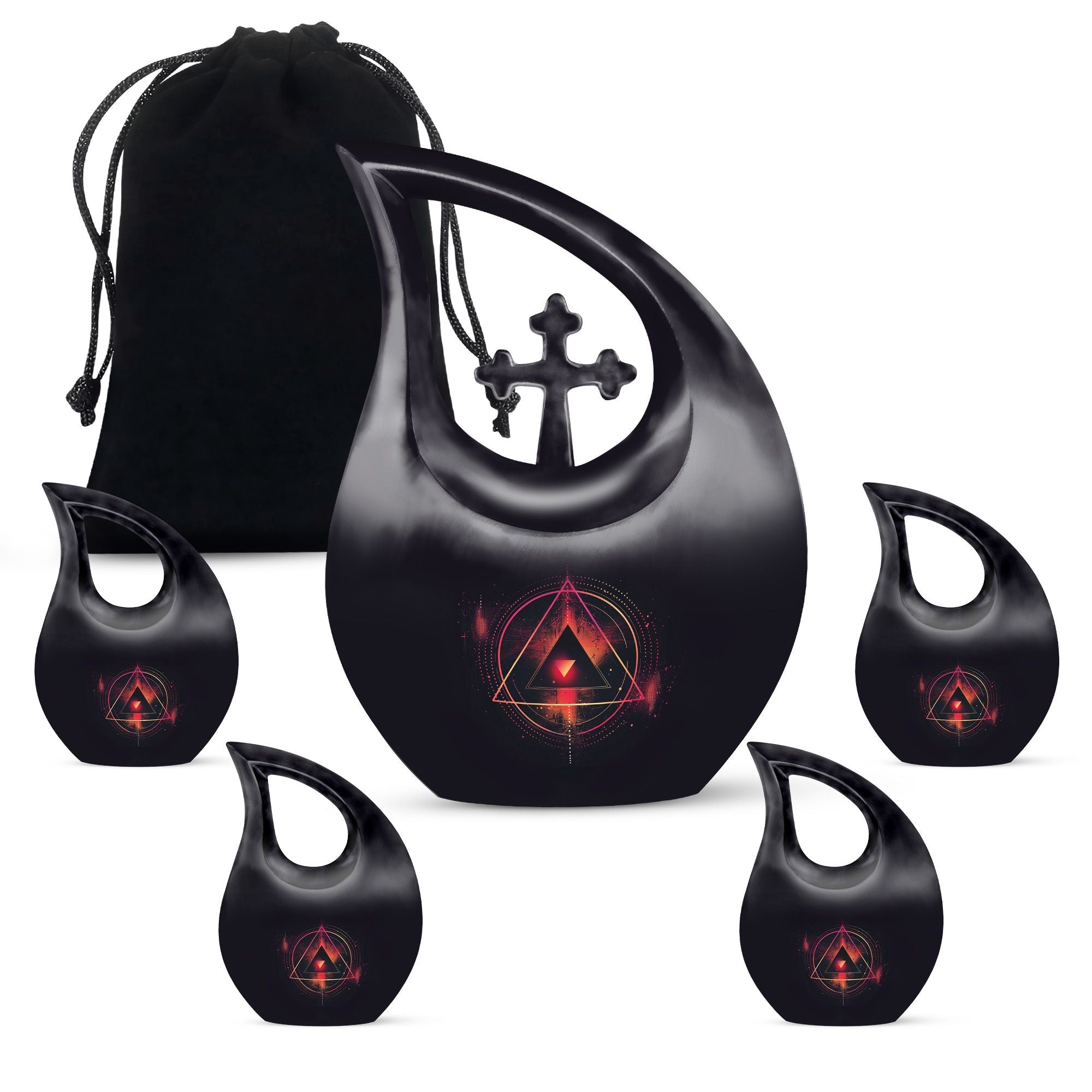 Experience a fitting tribute and a refined celebration of your faith with our Cross Drop Catholic Urn. Sized at a dignified 10 inches in height, these funeral urns enhance the remembrance rituals with their unique design. Each urn, weighing 3.3 pounds, is shaped from durable Aluminium, representing an enduring tribute. Its capacity of 200 cubic inches ensures ample space for the containment of ashes. Further enhancing its value is the inclusion of a velvet pouch for safe and dignified storage. With the option to personalize these memorial urns with engraved names, you are ensured of a truly unique and personal commemorative object. Despite its premium qualities, this urn falls under the bracket of cheap cremation urns and cheap funeral urns, making it accessible to all those seeking a tasteful memento. Ideal as keepsake urns or as large urns, these custom urns hold a thematic resonance for those of the Catholic faith.