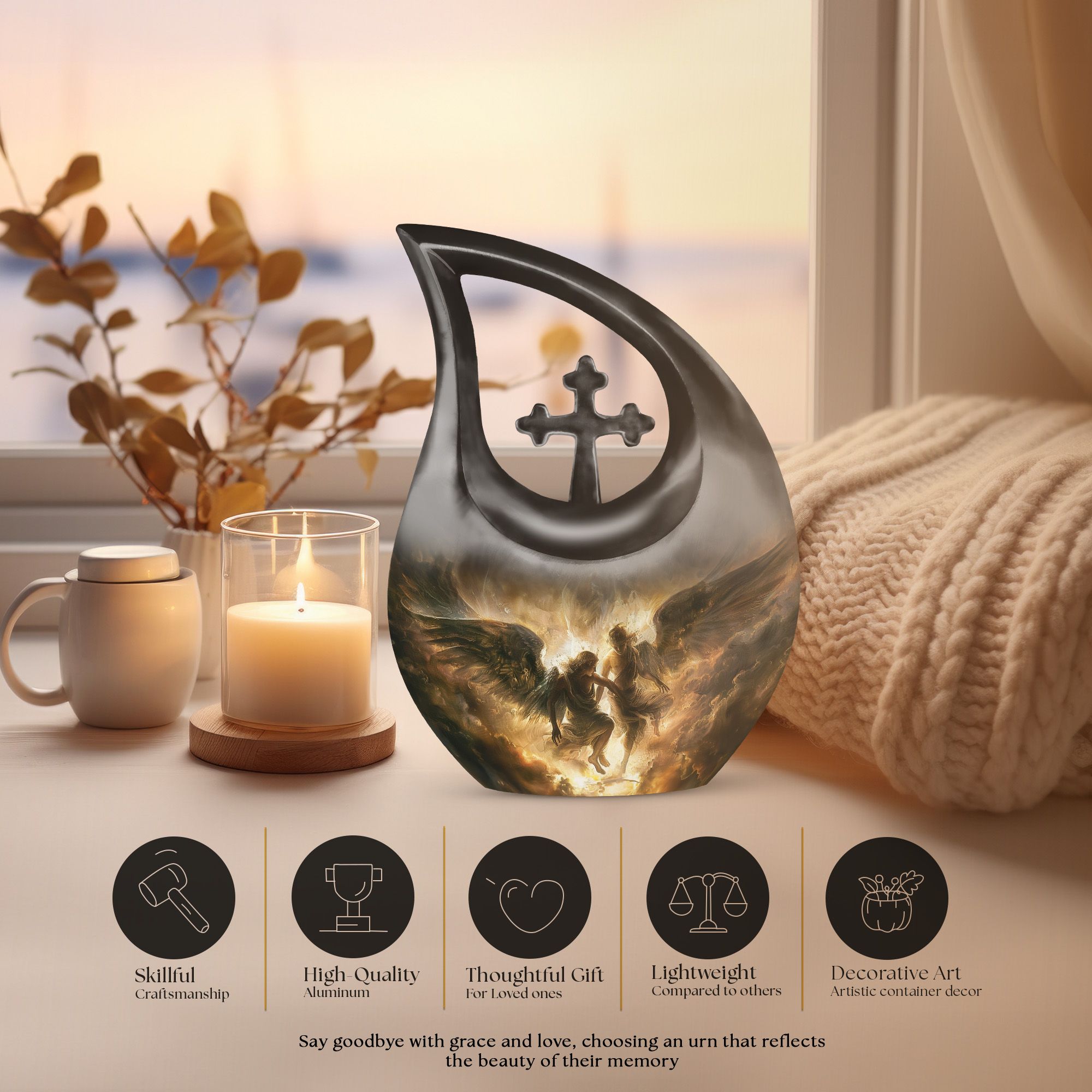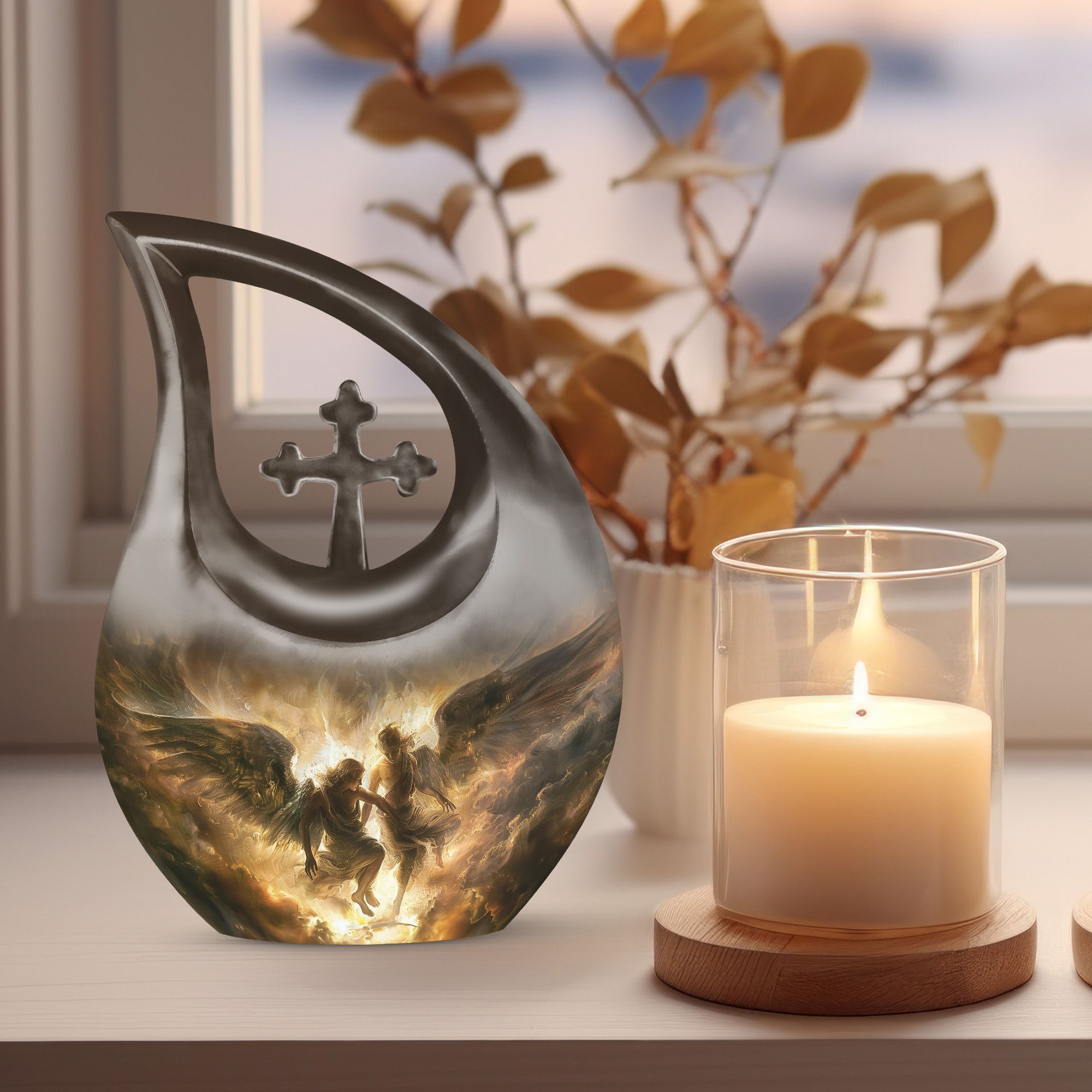 This design also supports families seeking burial urns for human ashes adult male or symbolic urn female ashes for meaningful placement. Whether used at home or laid to rest, it stands as a lasting tribute of faith, hope, and love.