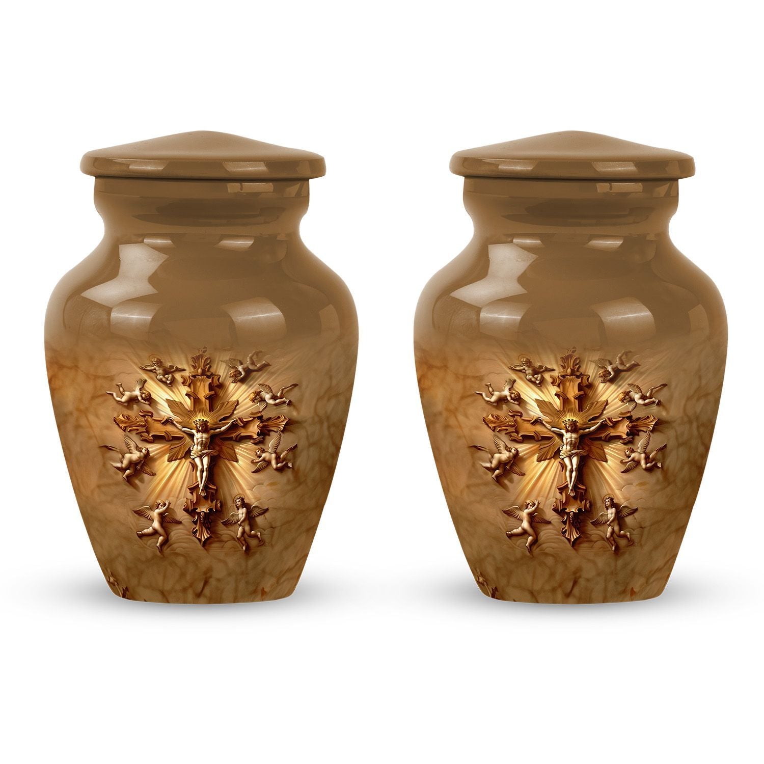 Experience the comfort and tranquility that comes with our meticulously crafted 10-inch Catholic Urn, a standout product in our range of funeral adult urns for human ashes. A timeless reflection of sophistication, this Classic Urn is made from high-quality aluminium. With a weight of just 3.3 pounds, and dimensions standing at a significant 10 inches in height, our urn ensures secure containment of up to 200 cubic inches volume of your loved one's remains. The urn arrives with a complimentary velvet pouch, perfect for keeping the ashes secure and well-preserved. To make your memorial tribute even more special, we offer the option to personalize your urn with engraved names. Exhibiting an abstract theme, this urn is designed particularly for those seeking large urns. Our product is an ideal choice for those searching for memorial forever urns, urn human women, urns for mom, or funeral urns for ashes. Please note, design attributes are not part of this description.