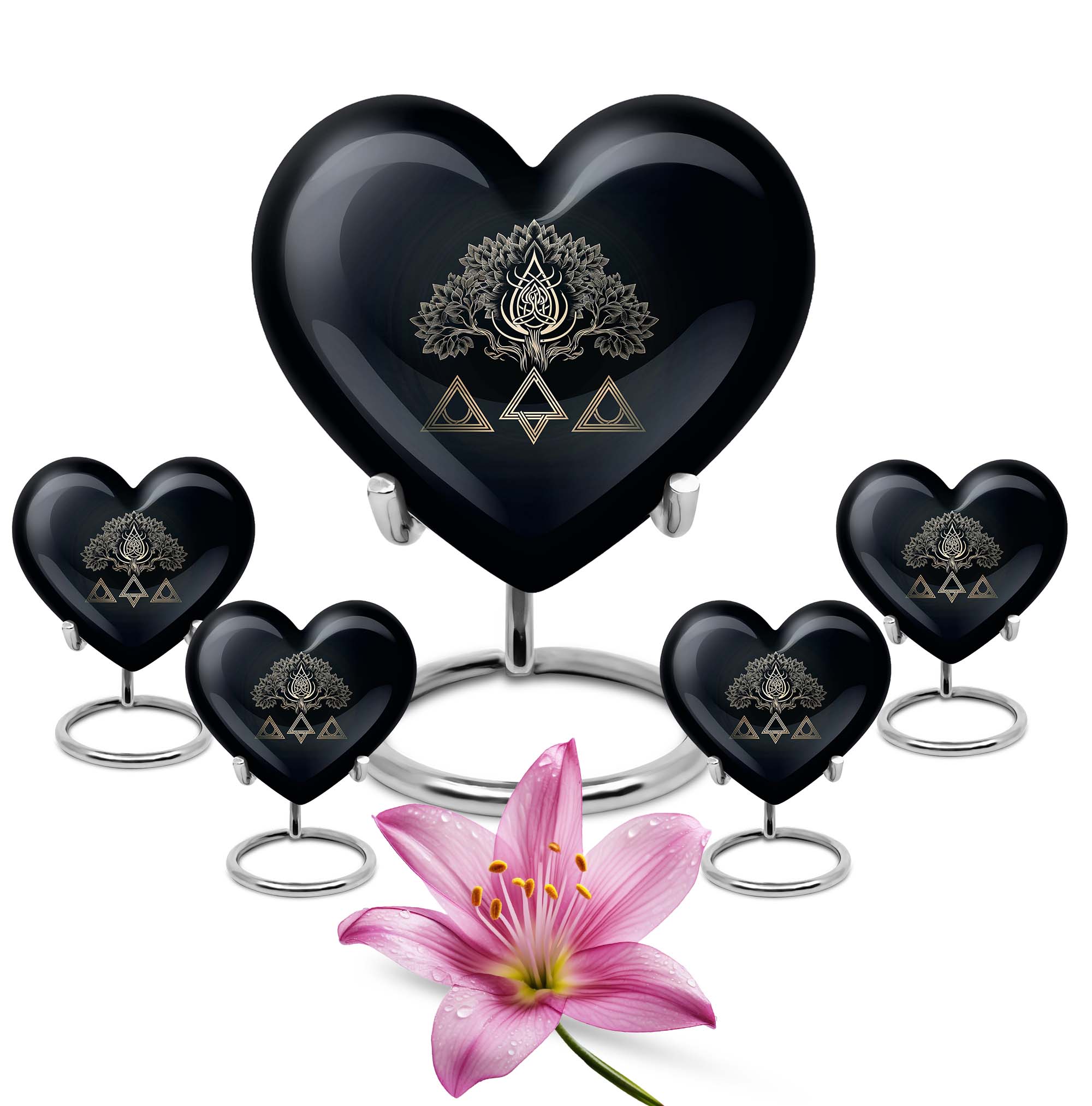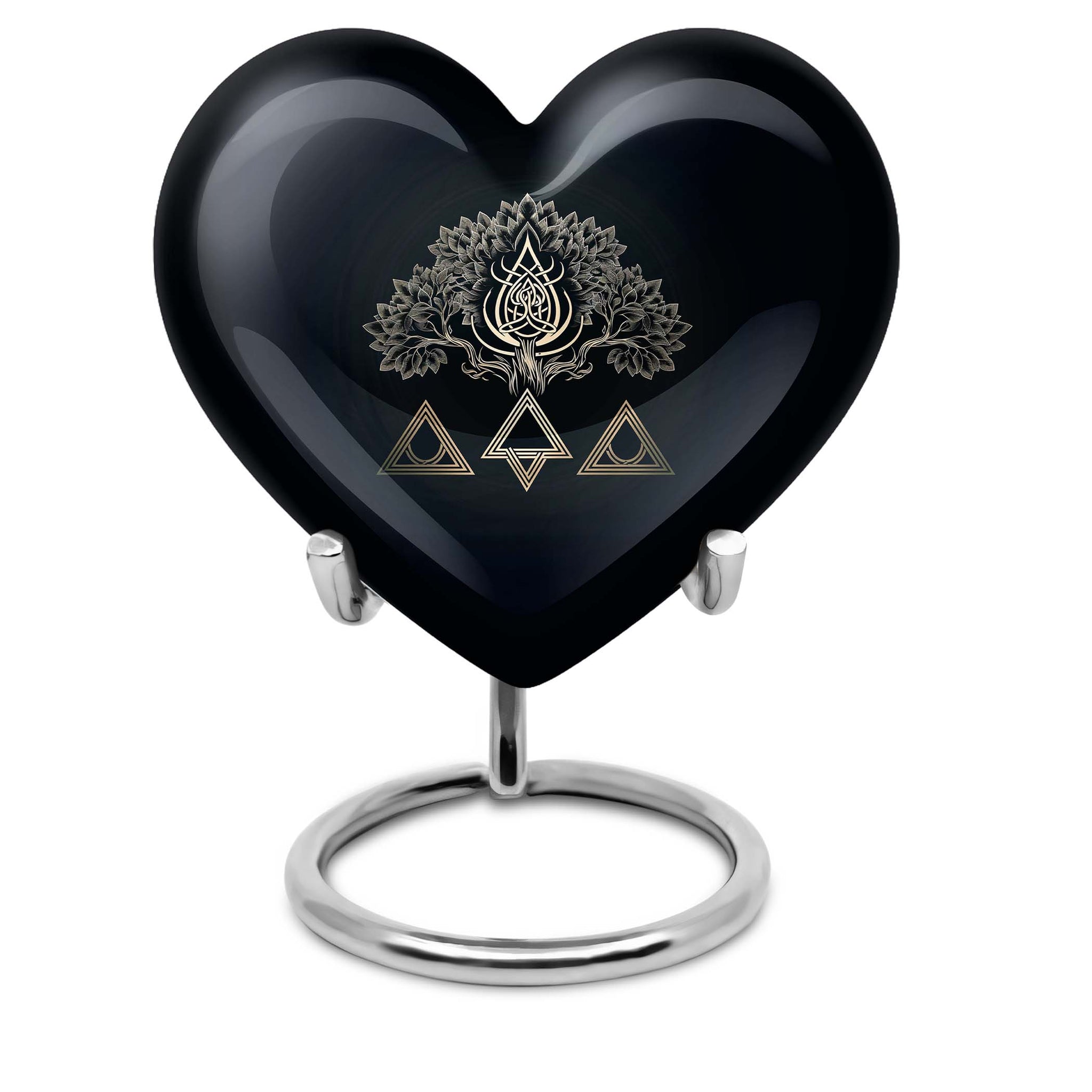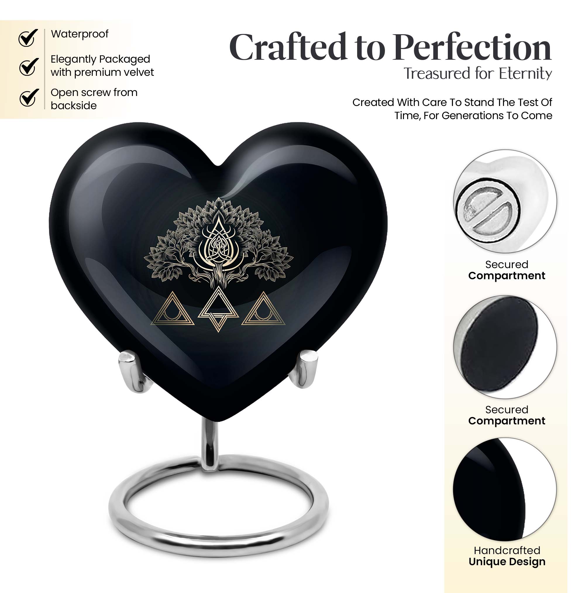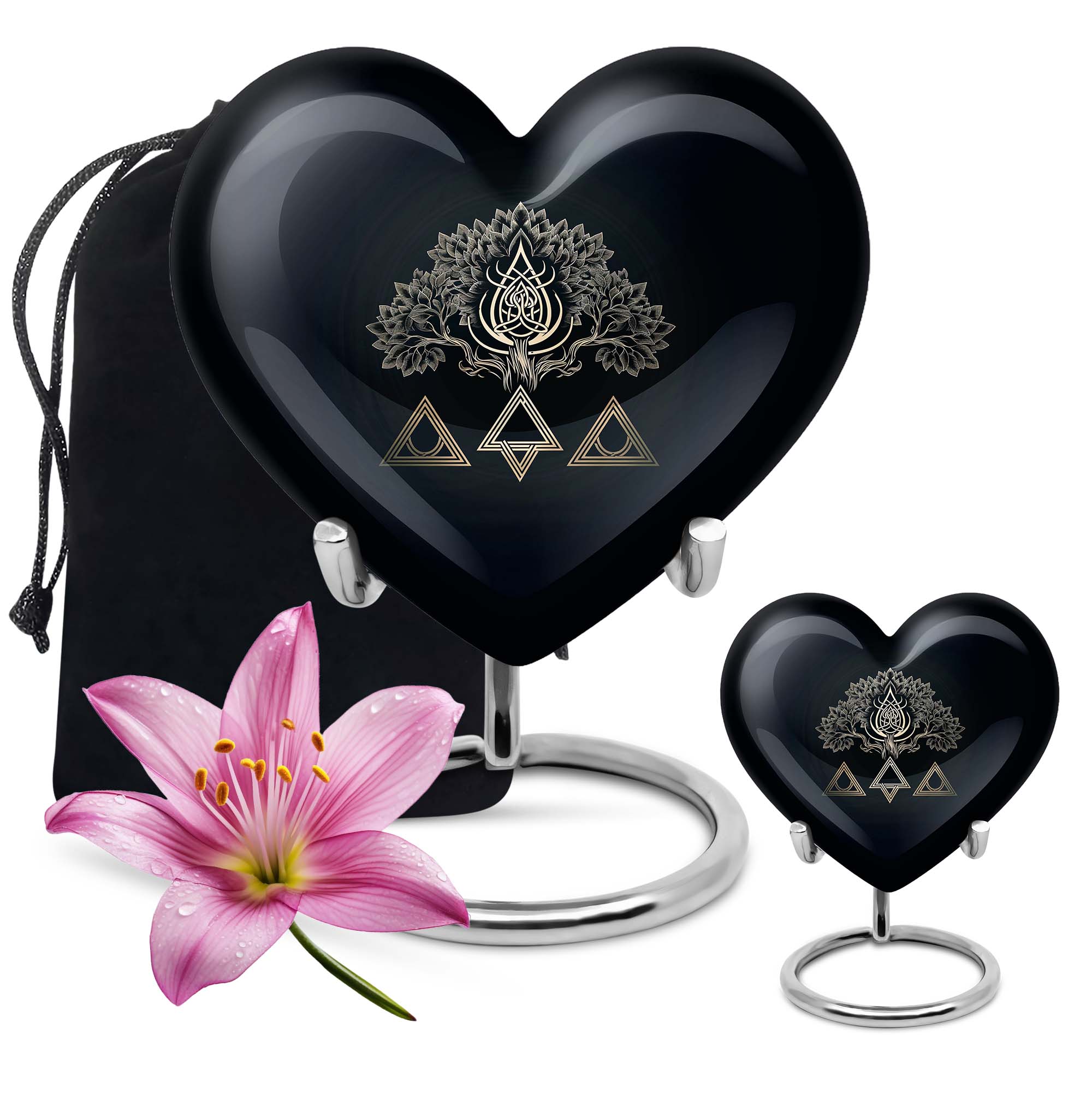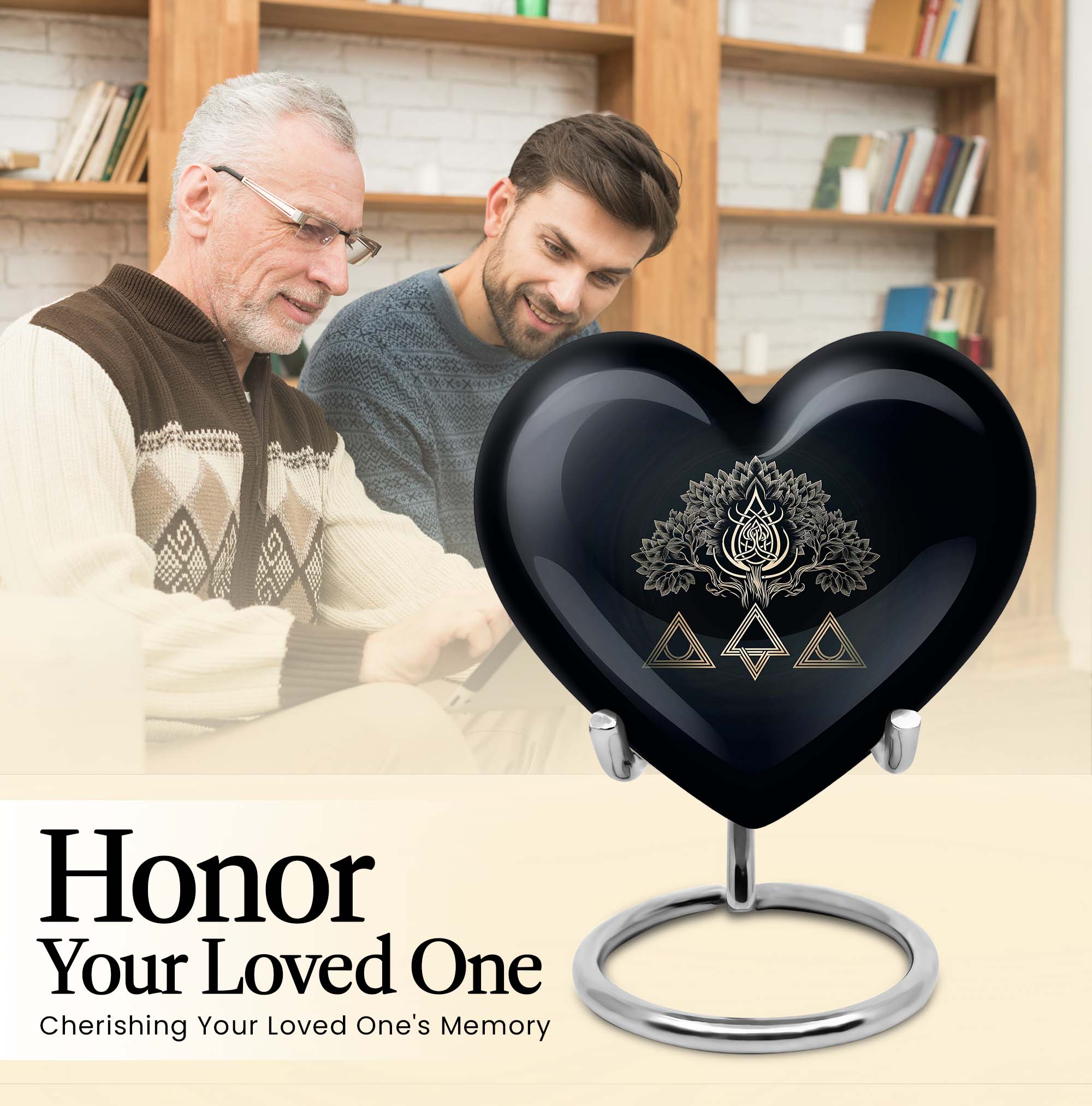 Bring a touch of devotion and respect with our Catholic Urn, thoughtfully designed for memorial ceremonies. Crafted with high-quality Aluminium, this urn stands 10 inches tall, weighing just 3.3 pounds. With a capacity of 200 cubic inches, this funeral decorative urn can accommodate the ashes of adults. This Large Urn features an abstract theme, encapsulating the potency of love and remembrance in its unique heart motif. The urn comes with a soft velvet pouch for safe and respectful containment of the ashes. Not just a container, it becomes a sentiment, a tribute to the departed soul. Further, the urn can be personalized with engraved names, lending a bespoke touch to your memorial tribute. This cremation urn merges significance and style to form an intimate keepsake. Searches such as 'memorial urns for human ashes adult female', or 'urns for cremation ashes mother', or 'urn human adult male' lead to this valuable urn—a touching symbol of the bond that will forever be cherished.