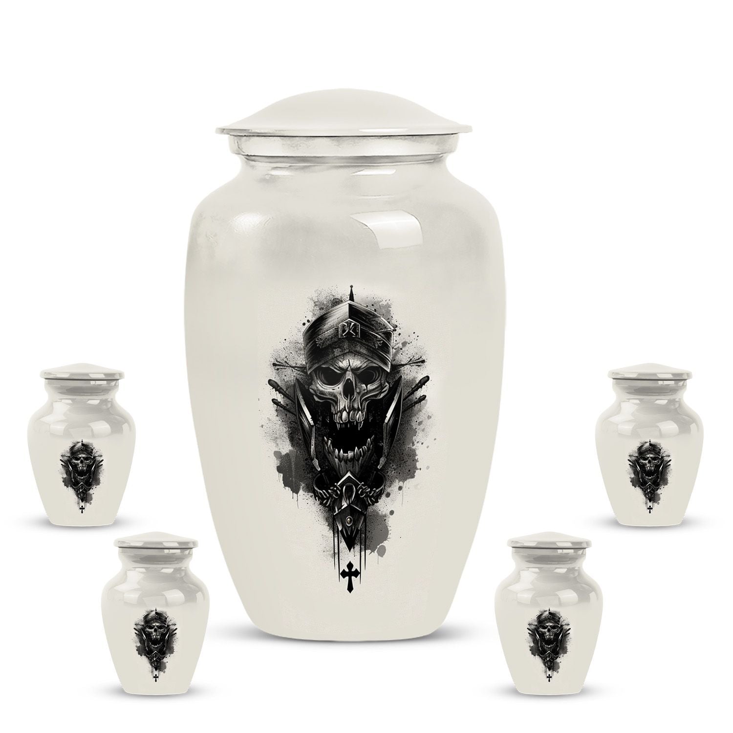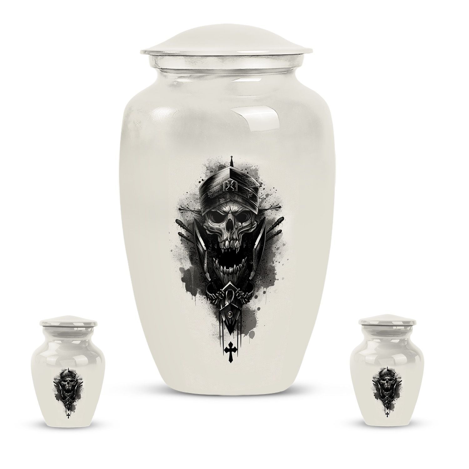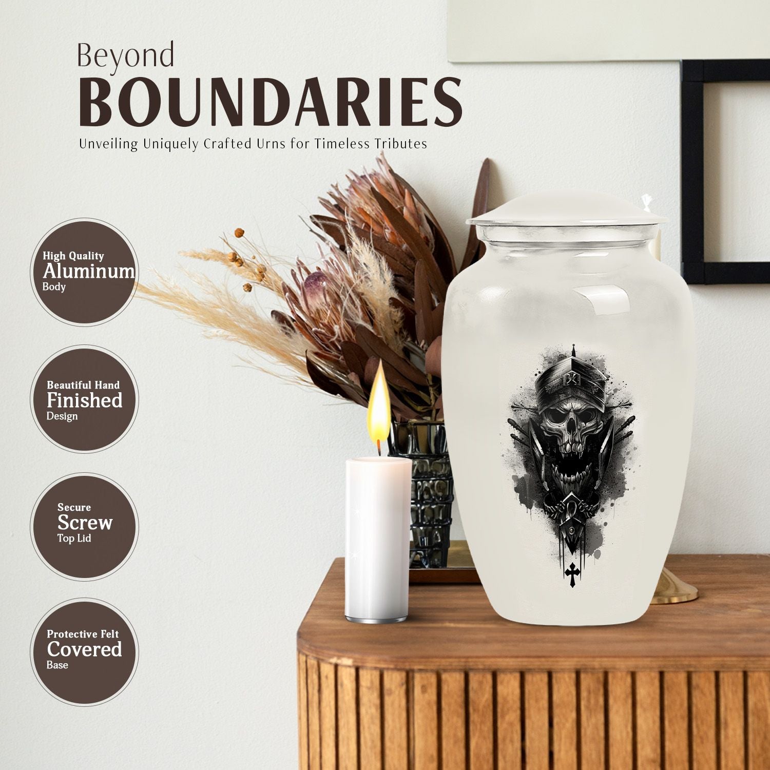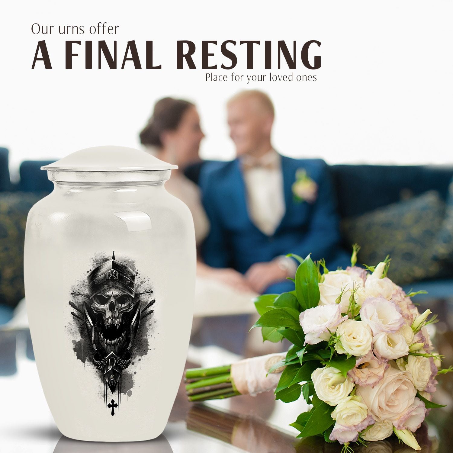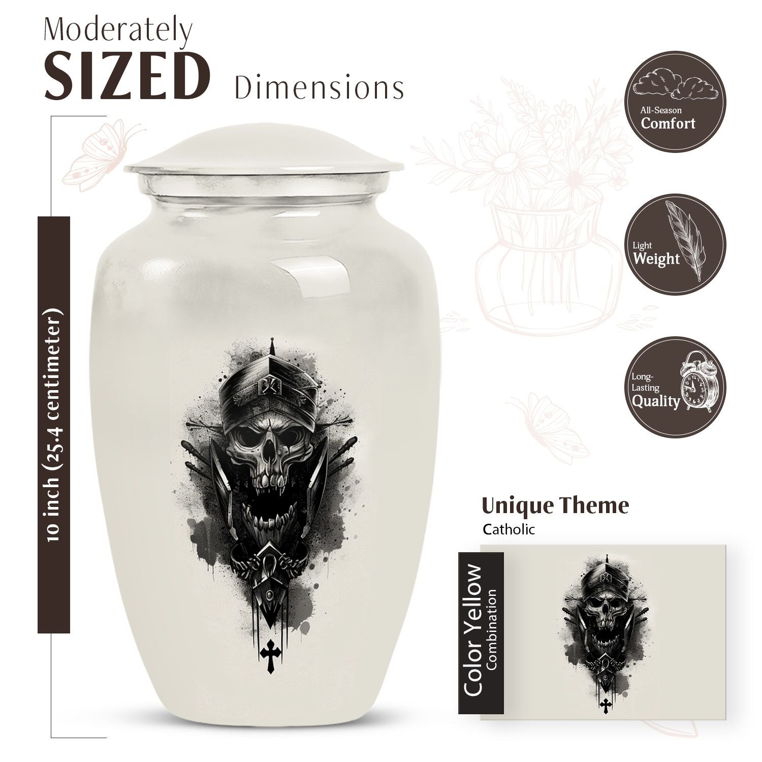 Discover an exceptional way to commemorate your loved ones with our 10-inch catholic urn for adult ashes. This substantial yet exquisite piece is not only a burial funeral urn, but also a respectful remembrance. Handcrafted from robust aluminum, it embodies an abstract theme that visually communicates your unparalleled affection and admiration. Weighing a substantial 3.3 pounds, this large urn can accommodate up to 200 cubic inches of ashes. Despite its classic urn design, it stands tall at 10 inches, reflecting the grandeur of the love preserved within. You are further bestowed the privilege to personalize this cremation urn with engraved names; a gesture that holds the potential to alleviate sorrow, and foster comfort. On acquiring this cremation box, to ensure your peace of mind, every purchase comes with a velvet pouch for containment of ashes. Transform the way you reminiscence about your adored with our catholic urn as the final rest for their ashes.