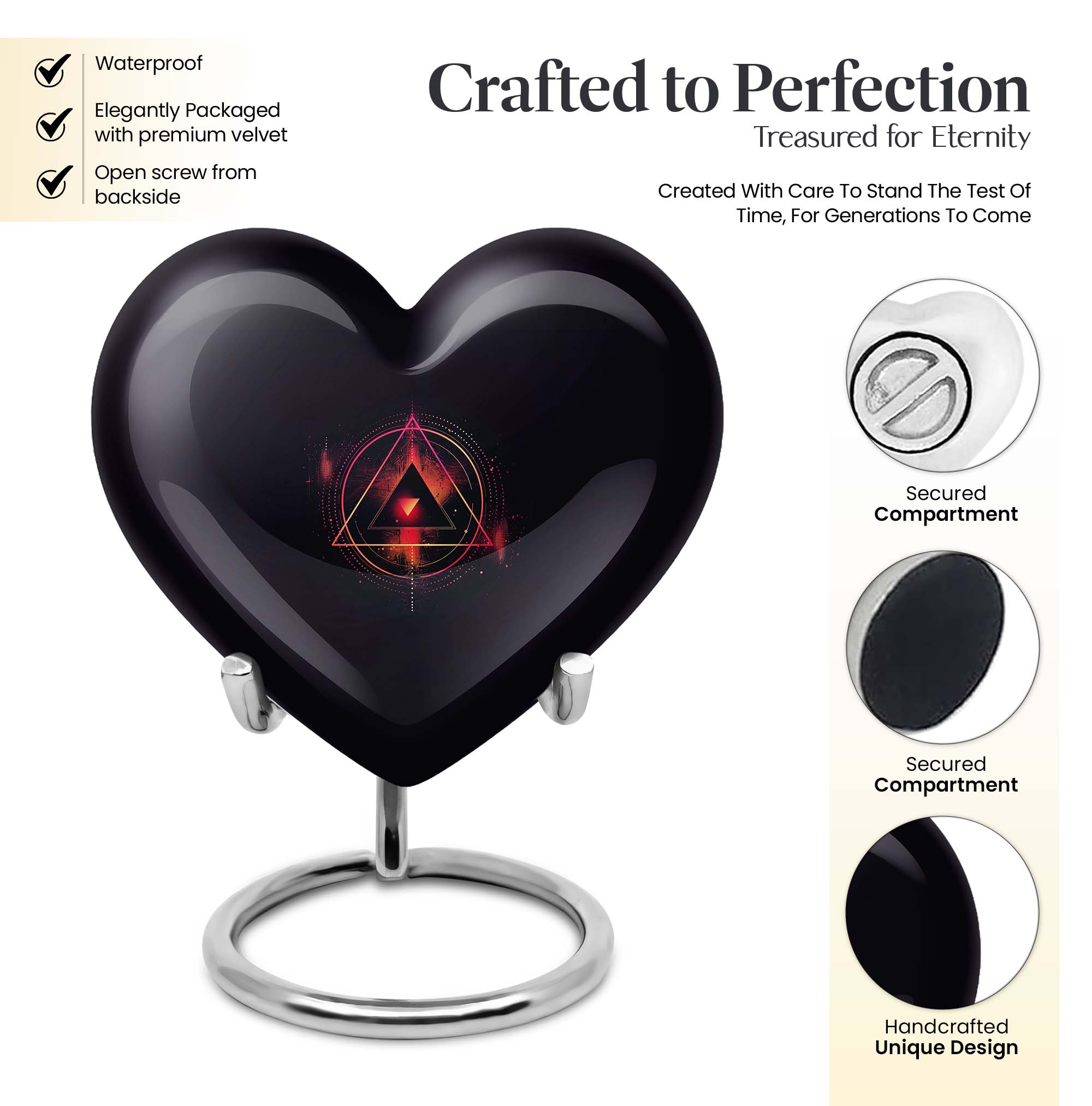 A symbol of eternal love, our beautifully crafted 10-inch Heart Urn is a meaningful reminder of the deep bond shared with your loved one. This large urn, heavy at 3.3 pounds, is meticulously fashioned from sturdy aluminium, ensuring durability. The type of urn is suited not only aesthetically, with its abstract theme, but also practically as it has a capacity of 200 cubic inches, adequate for adult men ashes. To add a personal touch, you have the option to personalize it with engraved names, allowing the memory of your loved one to live on. This catholic urn comes with a velvet pouch, providing you a dignified way to preserve the ashes post cremation. Striking a balance between high-quality and affordability, this cremation dad urn combines elegance with utility. This resplendent large urn with its iridescent metal captures the essence of a life well-lived, making it a meaningful piece within your memorial ceremony supplies.