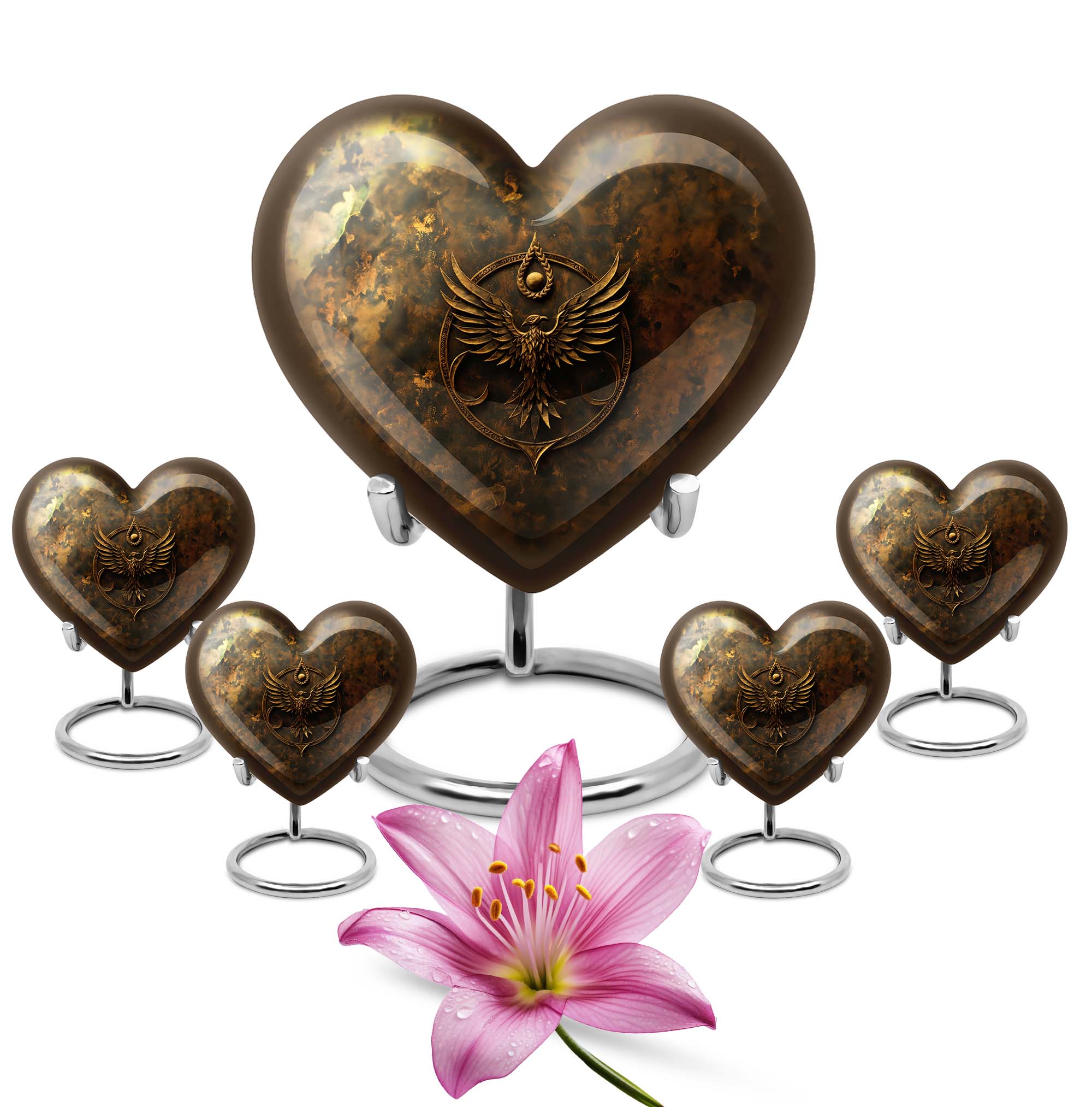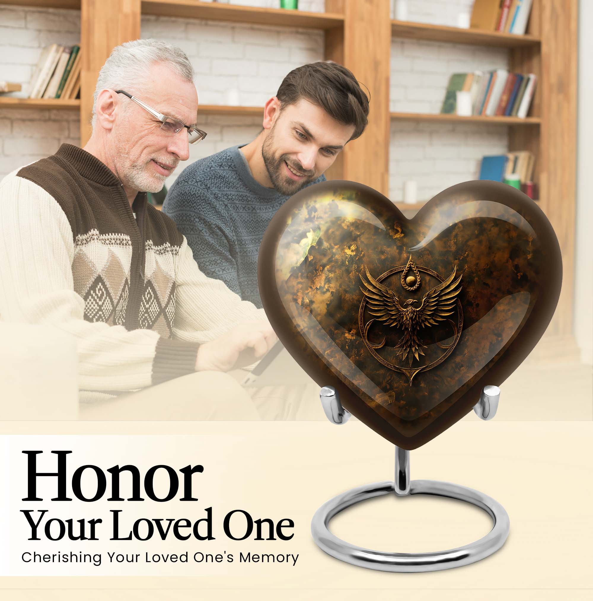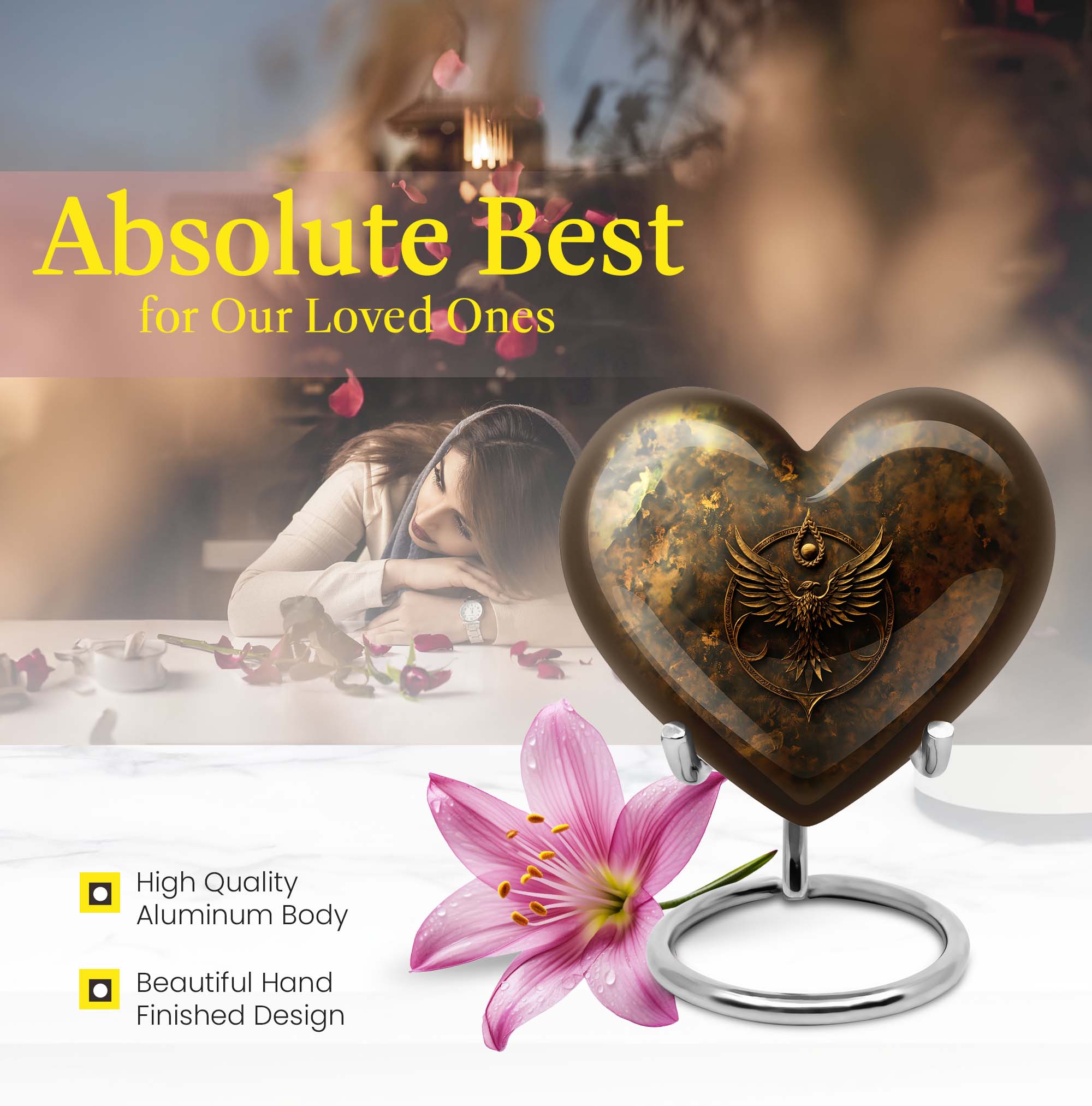 Honor your loved ones with this exquisite, uniquely-designed Catholic Urn. Crafted from high-quality, sturdy aluminium, this large, heart-shaped urn offers a capacity of 200 cubic inches, standing 10 inches in height and weighing around 3.3 pounds. This abstract-themed cremation urn allows you to cherish your memories in a profound and artistic manner. You can personalize this memorial urn with engraved names, offering an added layer of sentiment to the remembrance. Each urn comes with a velvet pouch for containment of ashes, maintaining the sanctity, dignity, and privacy of the cremation process. This versatile urn is not limited for men. It can also be used as a burial urn for cremation ashes of a mother, functioning as a tasteful urn ash funeral urn. This product promotes an aesthetic and meaningful celebration of life and memory. Please note size details - this item measures 10 inches.