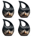 Expertly handcrafted from durable aluminum, this 10 inch urn features a deep black matte finish with a striking silver chess motif, symbolizing strength and intellect. Its sleek design and precise detailing make it one of the most elegant cremation urns for human ashes adult black available. The secure screw-top lid ensures ashes remain safely contained, while the solid craftsmanship provides long-lasting protection. Perfect for home display, burial, or memorial services, it embodies both grace and masculinity.