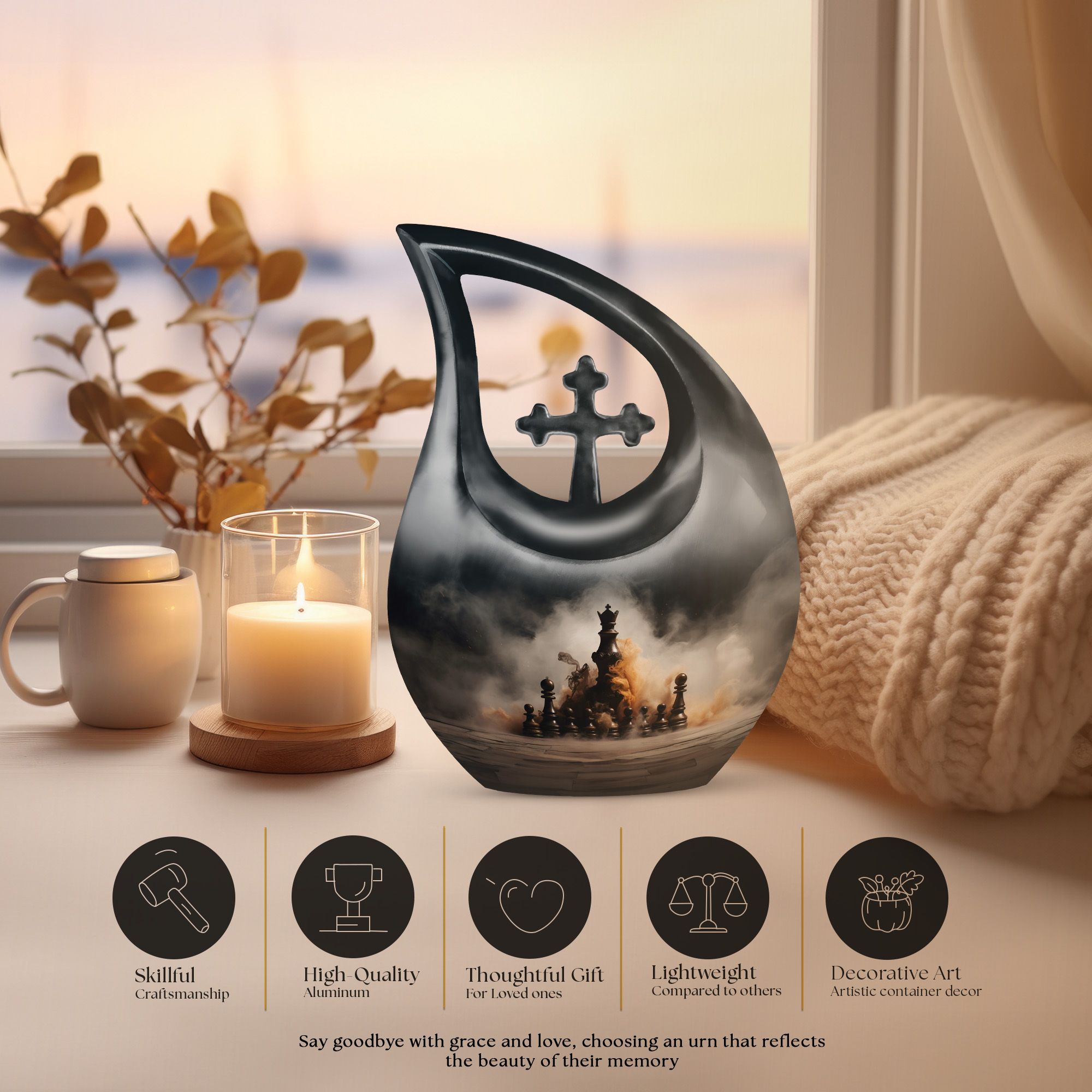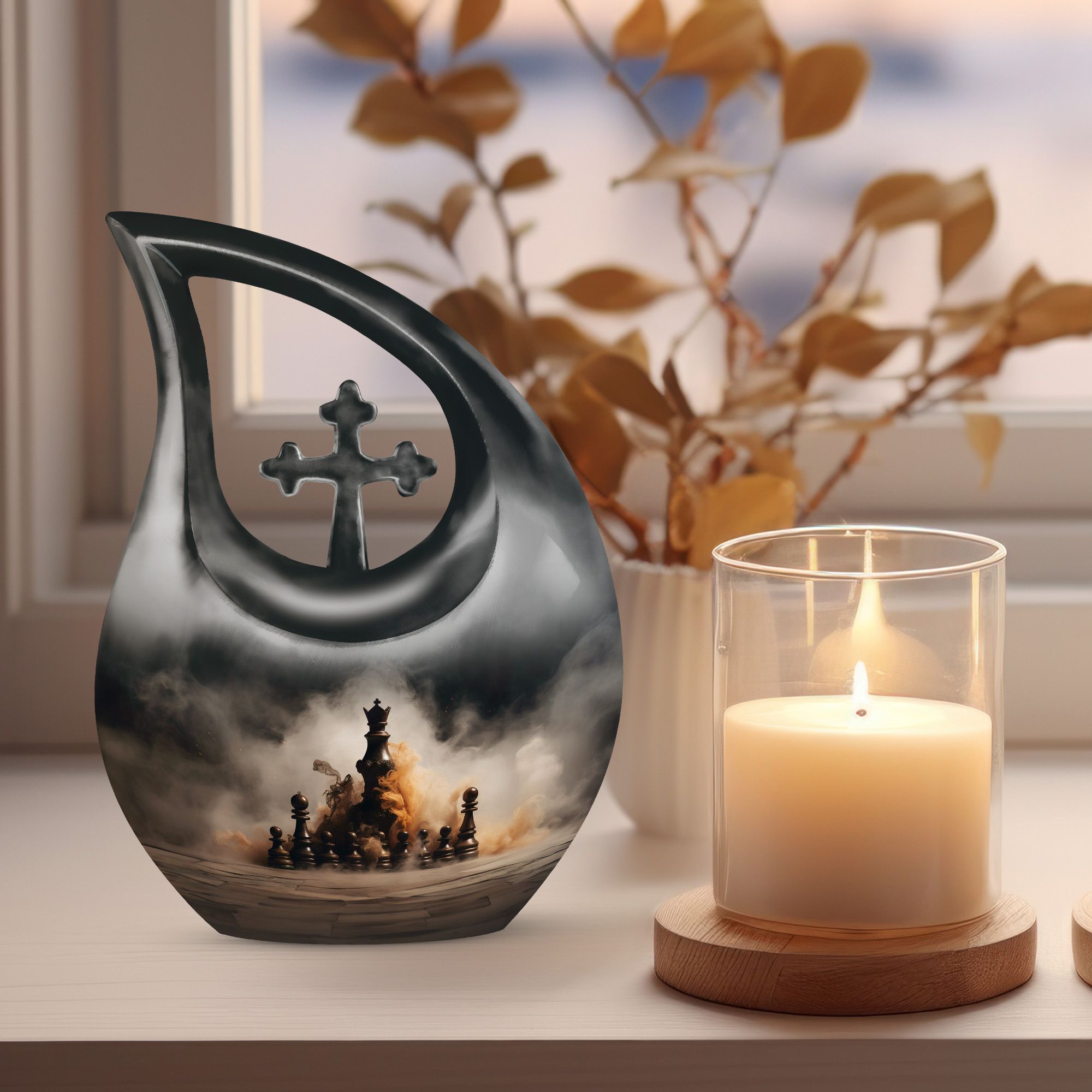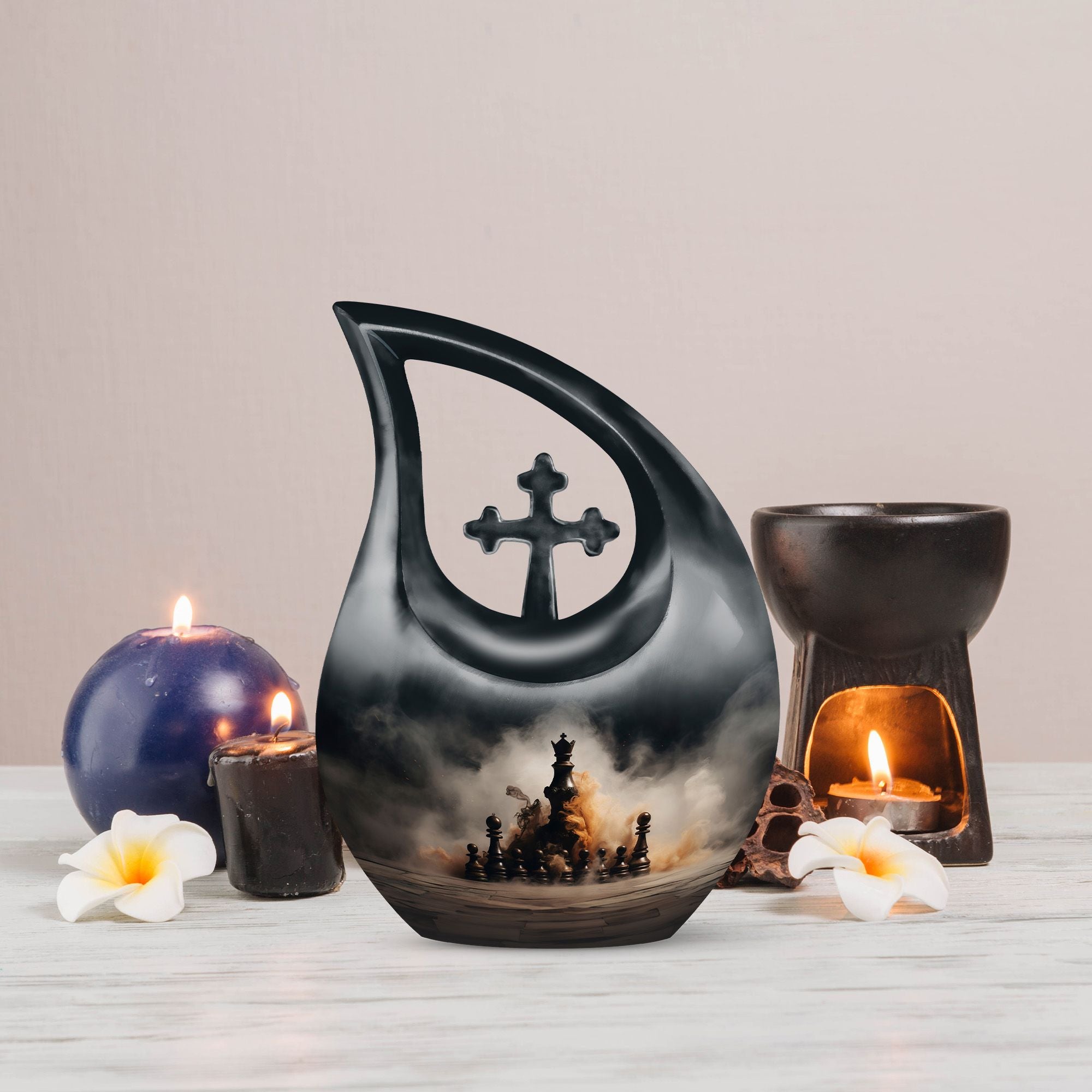 As one of the most distinctive cremation urns human designs, the Chess Themed Urn for Men stands as a tribute to brilliance and perseverance. Whether displayed as a cremation ashes urn or chosen for burial, it reflects a man’s life lived with strength, dignity, and purpose — a final move in honor of a well-played life.