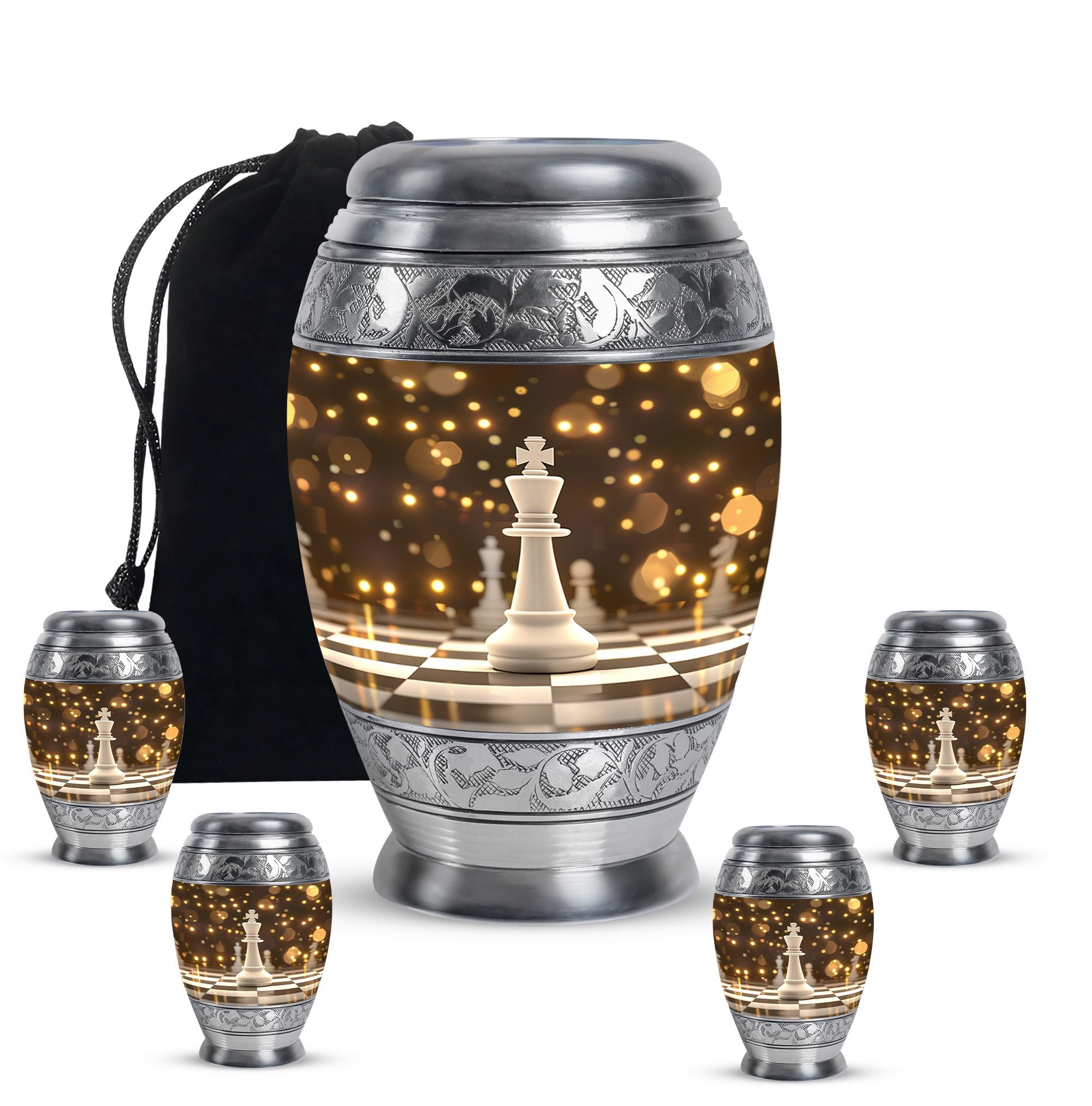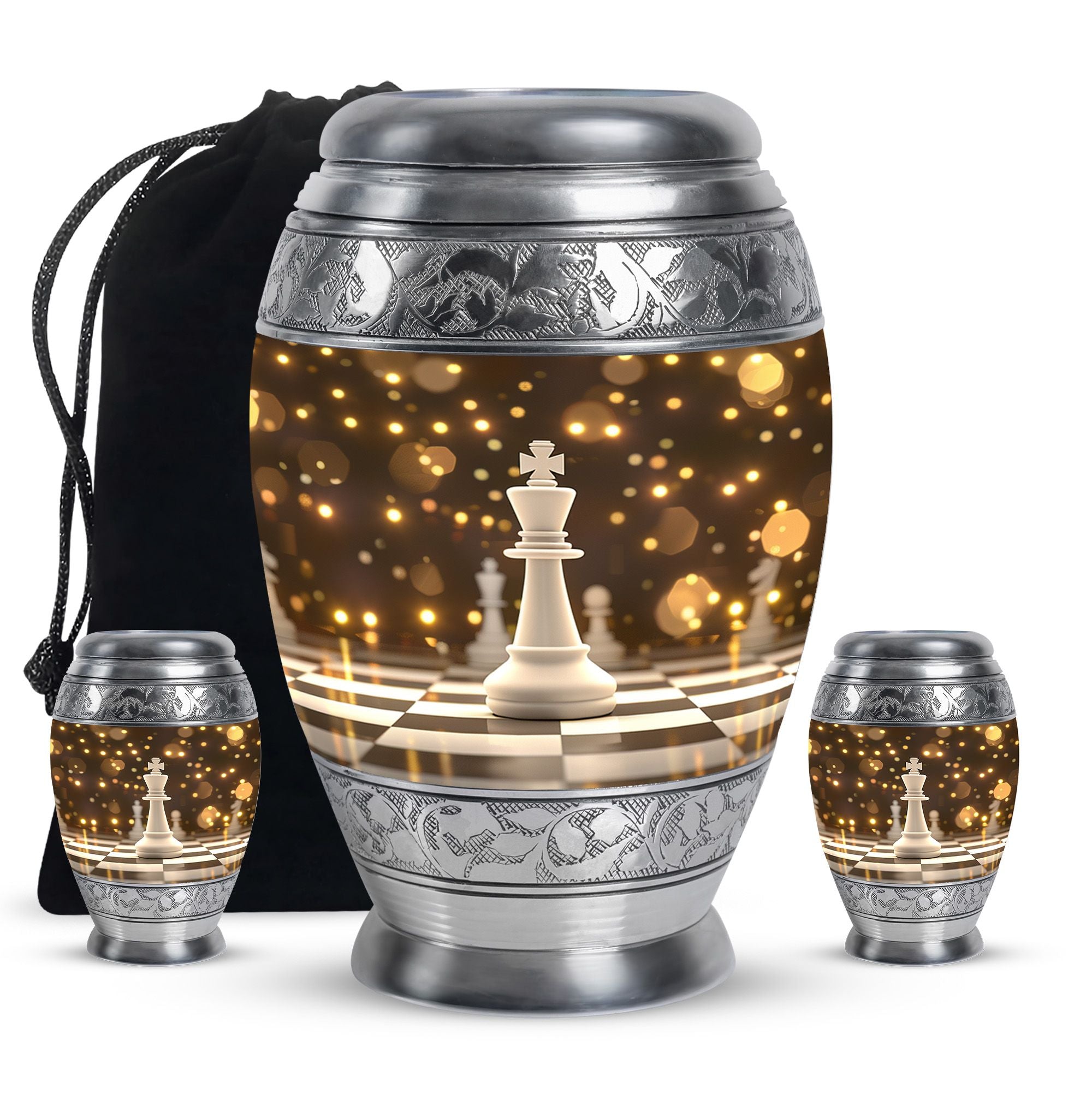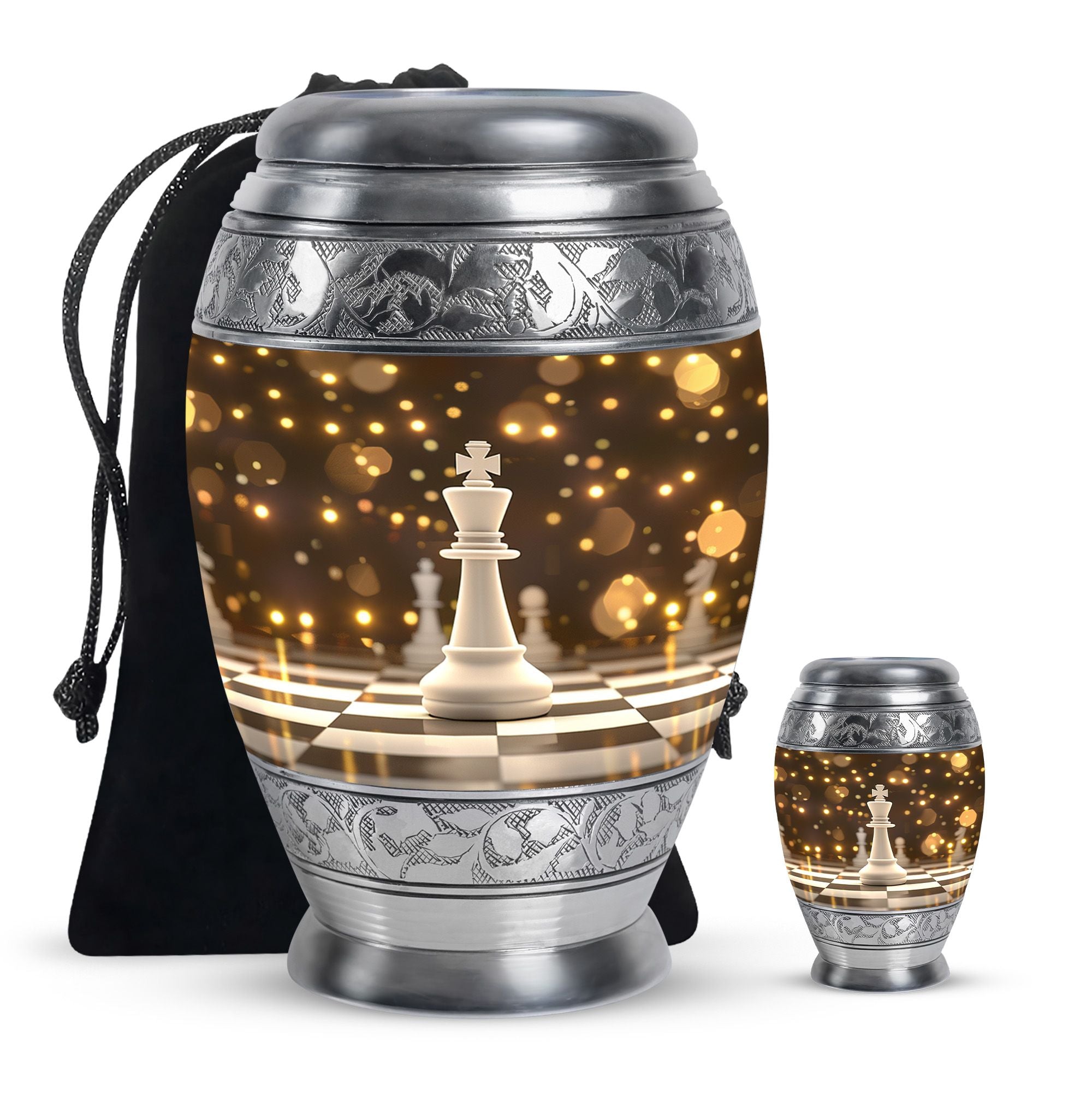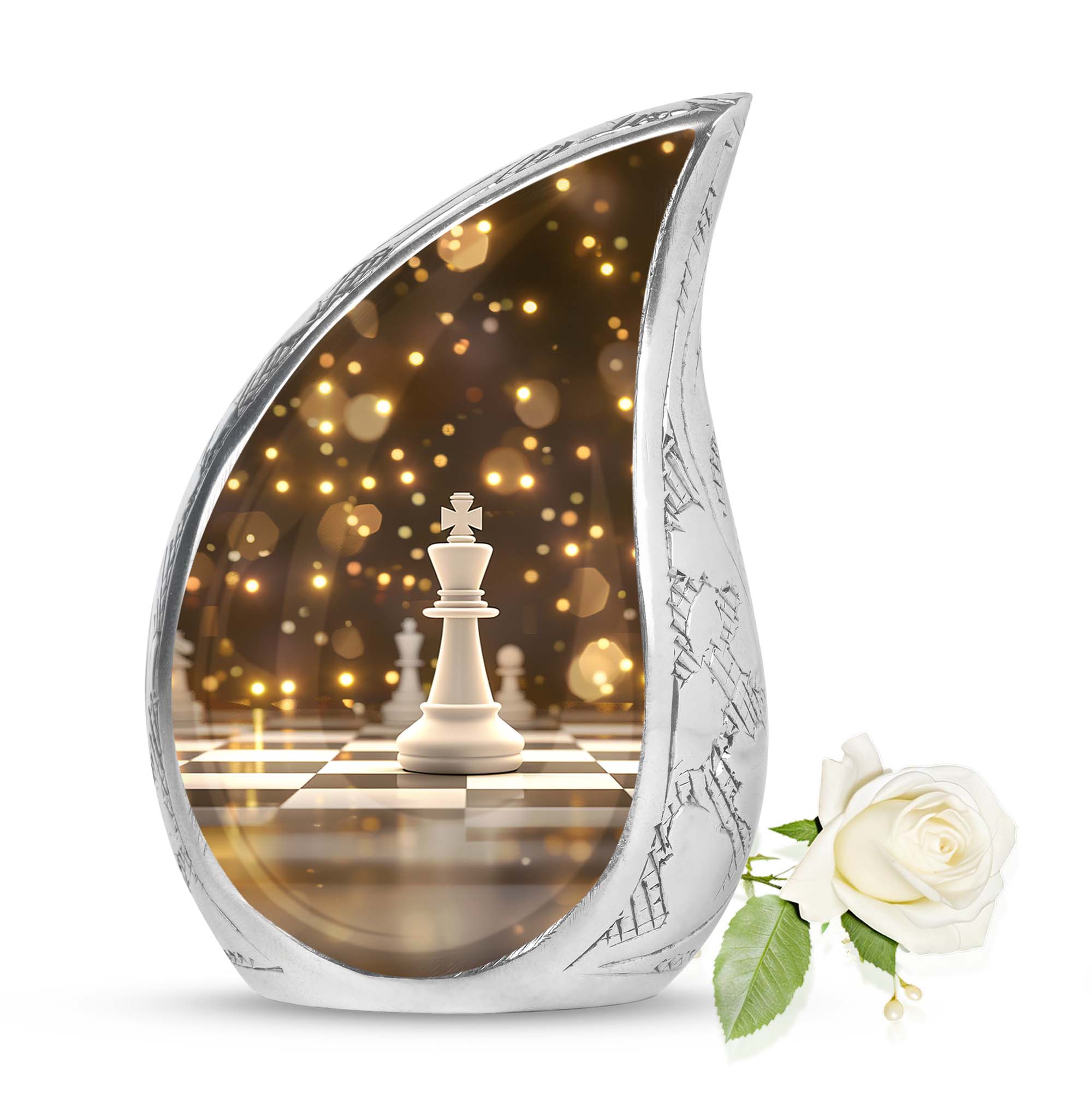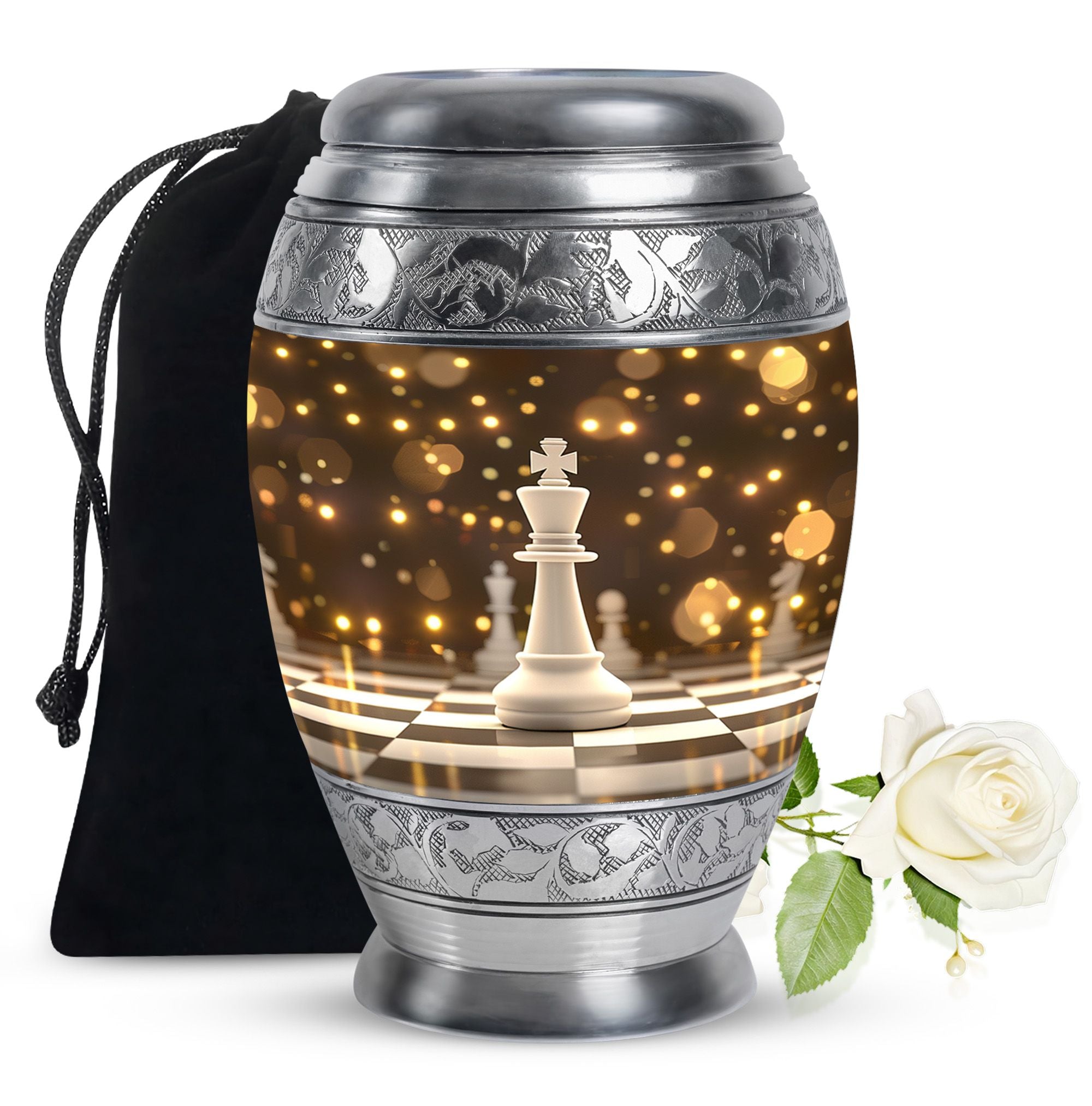 Celebrate a life of wisdom with the **Chess Urn for Human Ashes Medium Size**. Order today for a meaningful and lasting tribute.