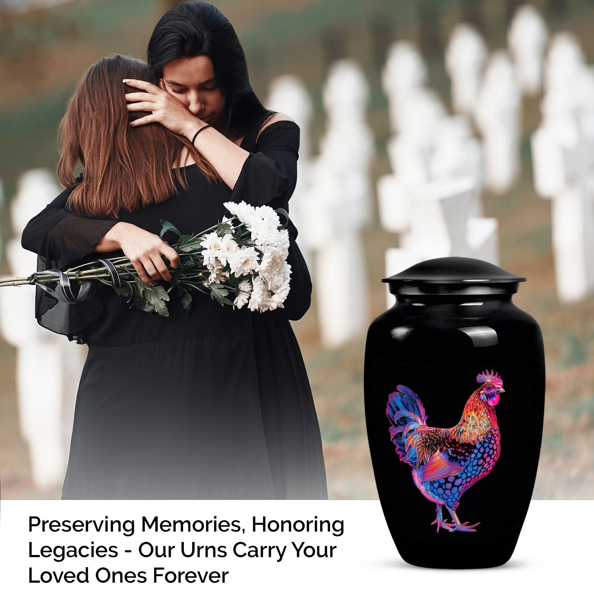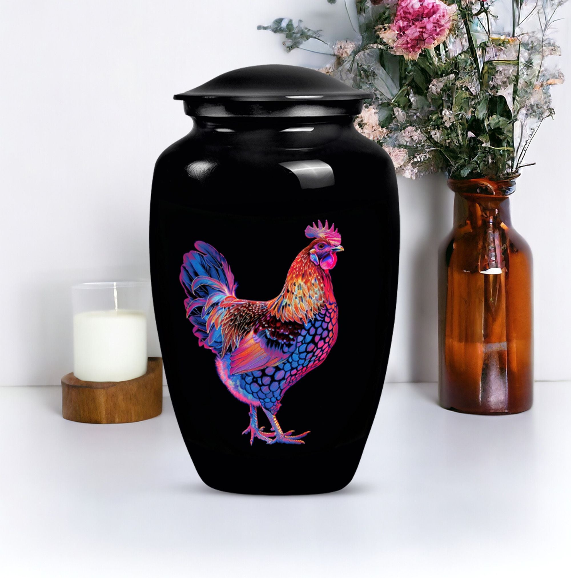 Honor your dearly departed with this elegant 10-inch 'Classic Urn', a product of excellent artisanship. Crafted from high-grade Aluminium, this large urn weighs a sturdy 3.3 pounds and radiates a solemn charm with its floral theme. It can securely hold up to 200 cubic inches of ashes, making it suitable as a chicken urn or as memorial adult urns for human ashes. Personalization options are available for a more heartfelt touch, allowing engraved names for a truly personal memorial. Each urn is supplied with a velvet pouch to securely contain the precious remains. The understated elegance of this piece allows it to fit seamlessly into various settings, whether it is for burial in the ground or remembrance at home. Search phrases commonly related to this product include 'cremation urns', 'adult urns', and 'memorial urns for human ashes women'. Please note that despite its ornate appearance, this urn possesses a profound simplicity, making it an appealing choice for individuals seeking both beauty and quiet dignity in their memorial ceremony supplies.