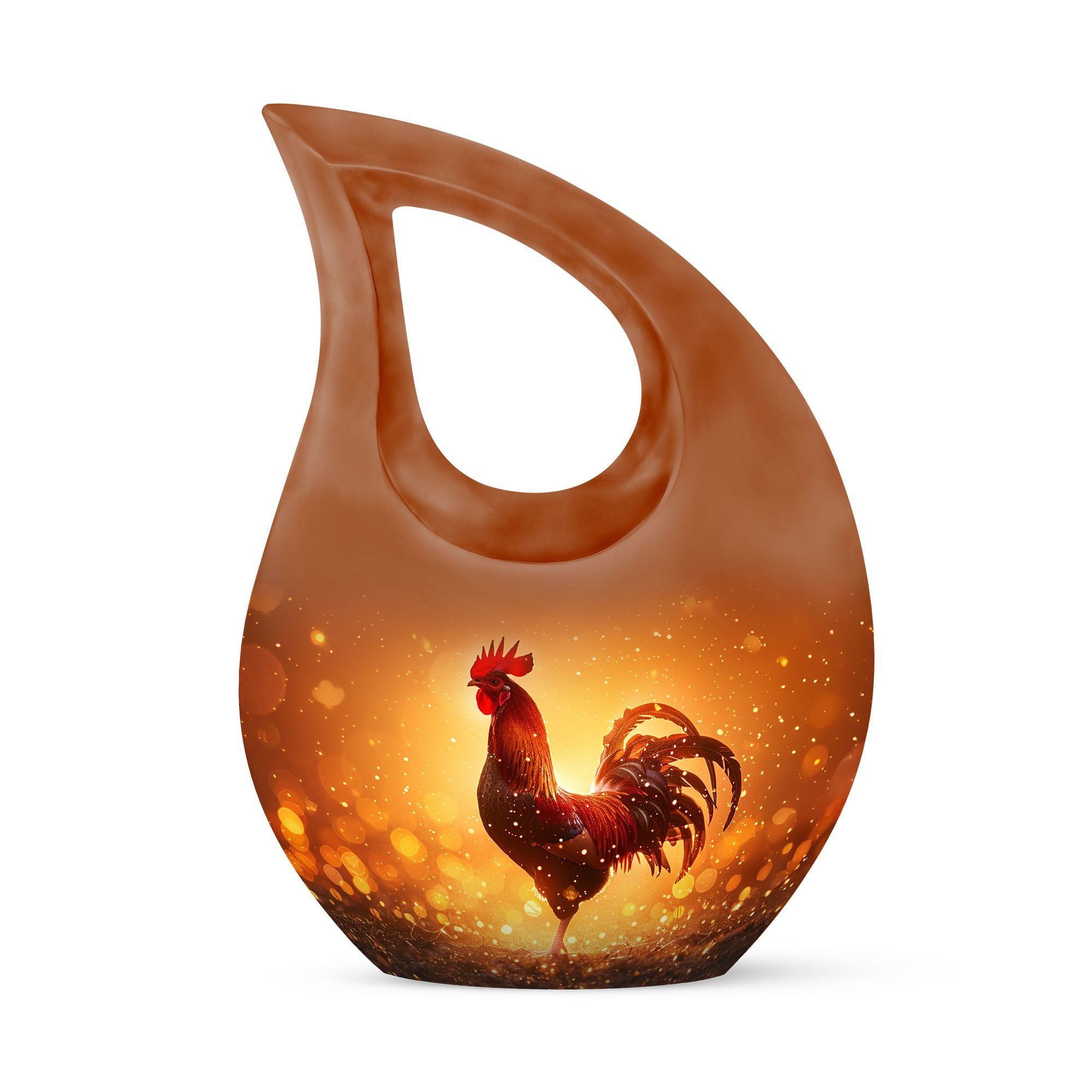 Celebrate the life of a loved one by immortalizing their ashes in our exclusive Cross Drop Chicken Urn. Providing solace in anointing a final resting place, this 10-Inch Large urn goes beyond the ordinary, encasing the ashes in a sophisticated Aluminium composition. We understand that a life well-lived is unique and hence, offer the option to personalize it with engraved names. With a capacity of 200 cubic inches, this urn can hold the ashes of adults and seniors alike. It is light, weighing just 3.3 pounds, yet durable; beautifully capturing the profoundness of passing. Making it a seamless experience, it comes with a velvet pouch to contain and transfer the ashes. This Chicken-themed urn is a unique selection compared to typical Cremation Containers, Burial Urns or Cremation Boxes. Highly sought after, this memorial urn is within the Best Urns for Ashes category. Embrace the delightful memories and encapsulate them in our stunning urn, making it a timeless reminder of serene life spent.