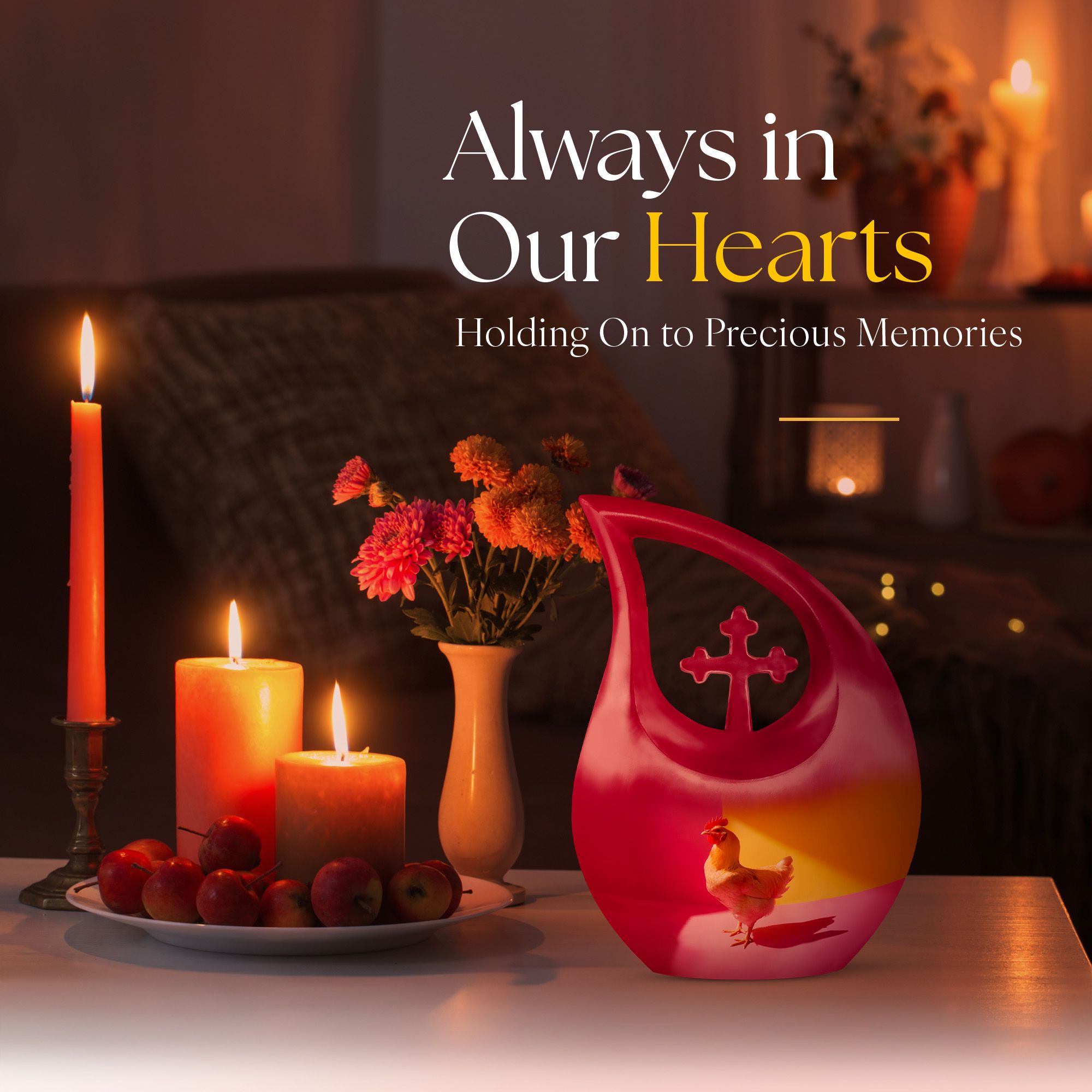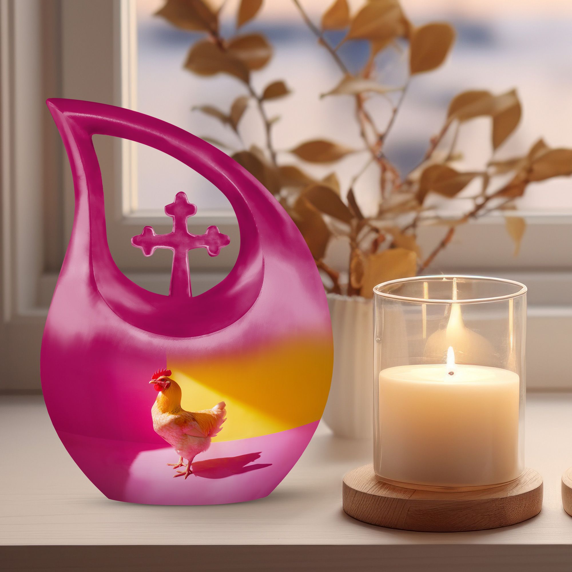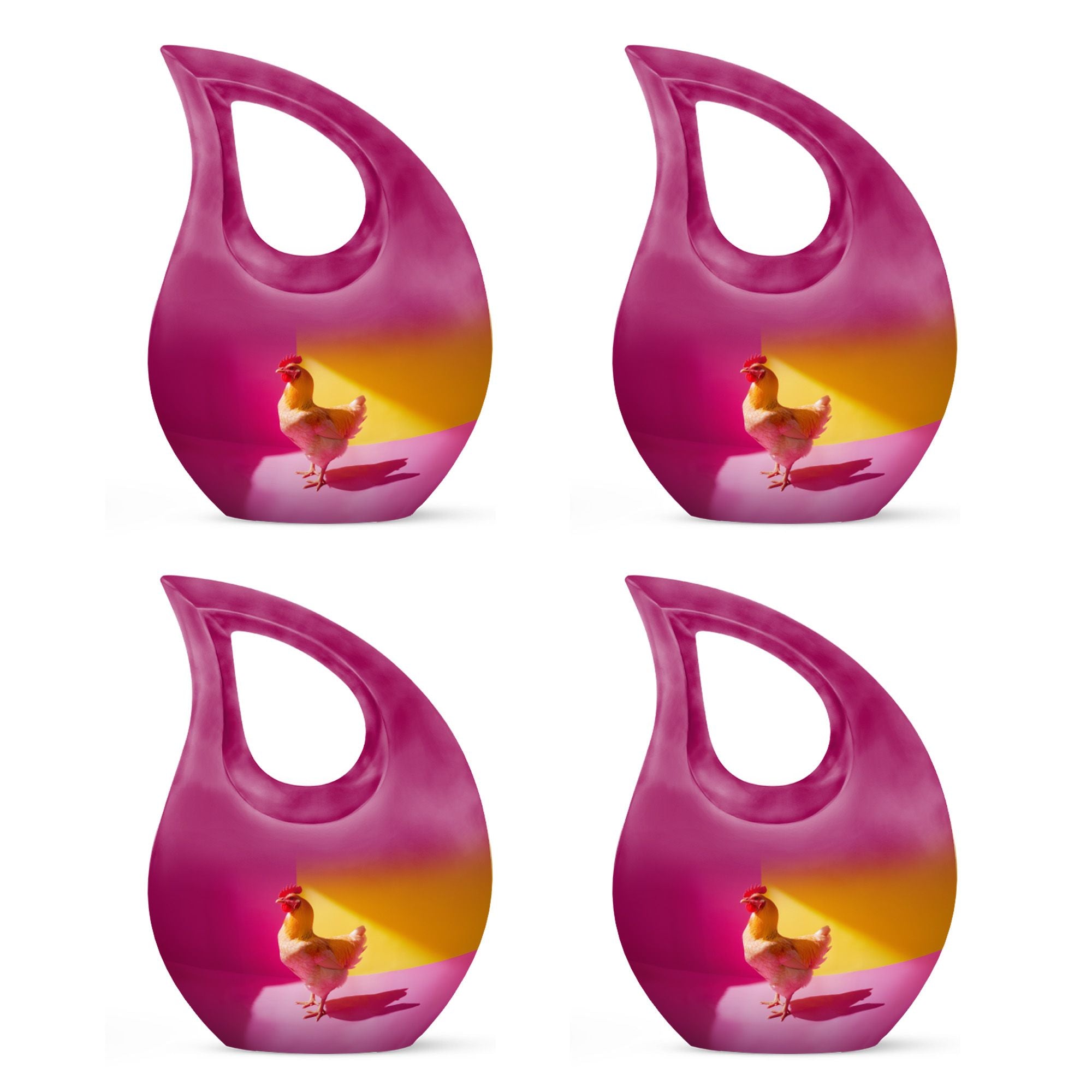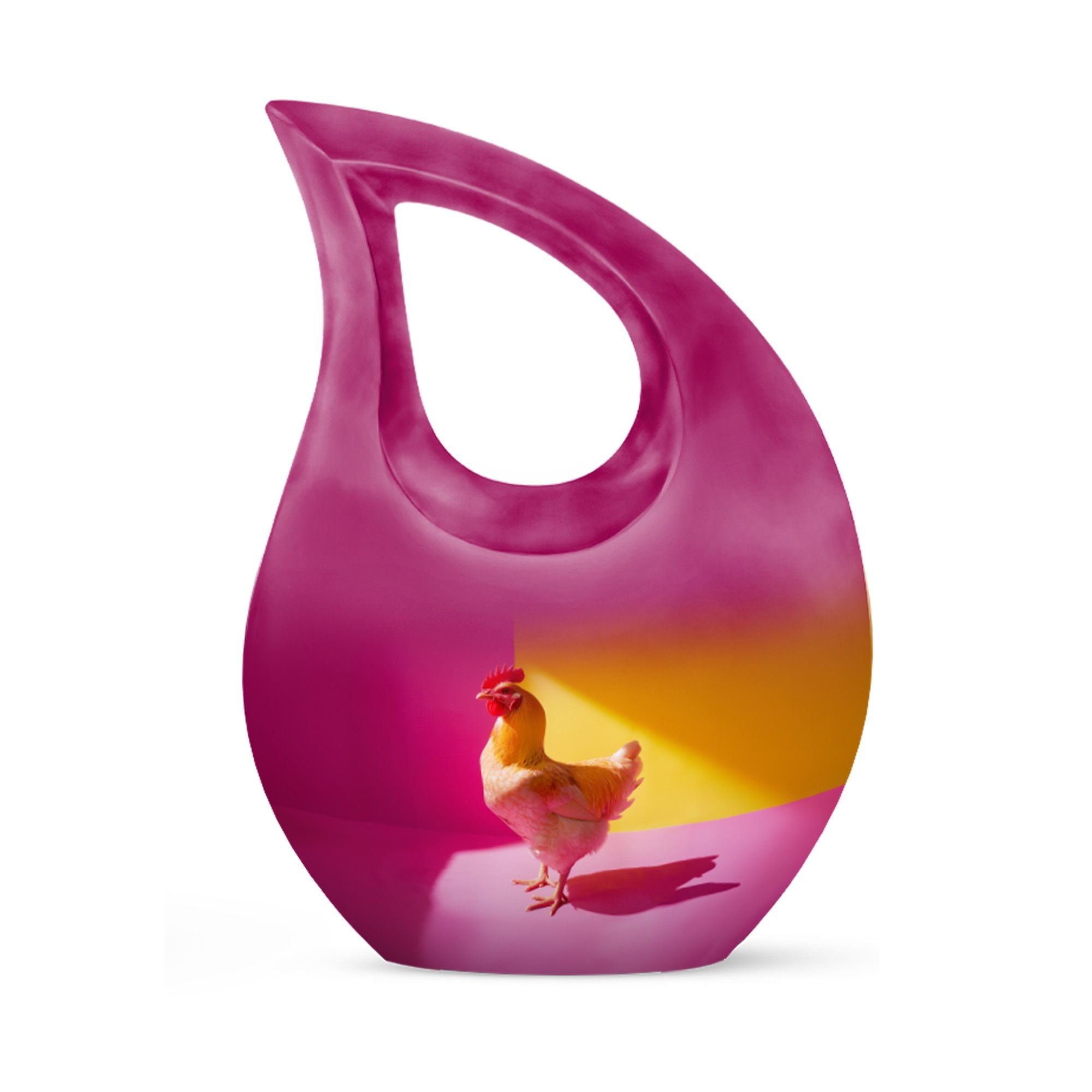 Unearth a cherished route to remember your loved ones with our Chromatic Chicken Contrast Urn. This sizeable 10-inch Aluminium urn, weighing 3.3 pounds, amalgamates both durability and grandeur. Its magnificent Cross Drop theme exhibits a blend of traditionality and modernity, emphasizing its unique and outstanding coruscating design. Not only is this cremation box remarkably composed, but also it significantly holds a capacity of 200 cubic inches, sufficient to contain substantial ashes of beloved adults. The package includes a soft velvet pouch that modestly and securely contains the corresponding ashes, subtly respecting your sentiments. Furthermore, make this urn a truly unique memory with our customization option to personalize it with engraved names, embracing the dear bond you shared. Distinguished as a fitting choice among memorial urns, our urn perfectly serves as a companion urn for two adults or as an individual urn, creating a timeless tribute. Noted for affordability without compromising quality, it's an ideal choice for those seeking inexpensive urns with an overflow of warmth and honor. This urn stands as a beacon of comfort, love, and remembrance.