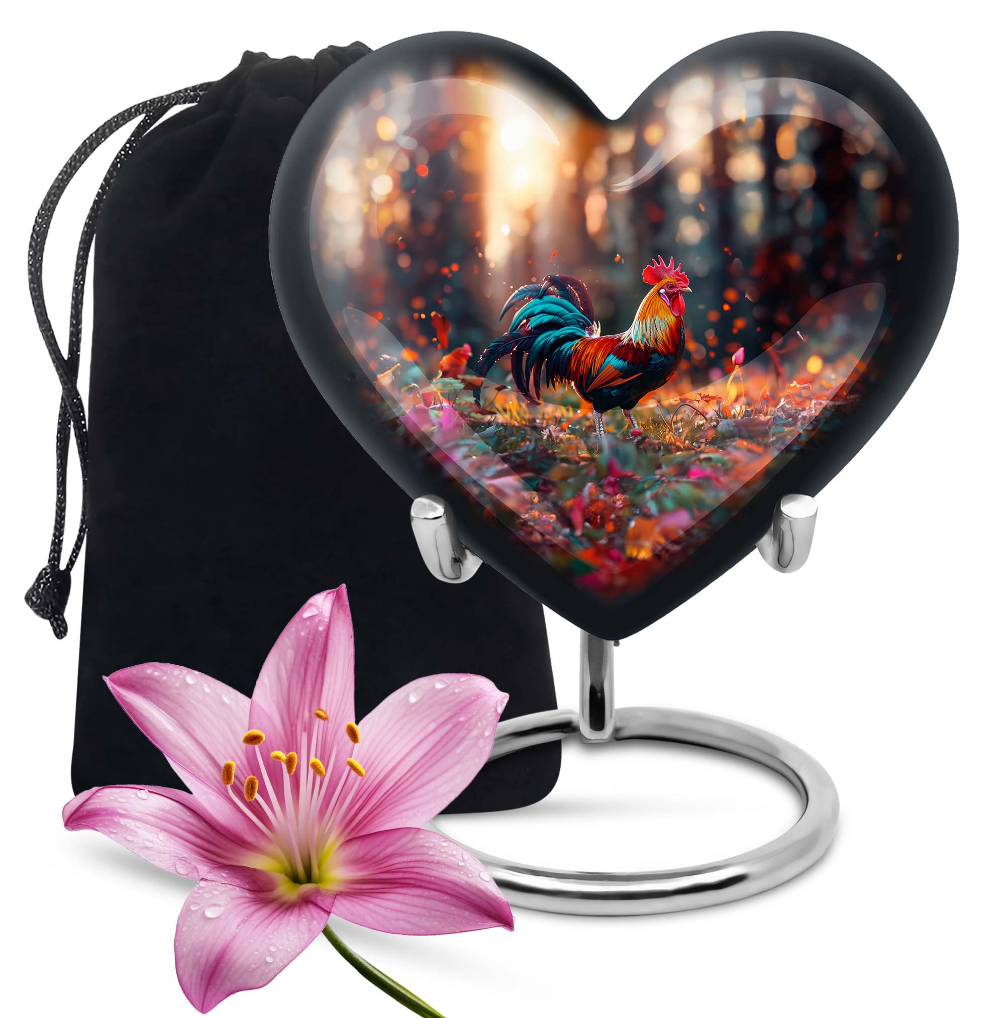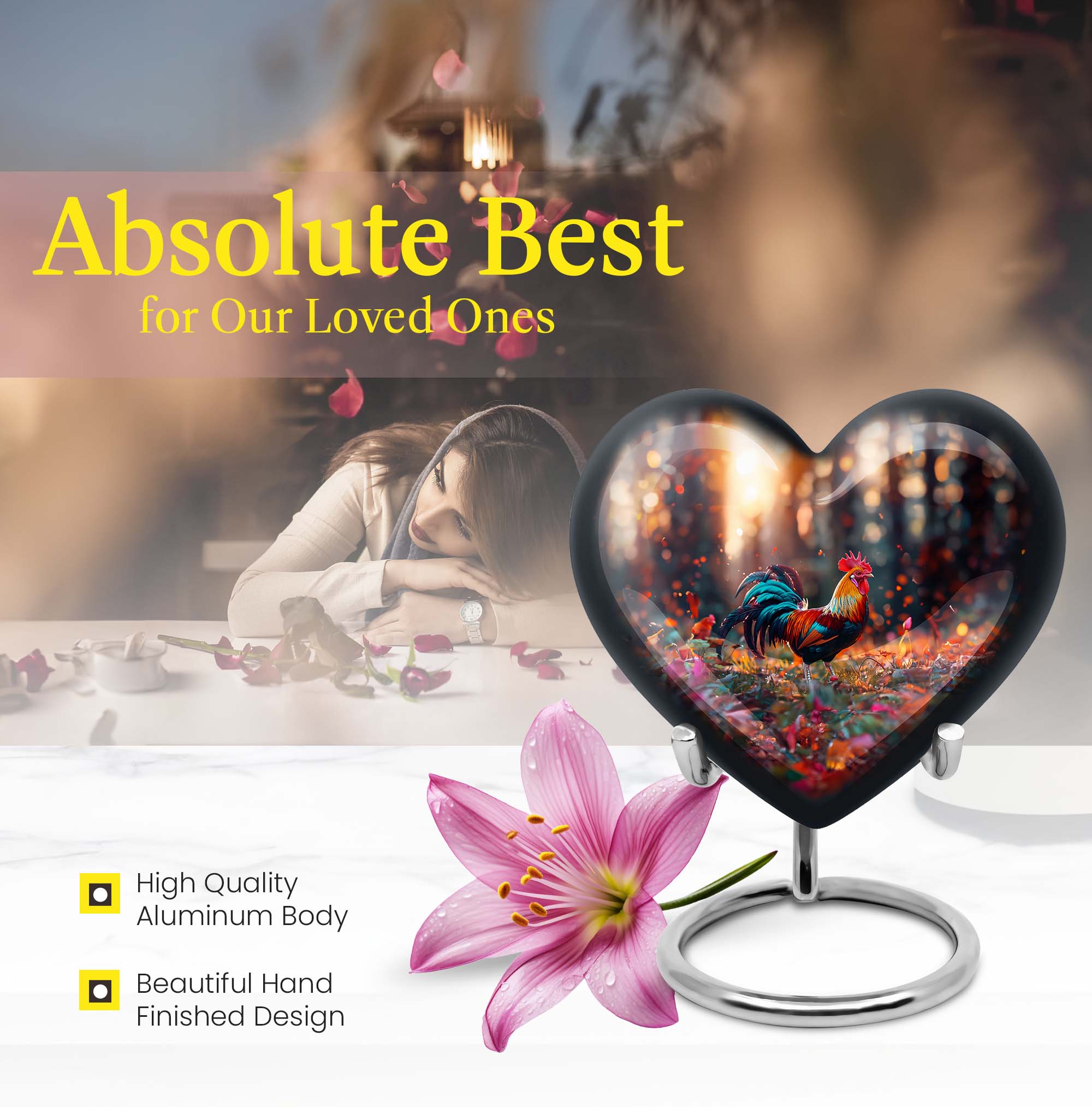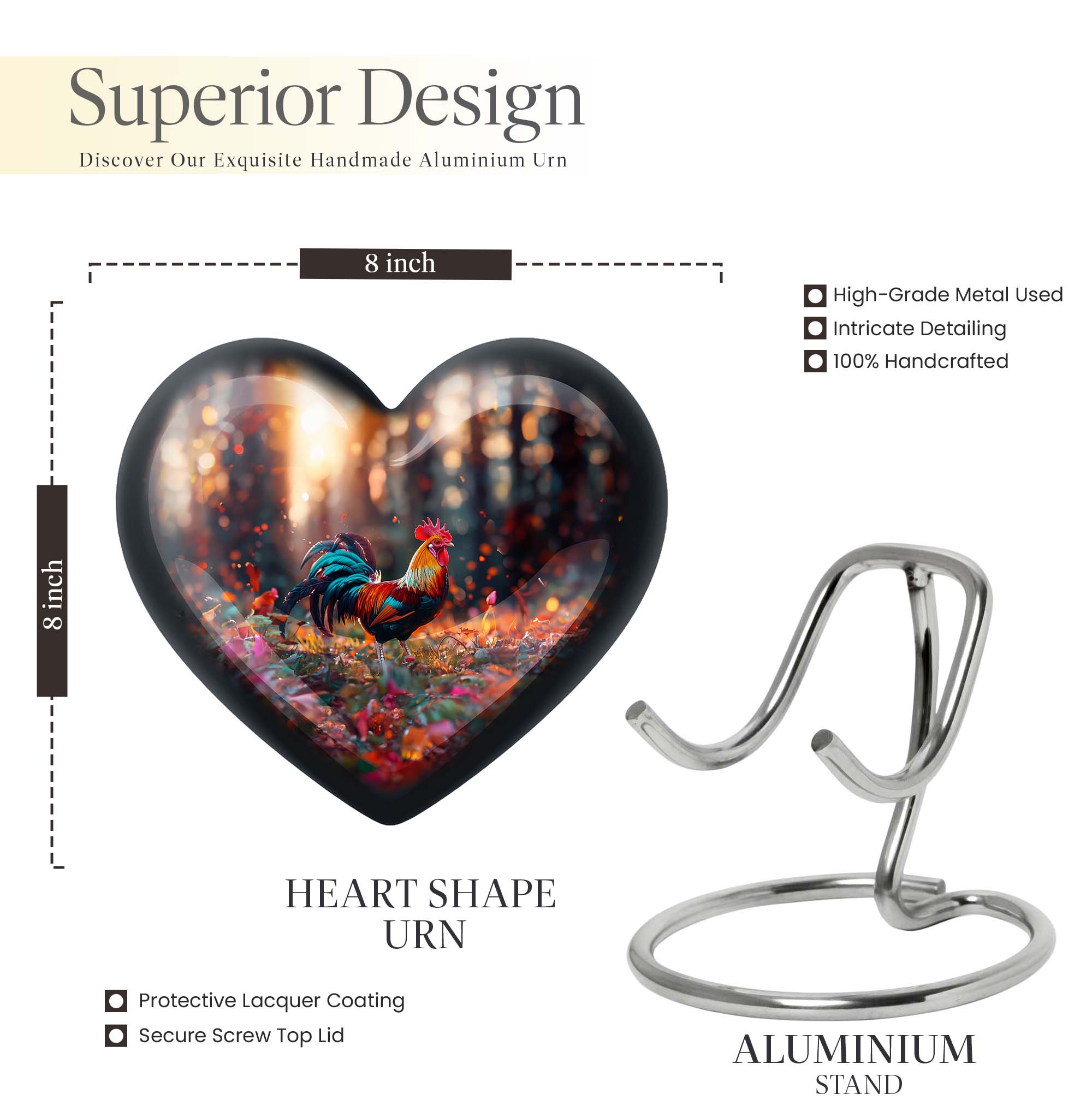 Honor the memory of your loved ones with our sublime 10-inch Chicken Urn, a magnificent tribute designed for adults. Handcrafted from long-lasting aluminium, this urn is more than just an ash containment vessel; it's a sentiment from the heart. Our Chicken Urn comes with a snugly fitting velvet pouch, carefully preserving up to 200 cubic inches of ashes with weight capacity of 3.3 pounds. This cremation urn, draped in floral theme, is guaranteed to warm your heart during such trying times. Customizable feature is available to personalize with engraved names as a constant reminder of enduring memories. This comfortably large urn is sized to suit the aesthetic of any ceremonial or religious space. Whether it's for female or male, our urns echo the harmonious balance between elegance and quality manufactured with love and respect towards the departed.