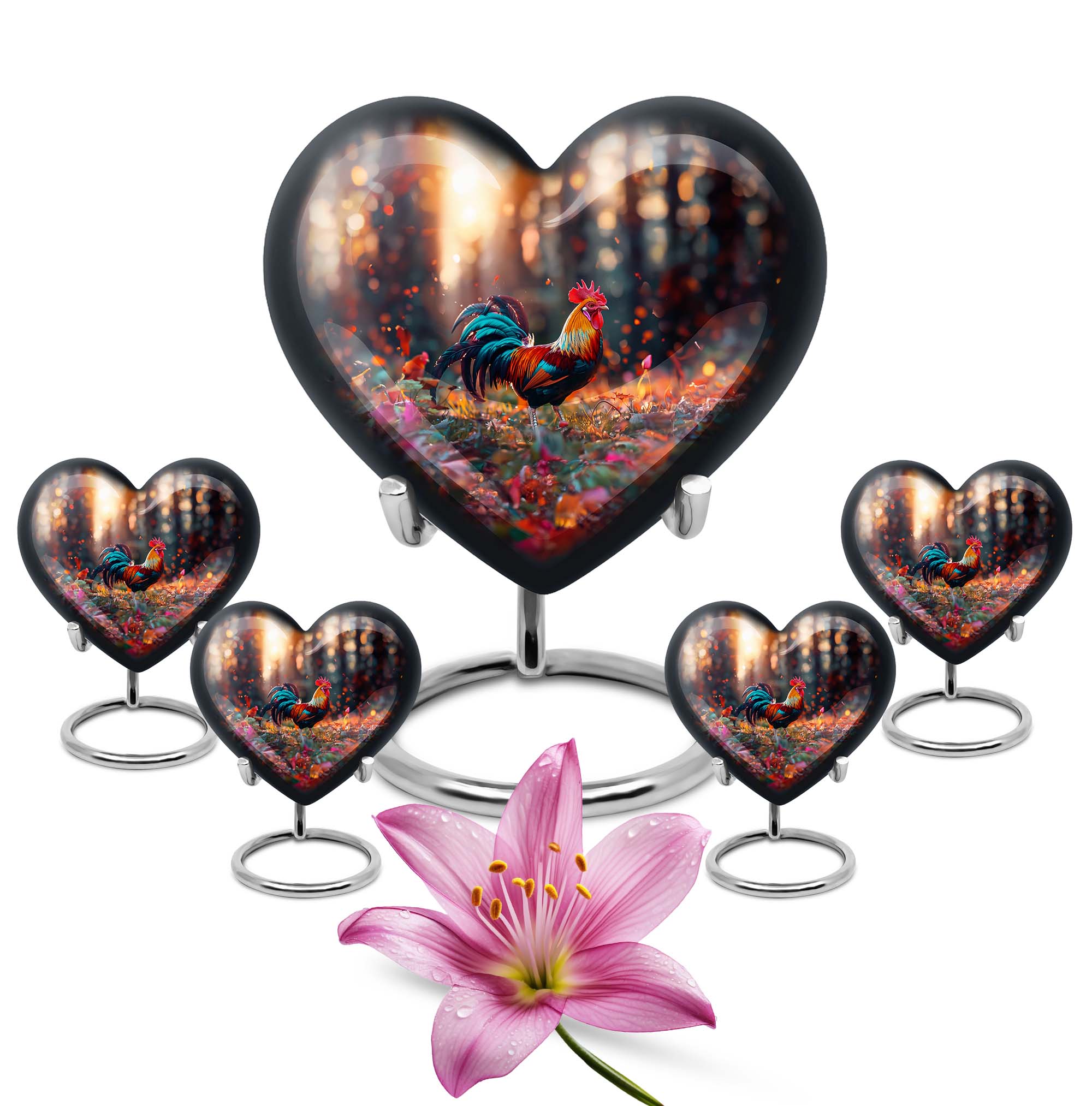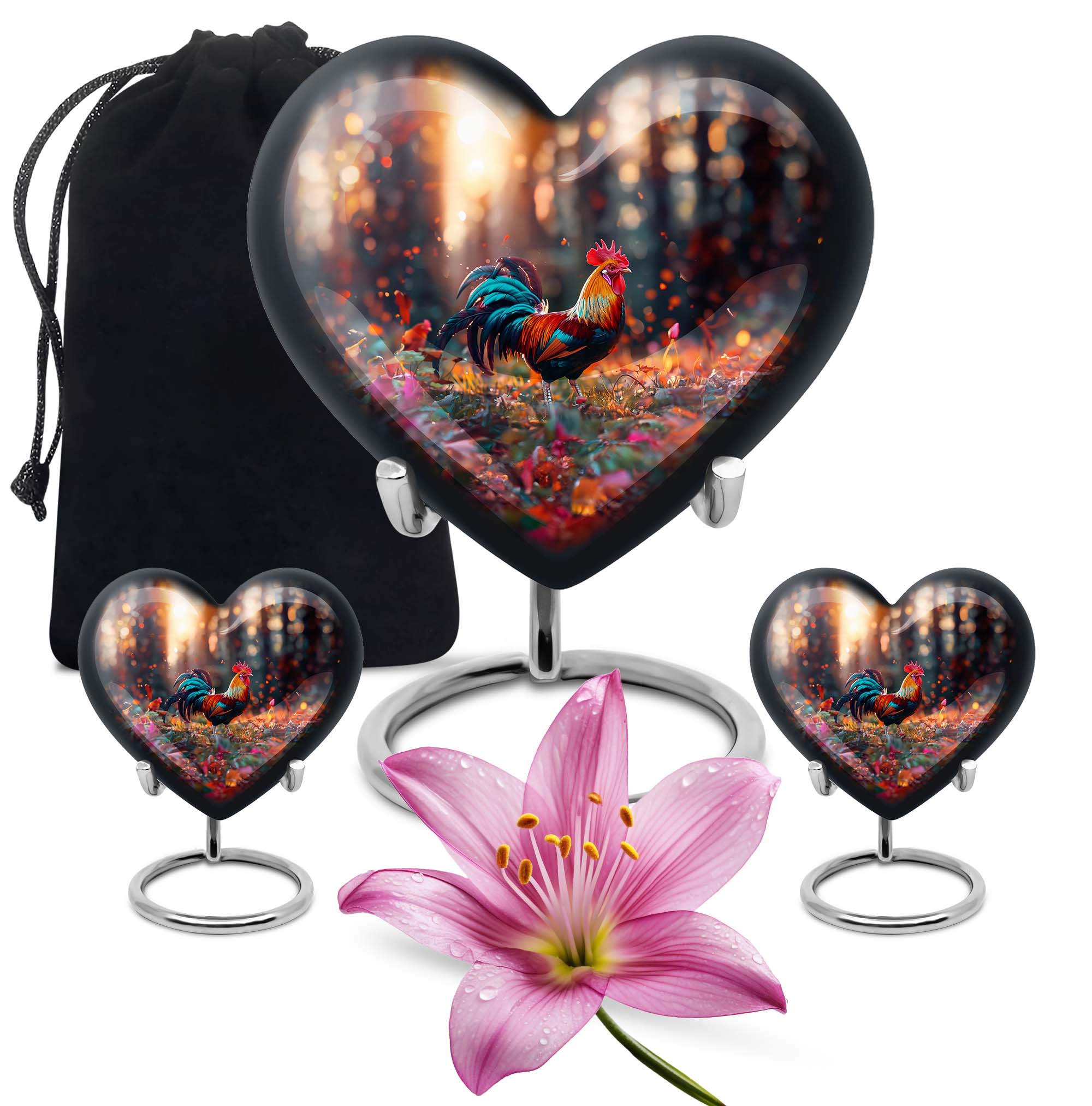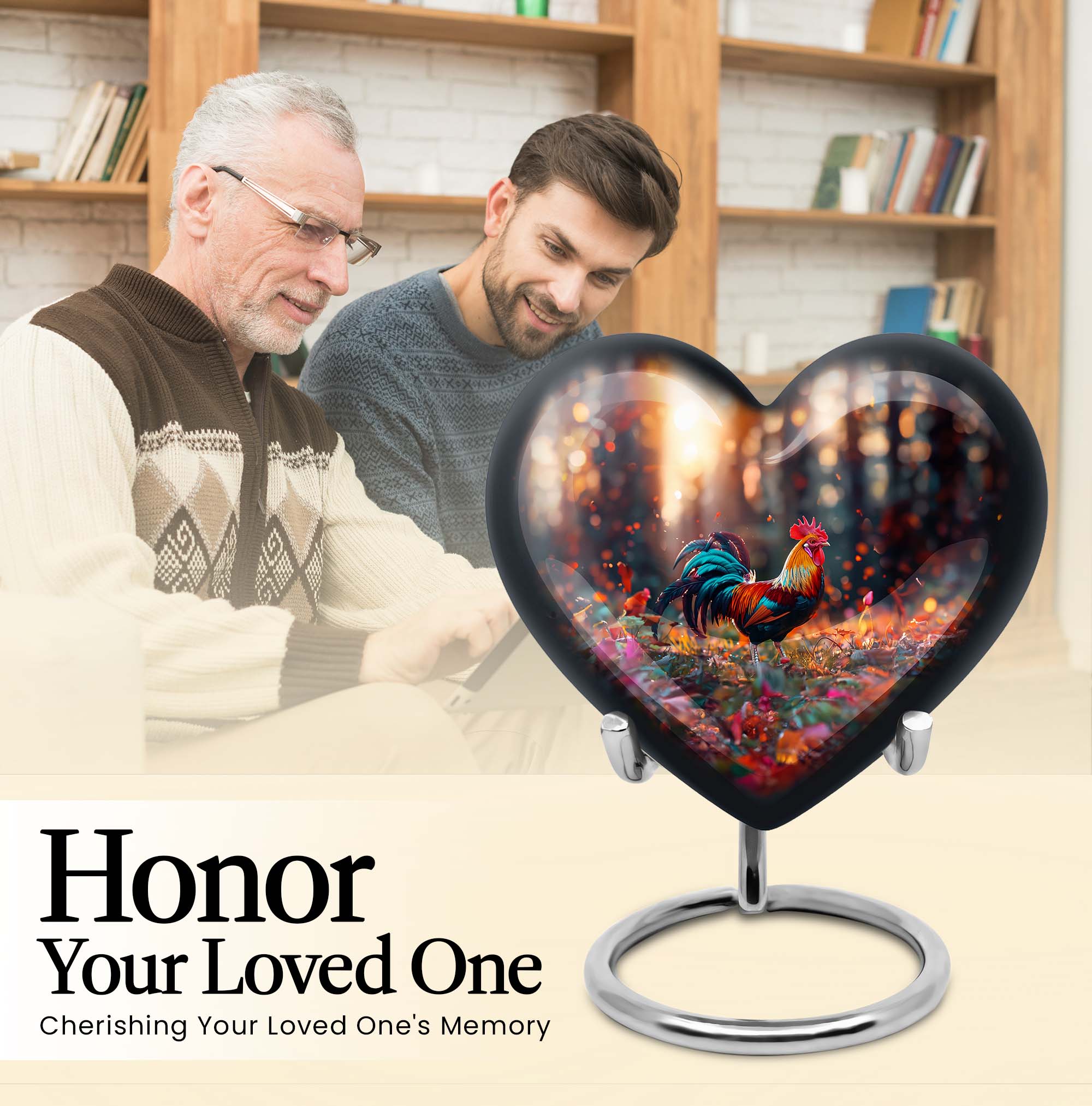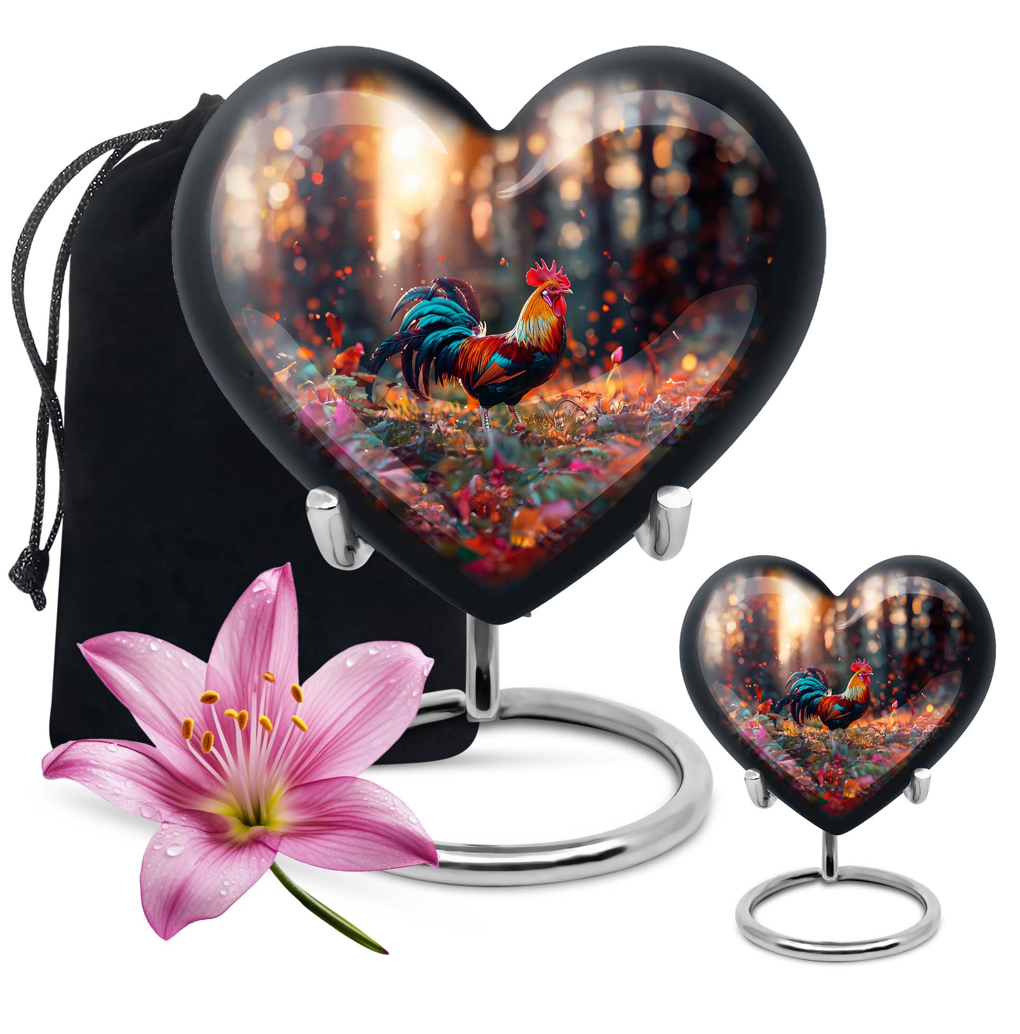 Honor the memory of your loved ones with our sublime 10-inch Chicken Urn, a magnificent tribute designed for adults. Handcrafted from long-lasting aluminium, this urn is more than just an ash containment vessel; it's a sentiment from the heart. Our Chicken Urn comes with a snugly fitting velvet pouch, carefully preserving up to 200 cubic inches of ashes with weight capacity of 3.3 pounds. This cremation urn, draped in floral theme, is guaranteed to warm your heart during such trying times. Customizable feature is available to personalize with engraved names as a constant reminder of enduring memories. This comfortably large urn is sized to suit the aesthetic of any ceremonial or religious space. Whether it's for female or male, our urns echo the harmonious balance between elegance and quality manufactured with love and respect towards the departed.