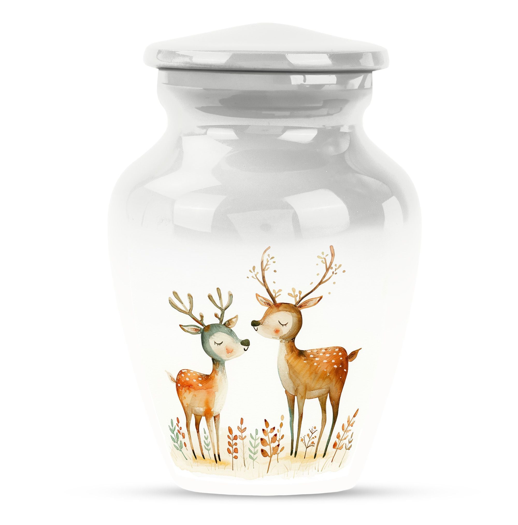 Unveil a timeless tribute with our Gramophone-themed Deer Urn, an exquisite memorial urn ideal for honoring your loved one's remains. Prioritizing quality and aesthetics, this urn is not your average kind; crafted meticulously from robust Aluminium, promising enduring longevity. With a capacity of 200 cubic inches, it comfortably accommodates the ashes of an adult male or female. We understand the magnitude of your loss, hence we regard attention to detail most dearly. The urn gracefully stands at 10 inches, reflecting its noble purpose. It boasts an impressive weight of 3.3 pounds, emphasized by its substantial presence. The package also includes a velvet pouch, providing a dignified containment for the ashes. Want an extra touch? We offer customization; personalize with engraved names to truly make it unique. Make this all-important decision with peace, knowing you're investing in a hearty tribute. This is not just about funeral large urns for human ashes; it's about keeping the memory alive with dignity.