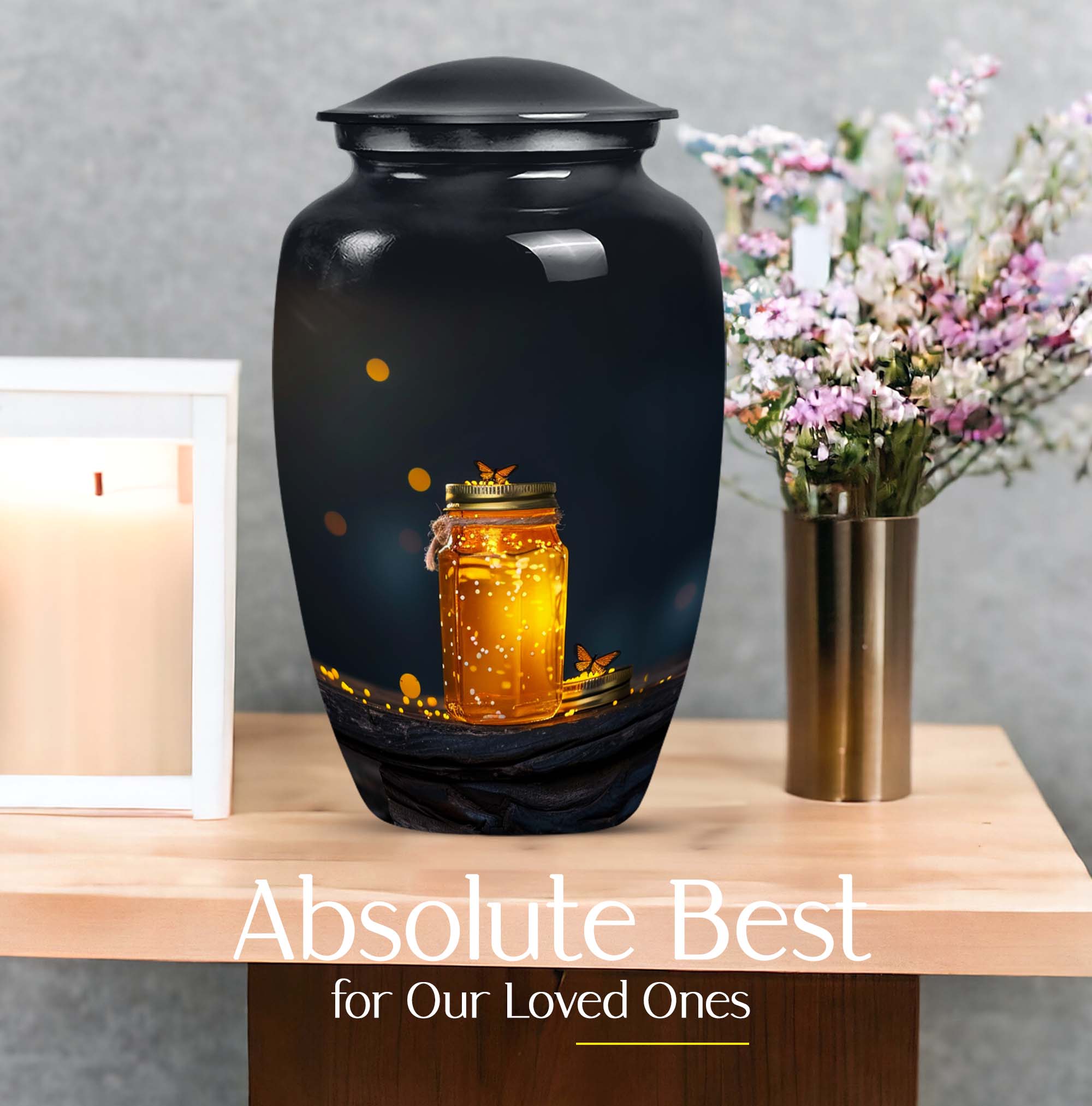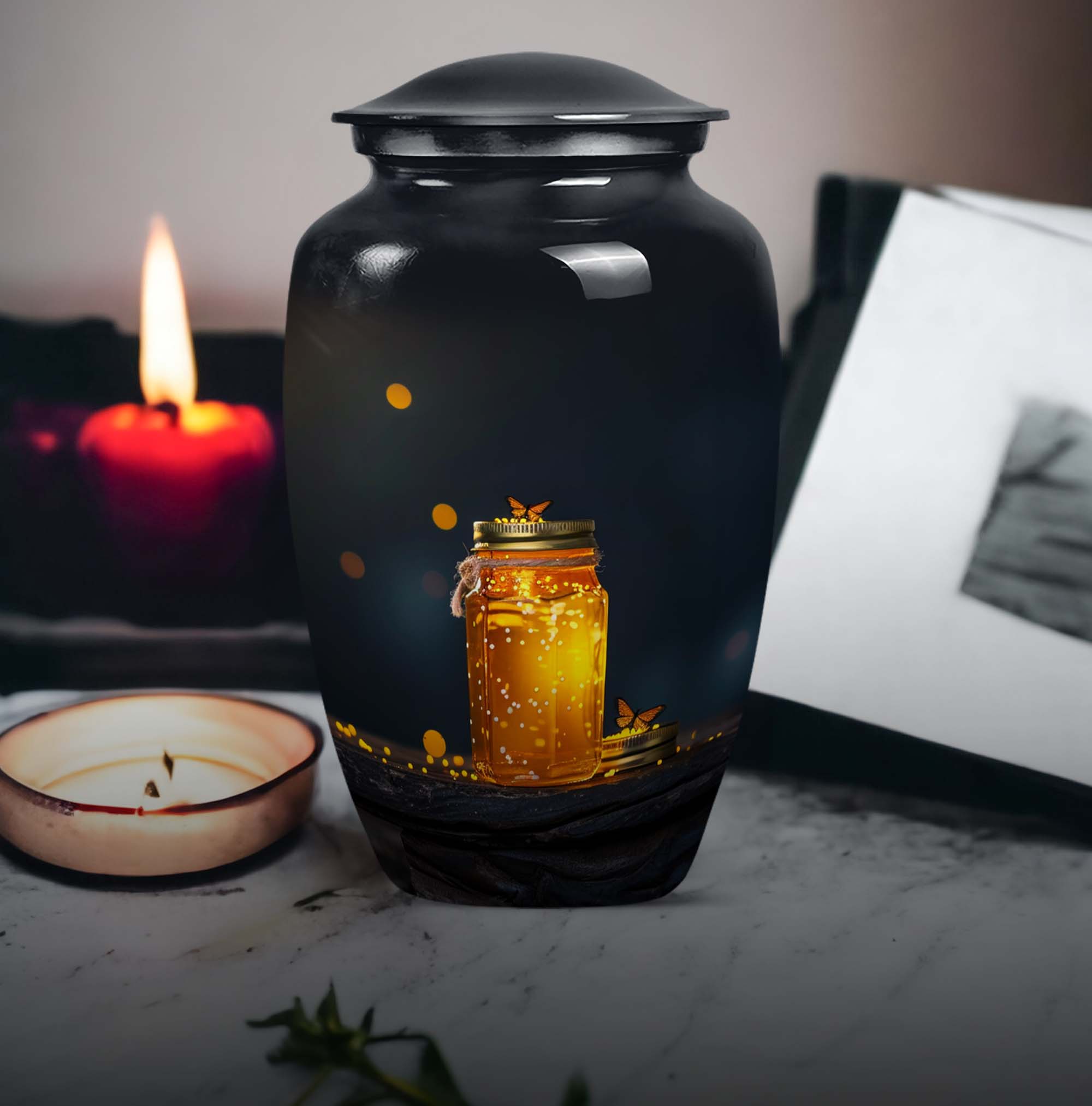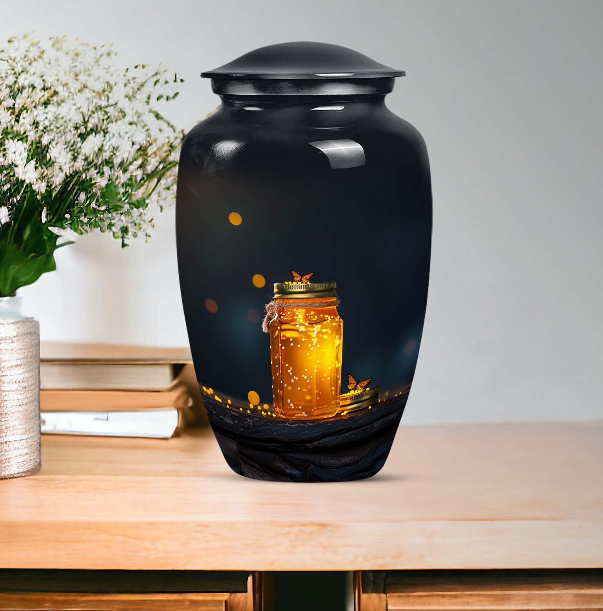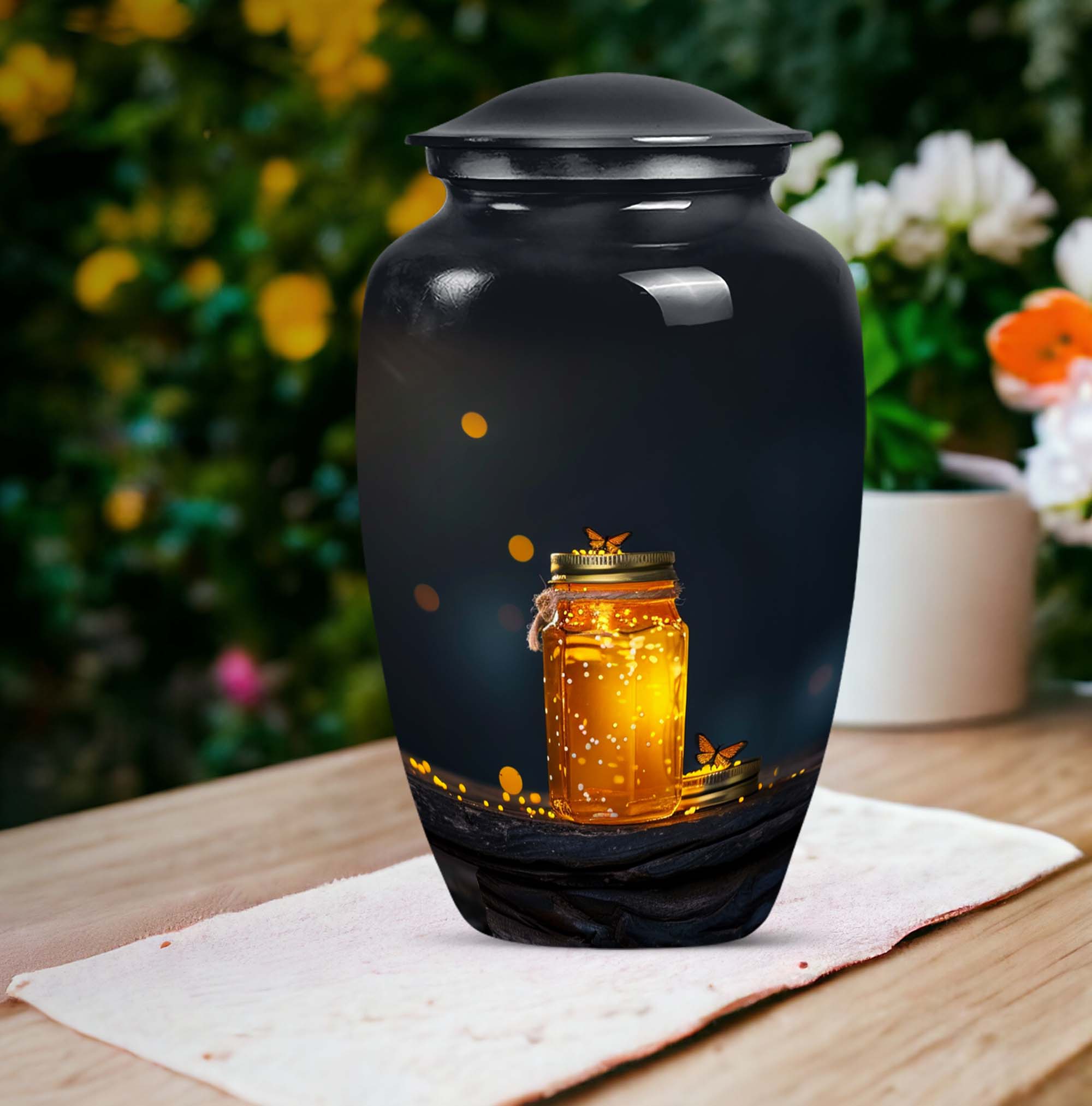 Experience the distinctive elegance of our 10-inch Honey Pot Urn, a fitting symbol of remembrance to honor your loved ones. Crafted from top-grade Aluminium, this large urn is a mix of durability and aesthetic appeal. With a capacity of 200 cubic inches, it comfortably holds the ashes of an adult human. A testament to its form and function, the abstract design evokes a sense of calming tranquility. The urn is a comfortable weight at 3.3 pounds, making it ideal for ceremonious occasions. Its size, a full 10 inches in height, is indicative of its capacity, ensuring a substantial memorial. The package includes a premium velvet pouch for containment and respectful preservation of contents. Allow the option for personalization, by engraving names onto the urn, adding an emotive, personal touch to this keepsake. Desirable for memorial ceremonies and cremations alike, our Honey Pot Urn meets the need for memorable adult urns meant for burial in the ground or to house human ashes safely.