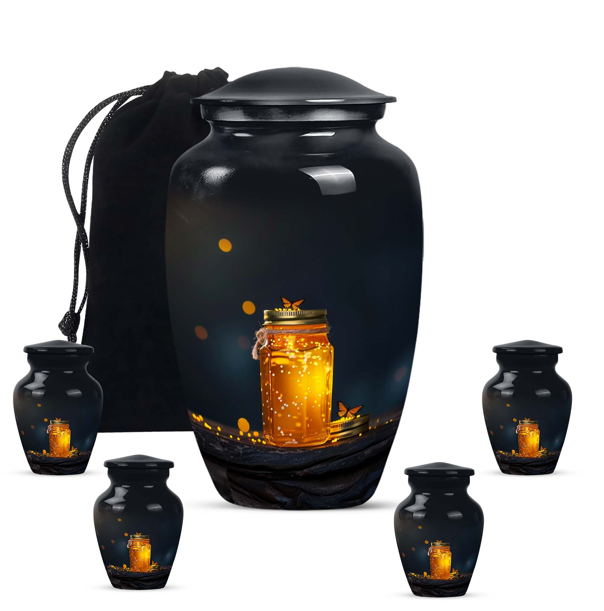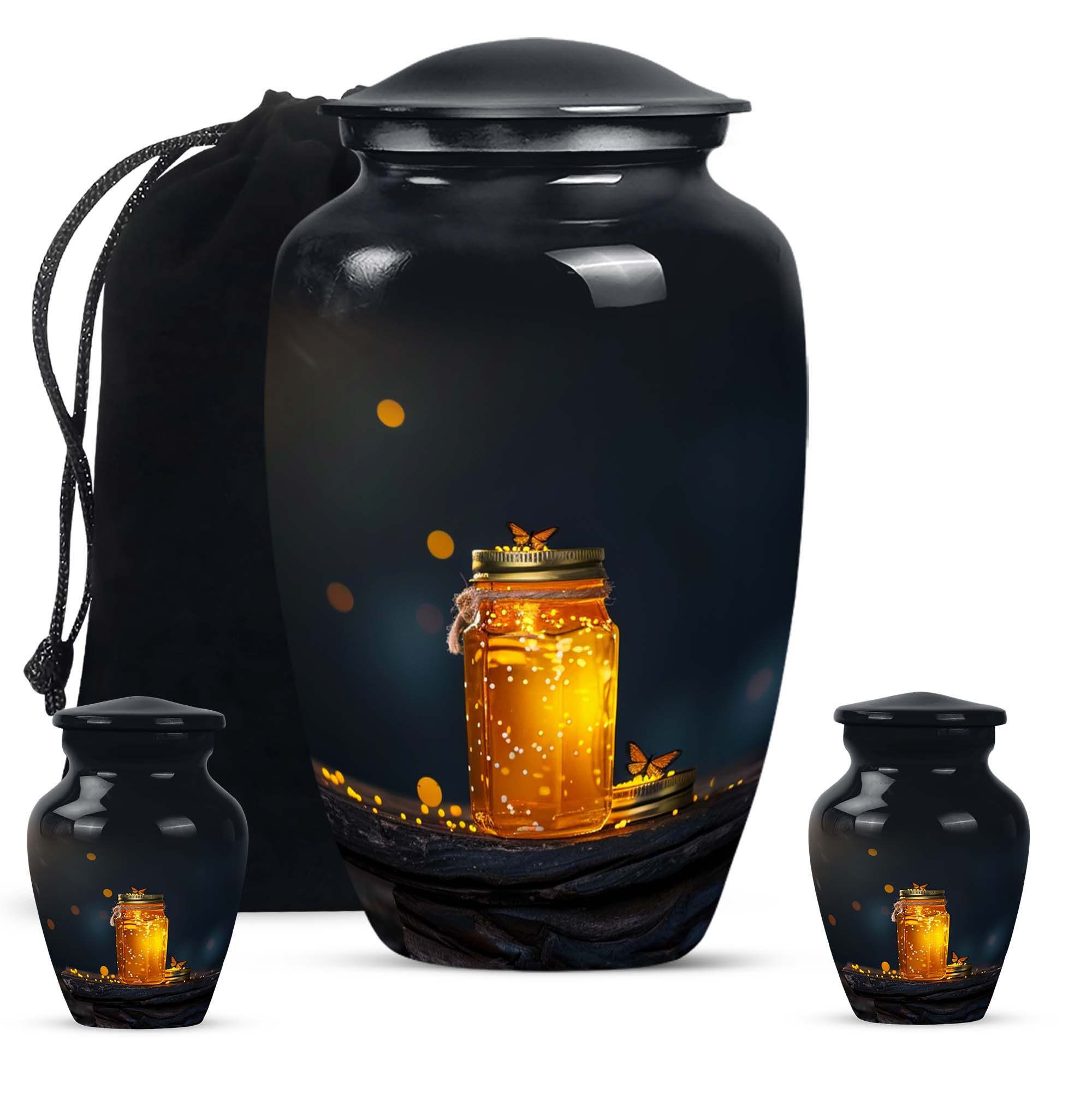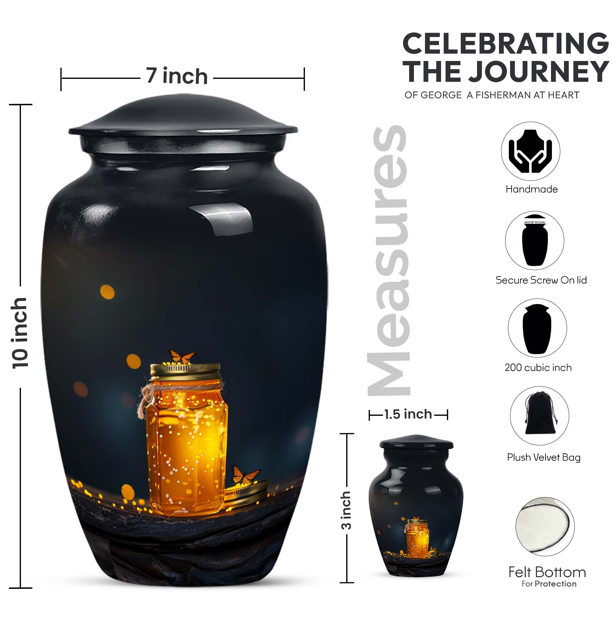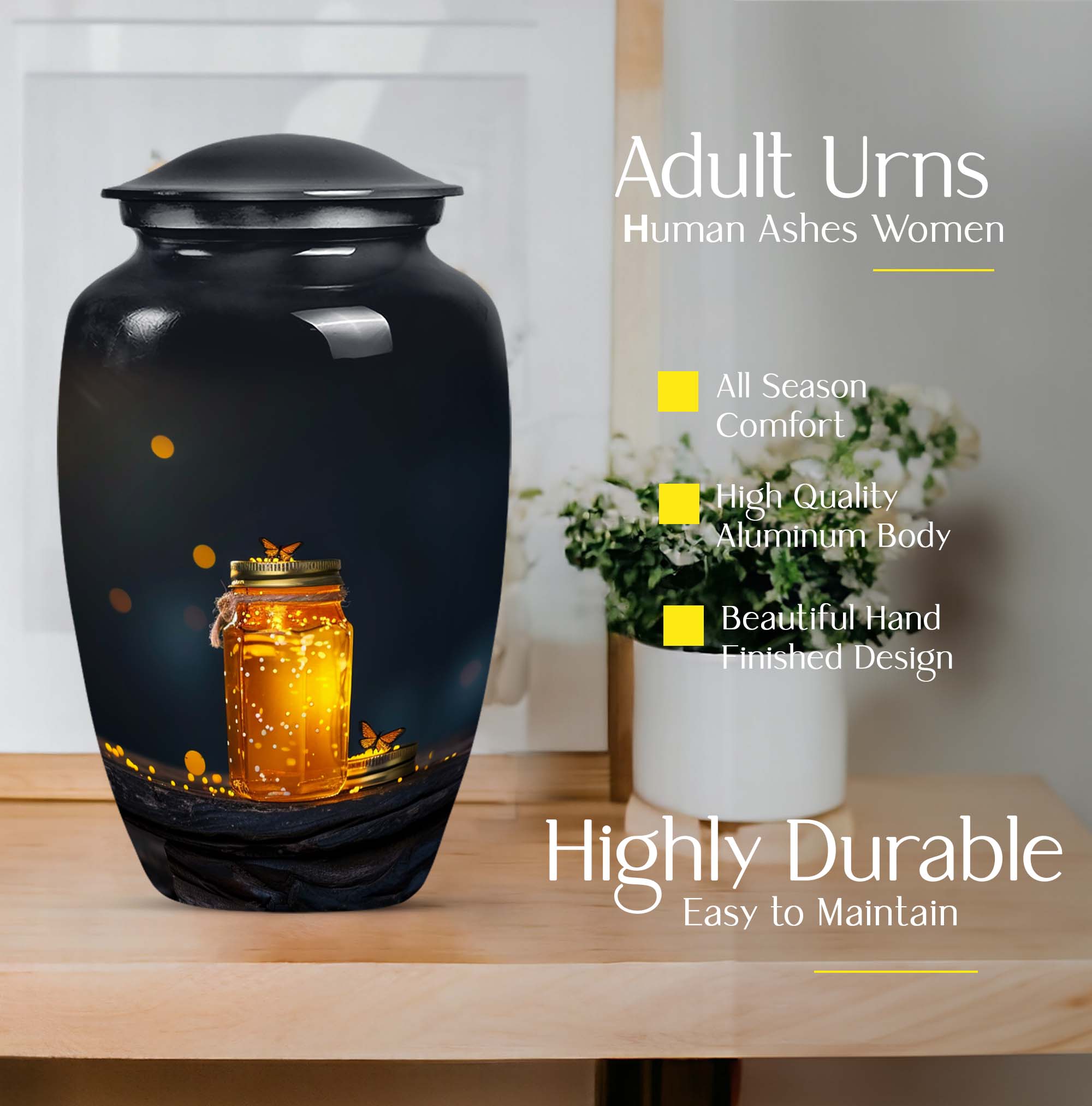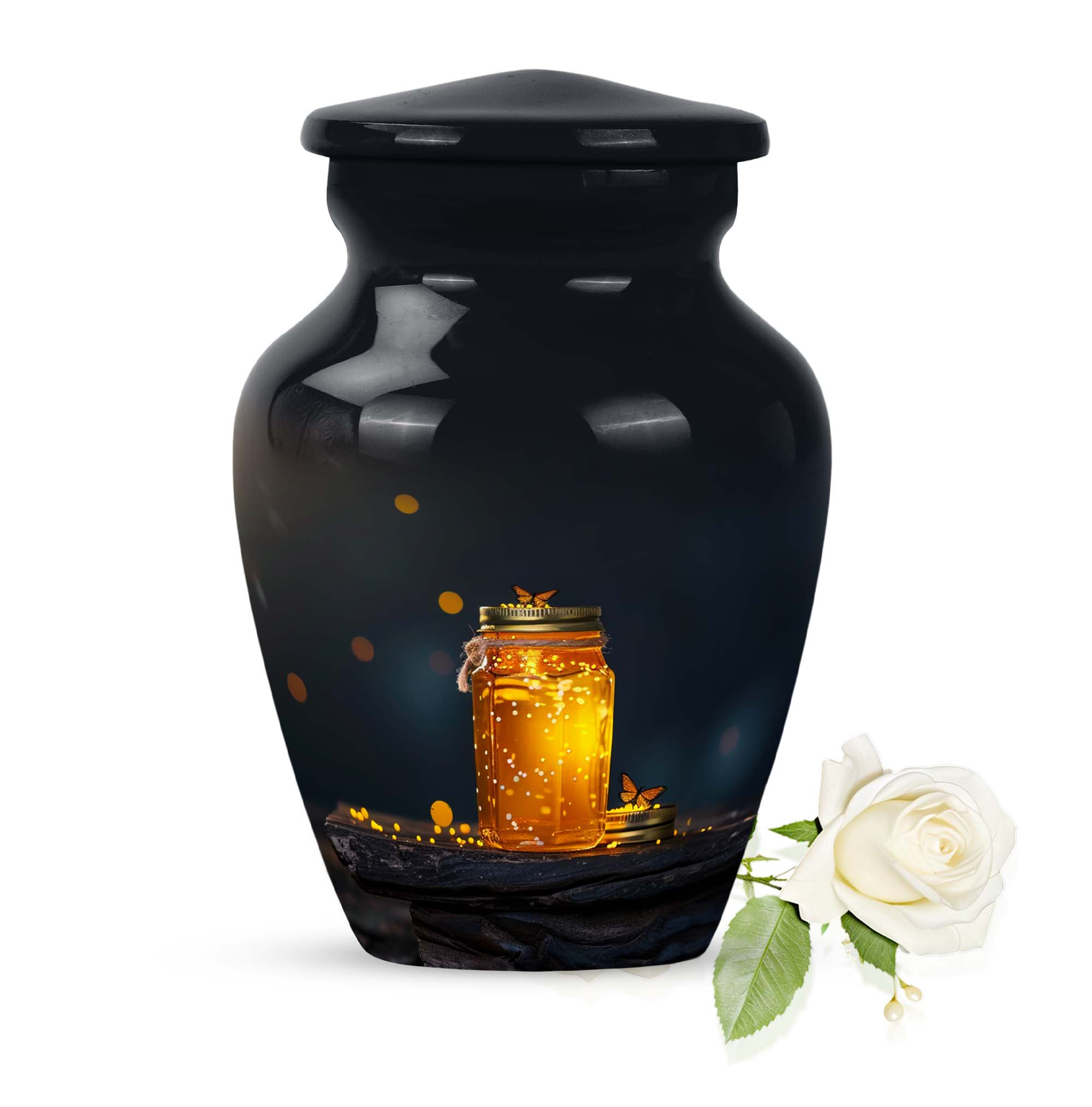 Experience the distinctive elegance of our 10-inch Honey Pot Urn, a fitting symbol of remembrance to honor your loved ones. Crafted from top-grade Aluminium, this large urn is a mix of durability and aesthetic appeal. With a capacity of 200 cubic inches, it comfortably holds the ashes of an adult human. A testament to its form and function, the abstract design evokes a sense of calming tranquility. The urn is a comfortable weight at 3.3 pounds, making it ideal for ceremonious occasions. Its size, a full 10 inches in height, is indicative of its capacity, ensuring a substantial memorial. The package includes a premium velvet pouch for containment and respectful preservation of contents. Allow the option for personalization, by engraving names onto the urn, adding an emotive, personal touch to this keepsake. Desirable for memorial ceremonies and cremations alike, our Honey Pot Urn meets the need for memorable adult urns meant for burial in the ground or to house human ashes safely.