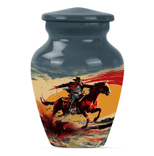 Our Cowboy cremation urns for human ashes are crafted to honor the rugged spirit, independence, and adventurous life of the American cowboy. Perfect for those who cherished wide open skies, dusty trails, and the values of courage and freedom, these urns make a fitting tribute to a loved one who lived with strength and authenticity.