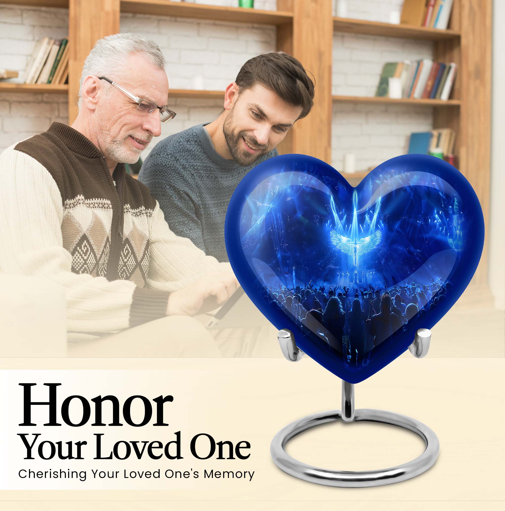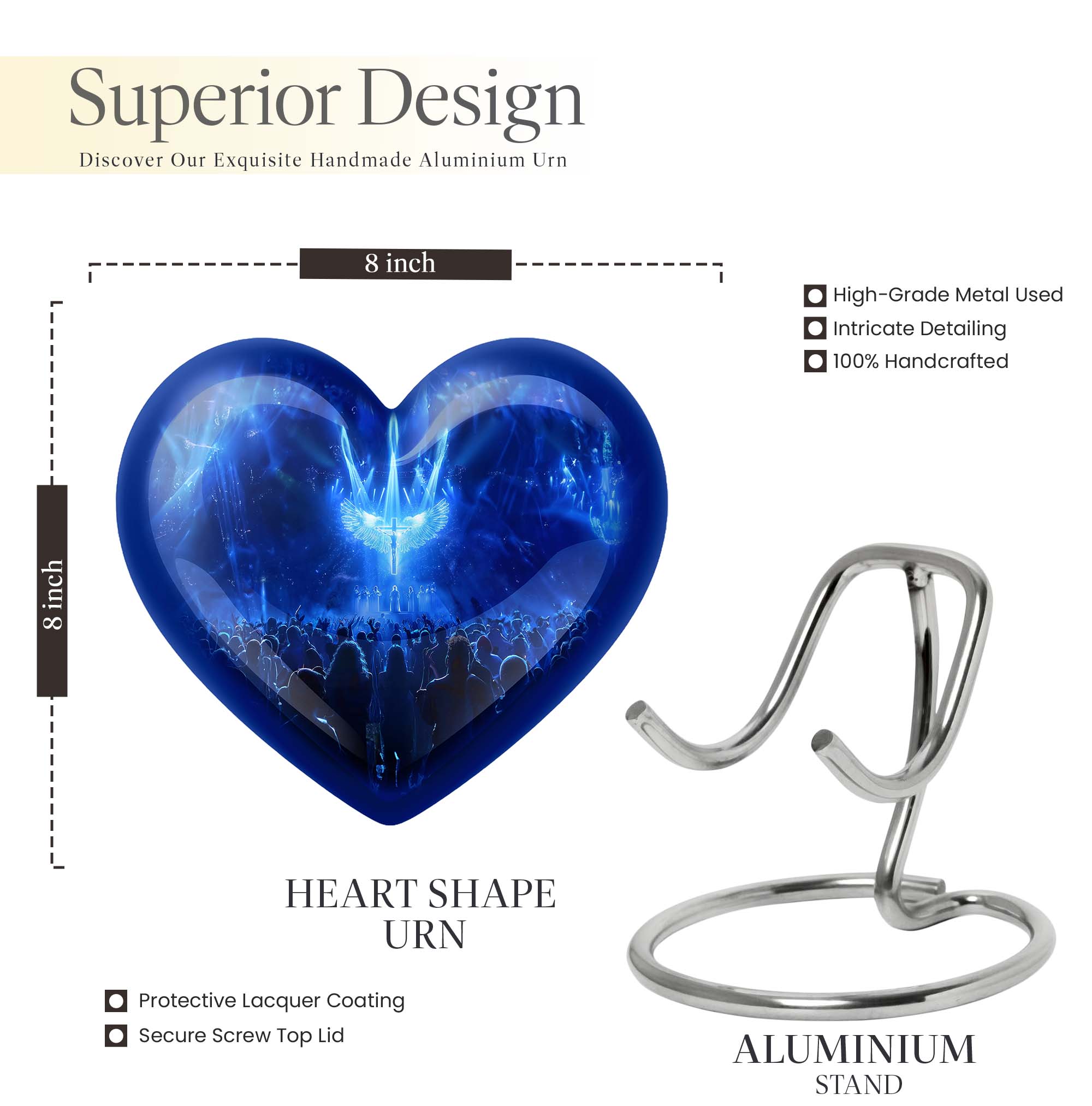 Discover our beautifully crafted 10-inch 'Cross Urn,' part of our extensive collection of burial medium size urns. Each one is a heartfelt work of art, forged with the aim of honoring the unique life of your loved one. The weight of this urn is 3.3 pounds, with each one comprised of high-quality, sturdy aluminium. As part of our offering, we have a 'Heart Urn' design with an enchanting 'Aurora Borealis' theme for an ethereal touch. The urn's dimensions provide a generous capacity of 200 cubic inches—ample space to hold ashes securely. We also include a plush velvet pouch to safeguard those precious remnants further. Moreover, you can make your selection truly unique with our customization option. Personalize your urn with engraved names, adding an intimate touch to your memorial. This urn is ideal for cremation rituals and it can also serve as a respectful metal urn for burial in the ground. Opt for our artistic urns—the perfect solution for commemorating your beloved ones, suitable for both women and men. Freshen up the memorial service with our large urns, the perfect tribute to signifying love and respect for a lifetime.