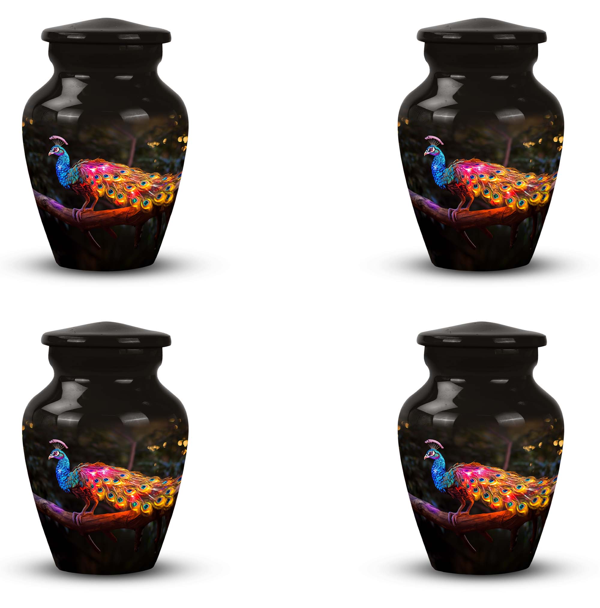 Elegantly crafted, our Peacock Urn is a thoughtful and dignified way to honor the memory of your loved ones. This comforting urn for ashes is made of high-quality aluminium, offering longevity and durability. The large size of the urn means it can hold up to 200 cubic inches, making it perfect for adults. Measuring 3 inches in size and weighing 3.3 pounds, the urn is easily manageable. Standing 10 inches in height, it's an eye-catching memorial urn that can fit into any space. Able to personalize with engraved names, this urn truly becomes a bespoke piece for remembering your cherished family member or friend. Packaged with a velvet pouch for containment of ashes, the level of thought and detail accounted for is unmatched. Ideal for various uses such as burial urns for adults, urn containers or can be a special urn for dad. The classic design and personalization feature make it one of the most searched custom cremation urns. Remember your loved ones in a way that is as unique as they were.