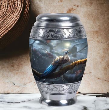 This large cremation urns for human ashes option is suited for home memorials, burial ceremonies, or as a lasting tribute displayed in a place of honor. Its striking peacock motif symbolizes renewal, hope, and eternal life—offering comfort during moments of remembrance.