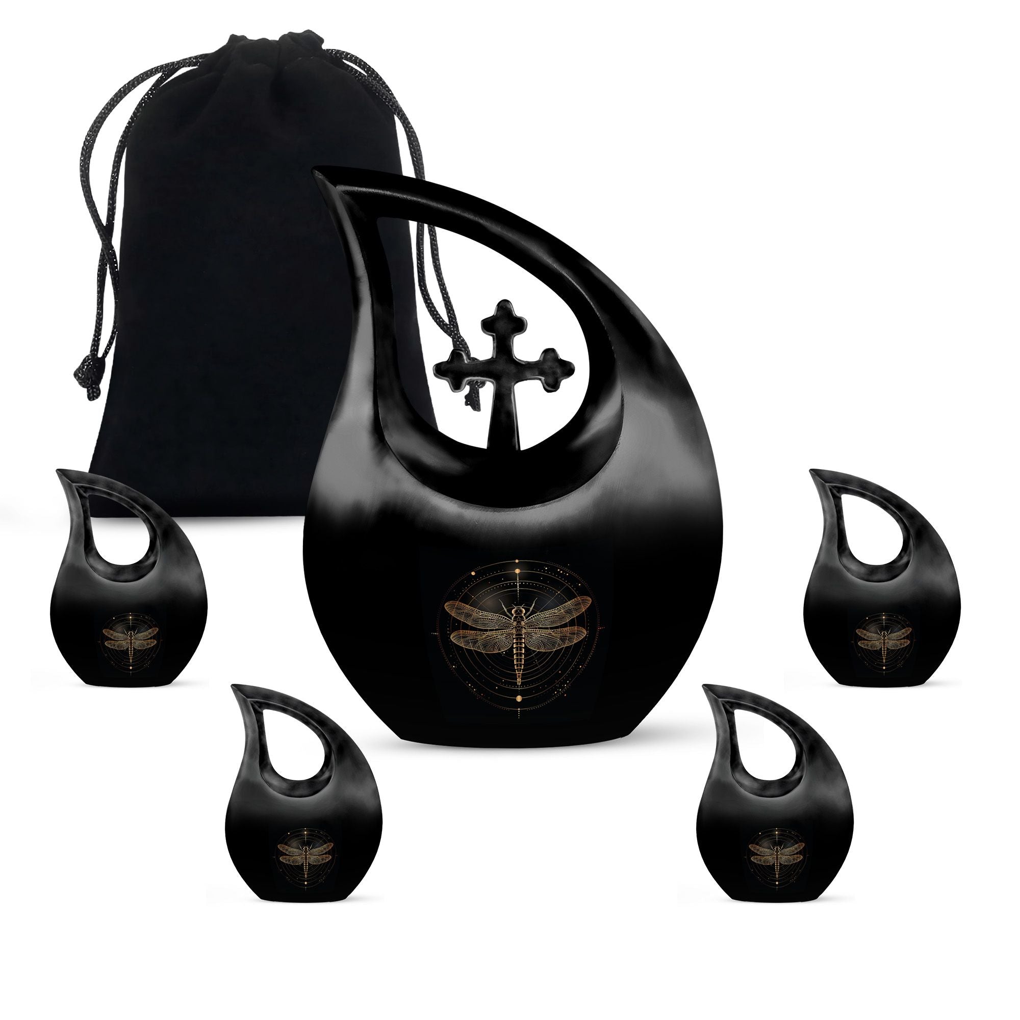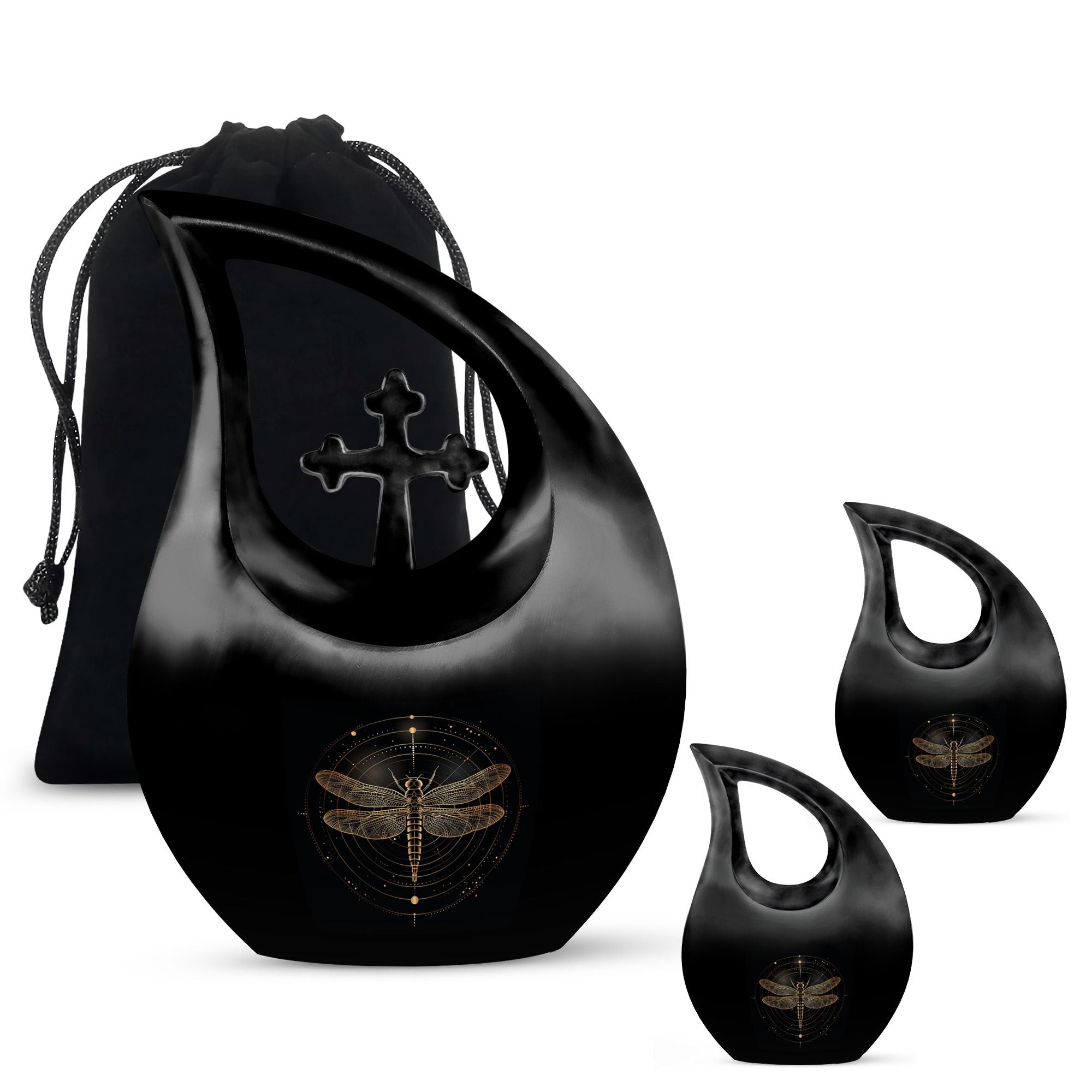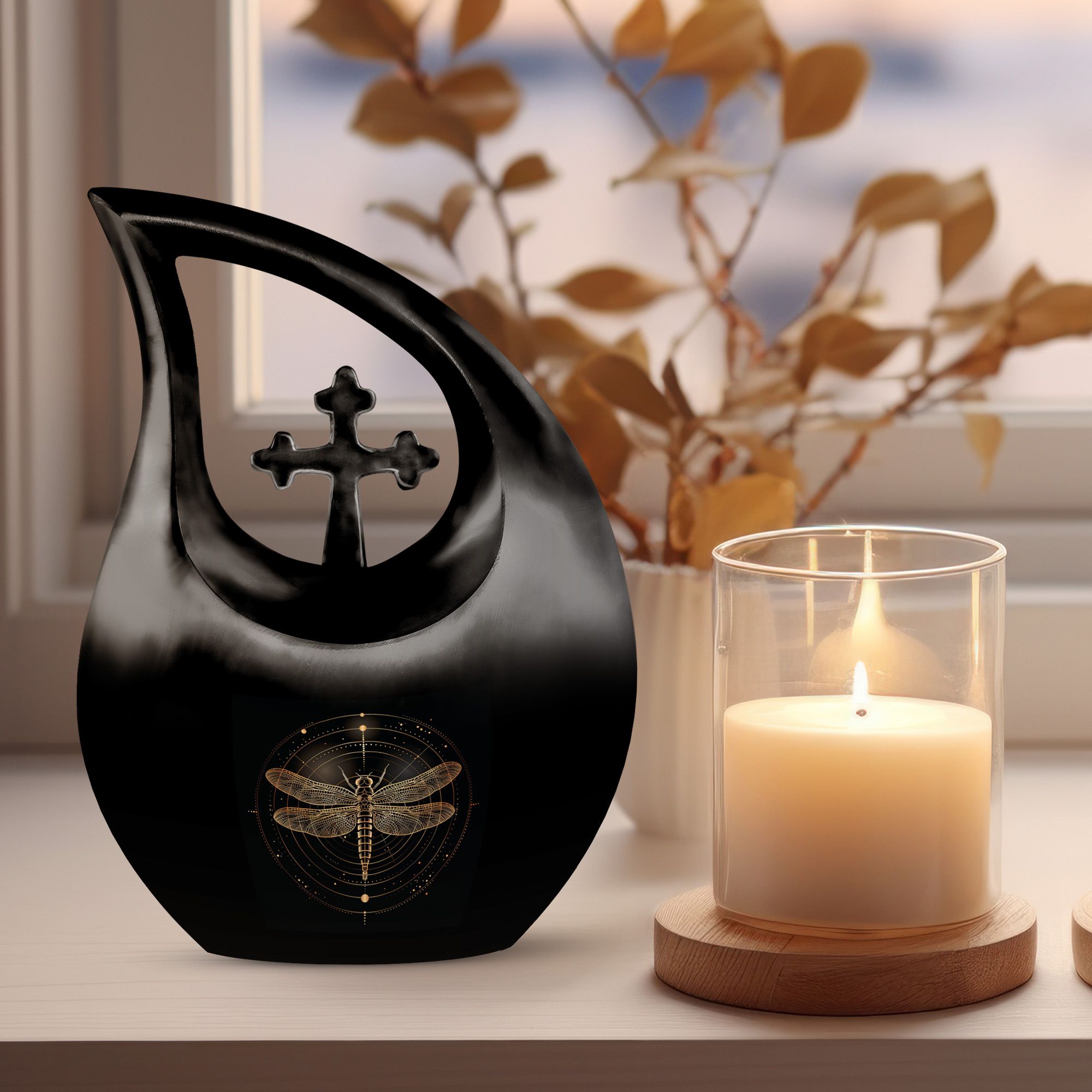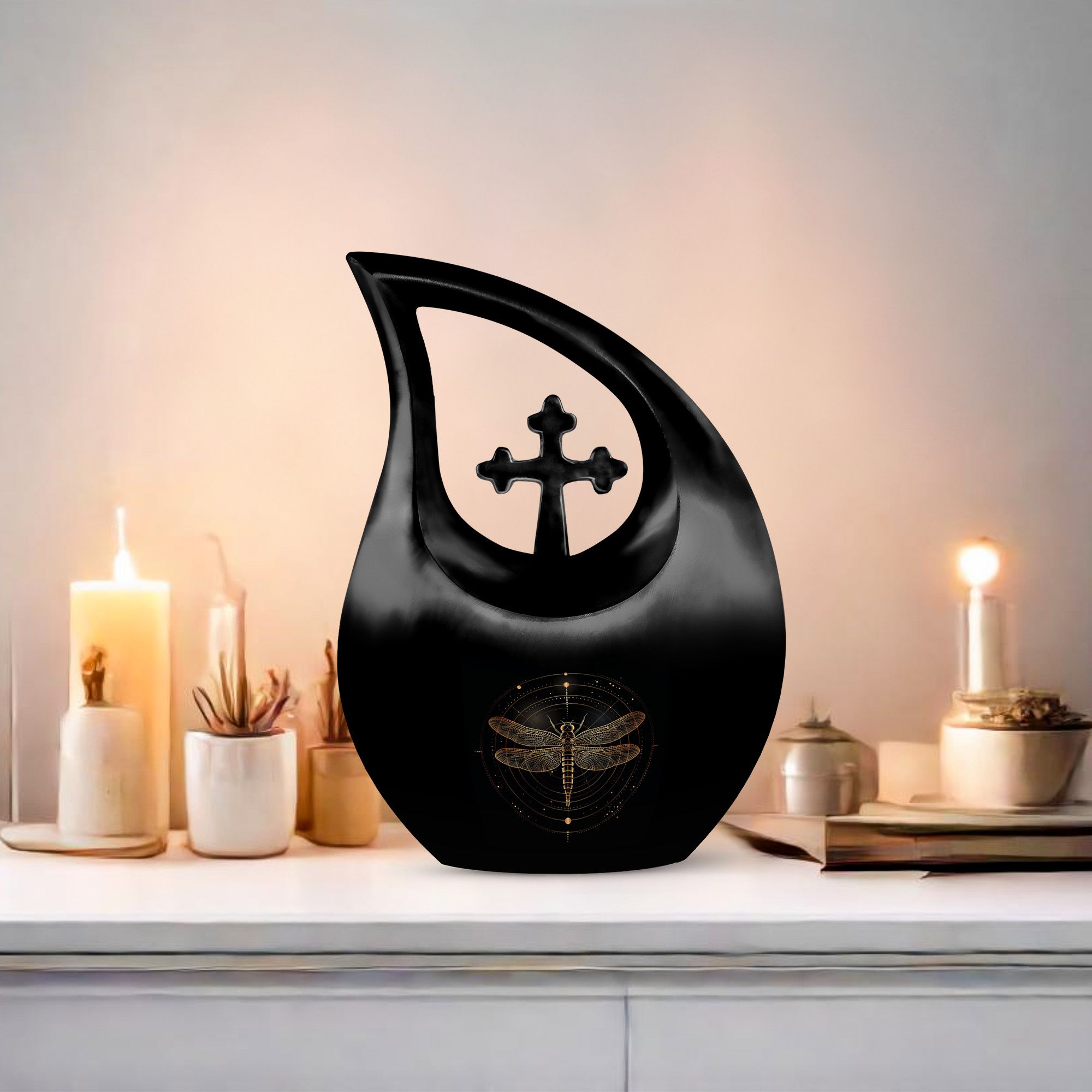 This Cosmic Dragonfly Urn offers a peaceful and meaningful way to honor a loved one’s memory. Designed in a graceful black drop shape, it is ideal for families seeking Cremation Urns For Burial In Ground or Cremation Urns For Human Ashes Adult Burial. The dragonfly motif symbolizes transformation, peace, and eternal connection.
