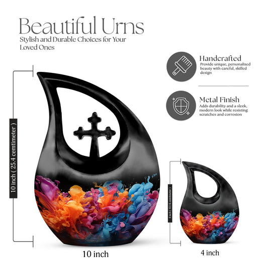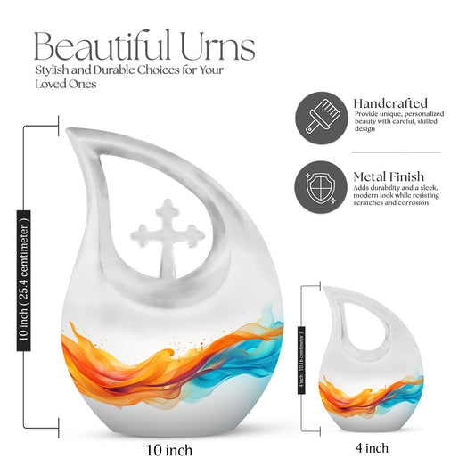 These aluminum teardrop cremation urns are not only lightweight and corrosion-resistant but also built to last for generations. The engraved cross—often in a Celtic or traditional design—adds a sacred and symbolic touch, ideal for honoring someone who lived with strong religious beliefs or cultural heritage.