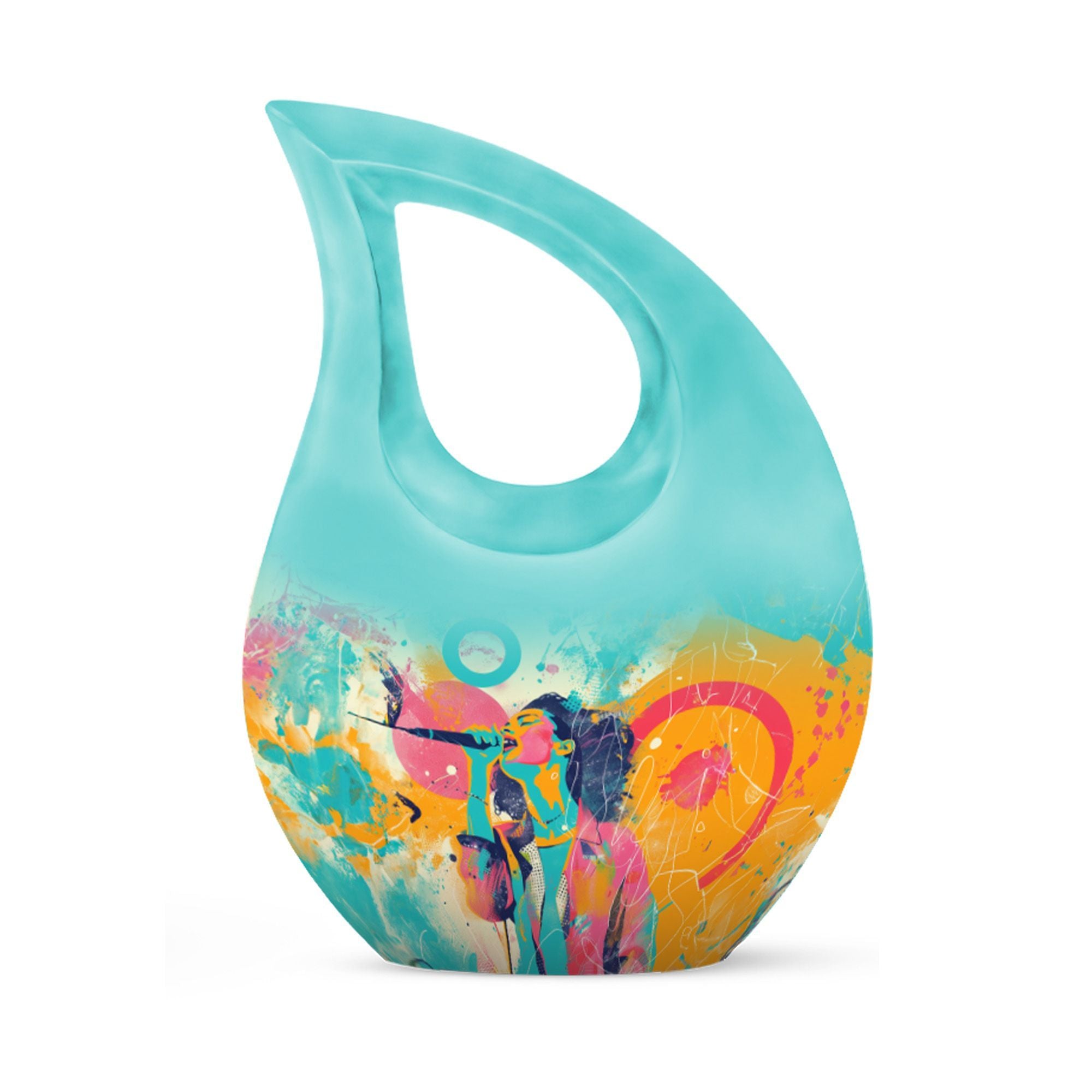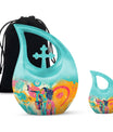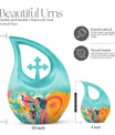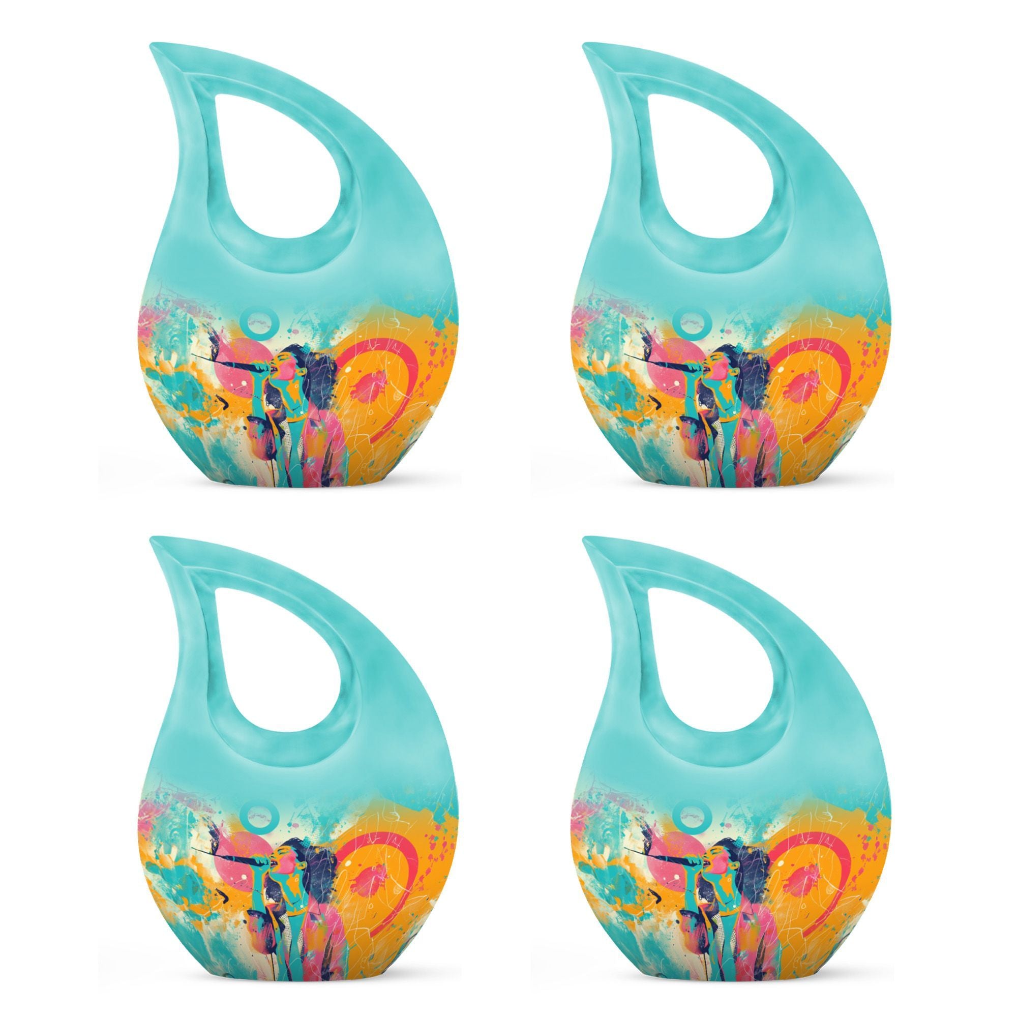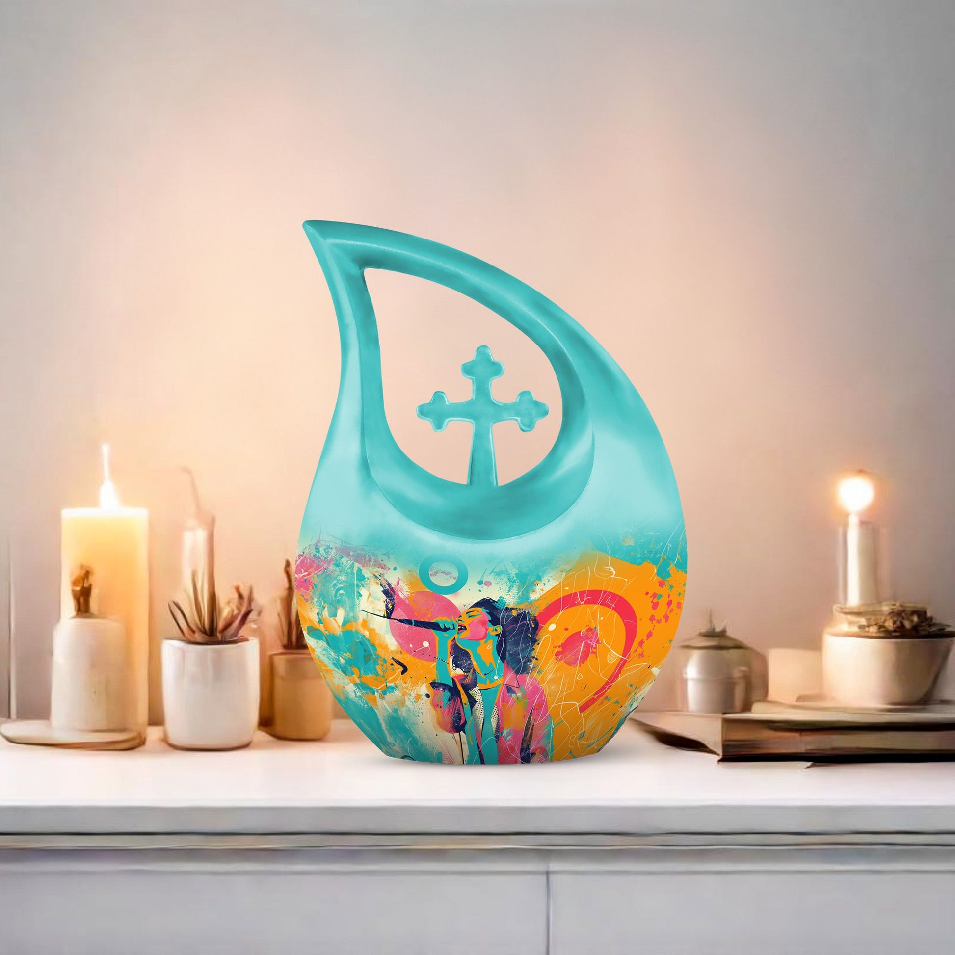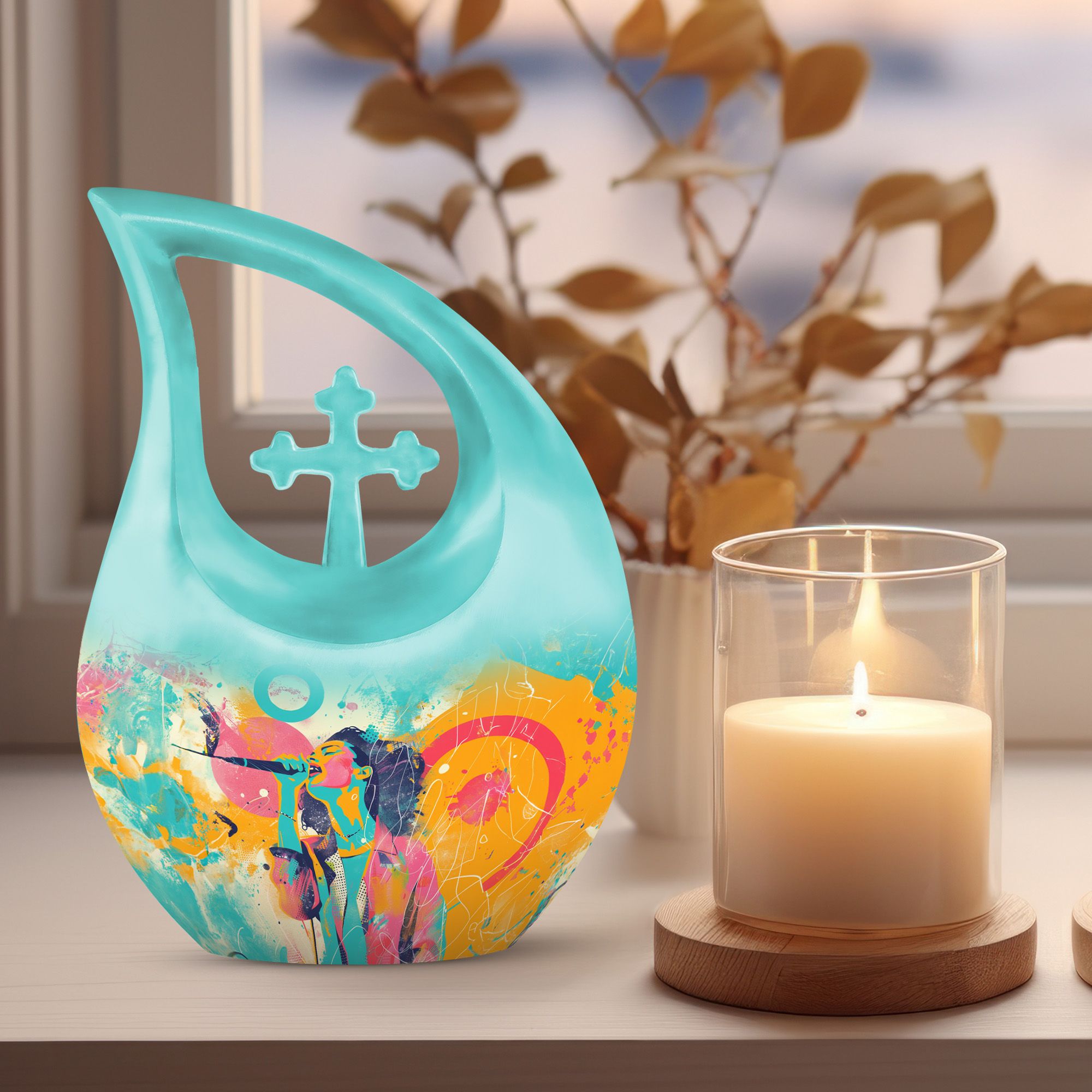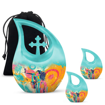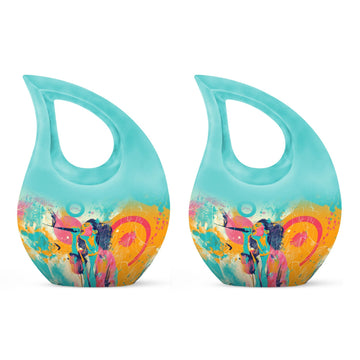 Our Abstract Sonic Colors Urn is a beautifully crafted large urn that brings a unique, modern appeal to memorialization. This top-rated custom cremation urn is sized at 10 inches, featuring an inspiring Cross-Drop theme that conveys hope, peace, and love. The urn is constructed from robust, high-quality aluminium ensuring it can steadfastly hold up to 200 cubic inches of precious ashes. Weighing 3.3 pounds and standing 10 inches in height, it offers substantial capacity suitable for ashes of 2 adults. To make it even more special, we offer personalized engraving for you to inscribe beloved names, crafting a truly one-of-a-kind memorial. The urn comes complete with a soft velvet pouch for secure containment of ashes. Using the keywords 'Abstract Sonic Colors Urn', 'Custom Engraved Urns', or 'Ashes Holder' will help you instantly locate this popular piece. Enhance your memorial ceremony with this unique, resonant urn that impeccably pays tribute to your loved ones.