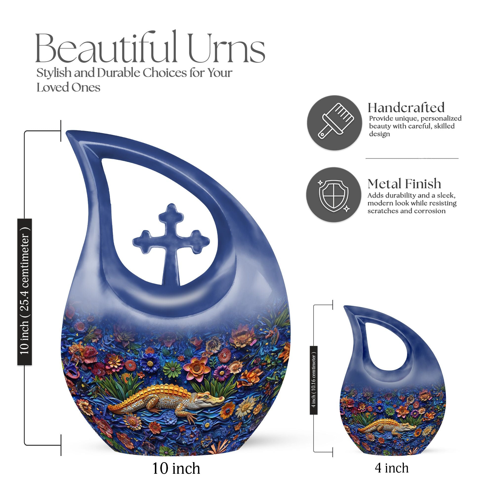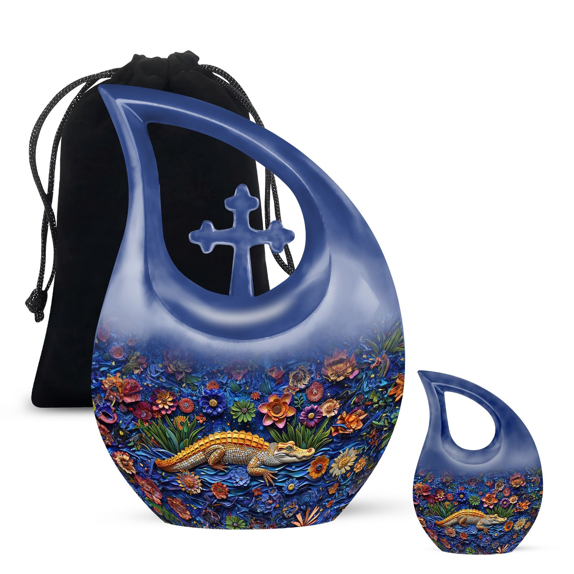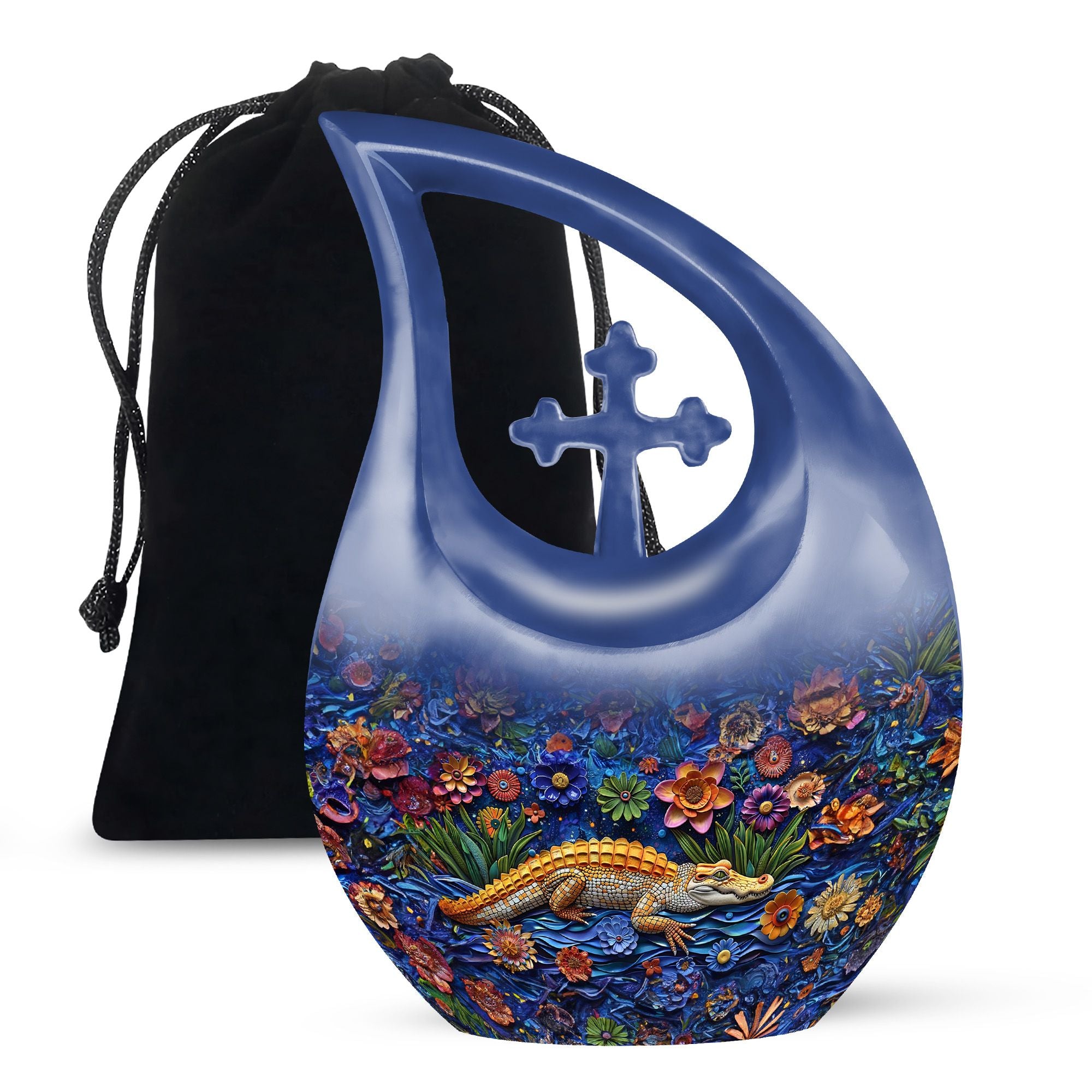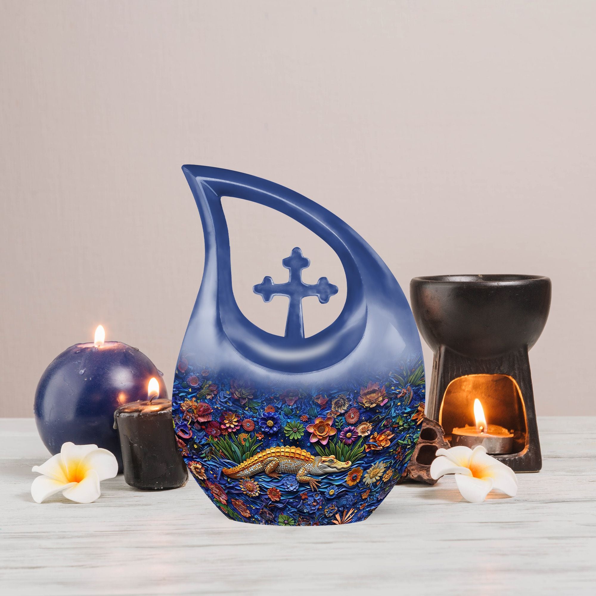The Alligator Memorial Urn is a striking symbol of resilience and dignity, designed to honor those who lived with courage and confidence. This captivating cremation urn for human ashes offers families a timeless way to celebrate a loved one’s strength, making it ideal for both home display and memorial burial. Its rich blue color and alligator motif represent determination, power, and everlasting love.