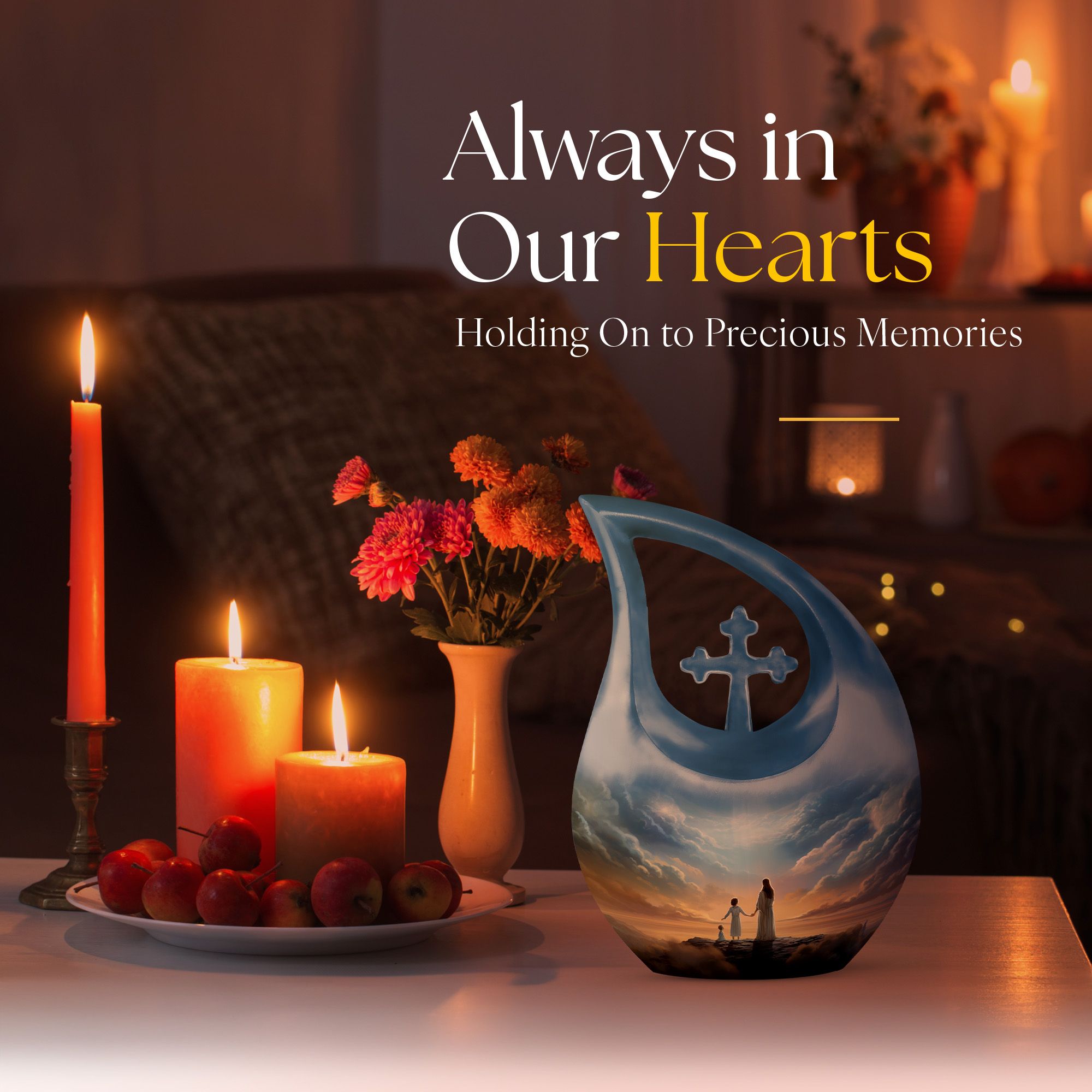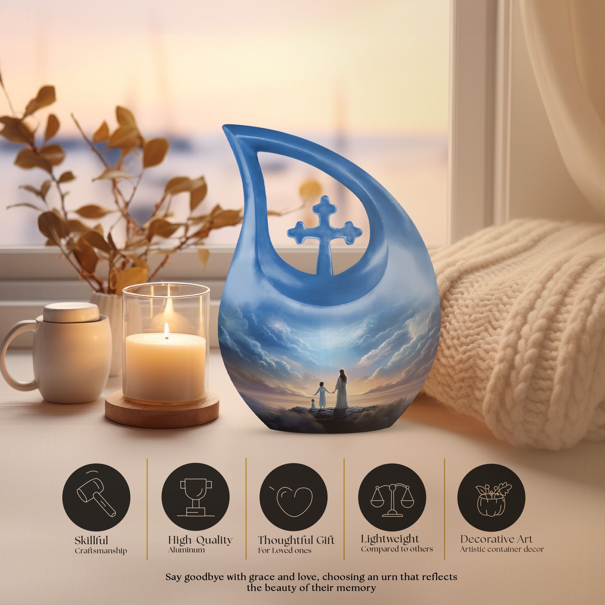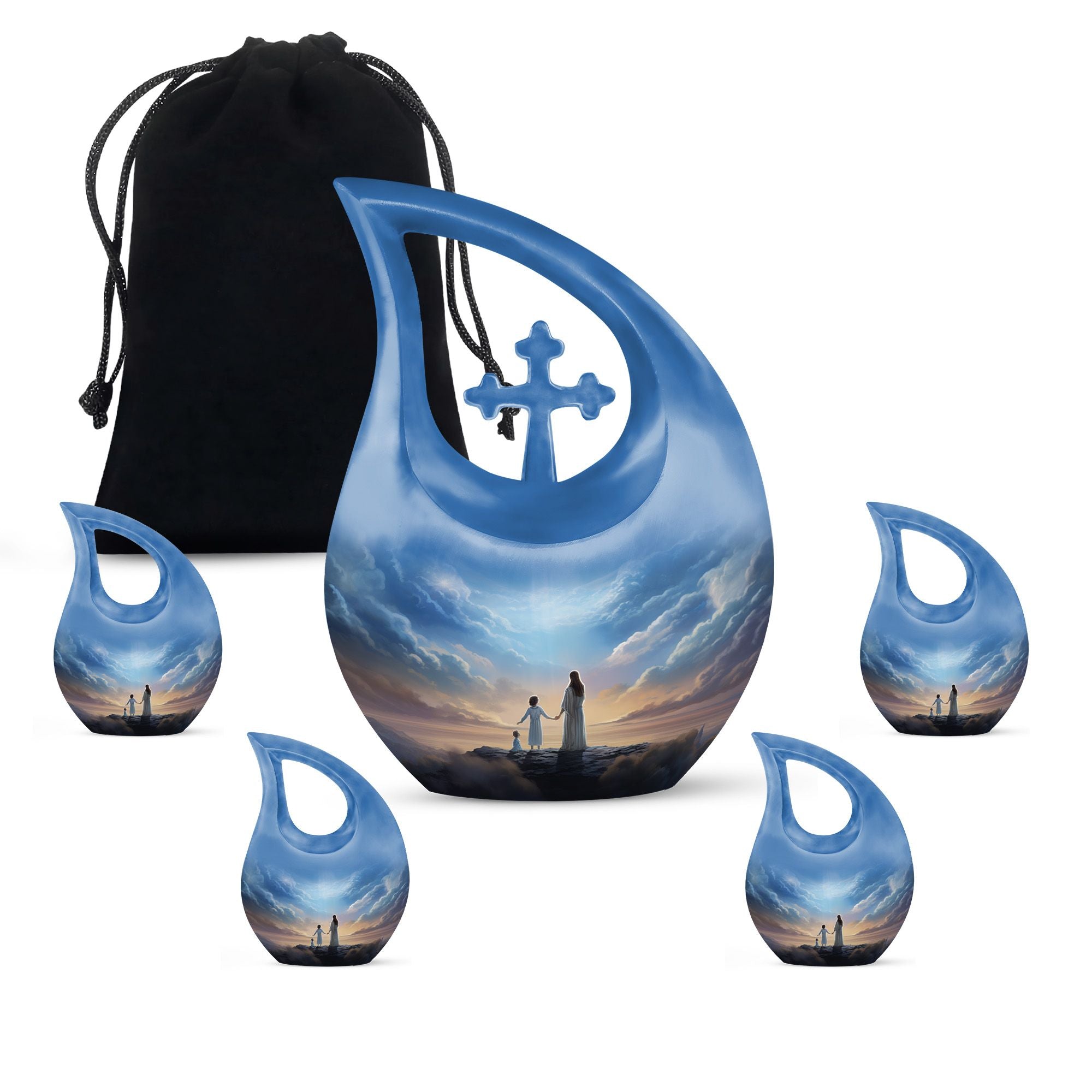 The Angels Memorial Urn for Funeral – Blue Sky Funeral Urn for Loved Ones offers a peaceful and uplifting tribute inspired by gentle clouds and heavenly guidance. Its comforting design brings serenity to families seeking a meaningful memorial, especially when paired with mini keepsake urns for human ashes to share precious memories among loved ones.