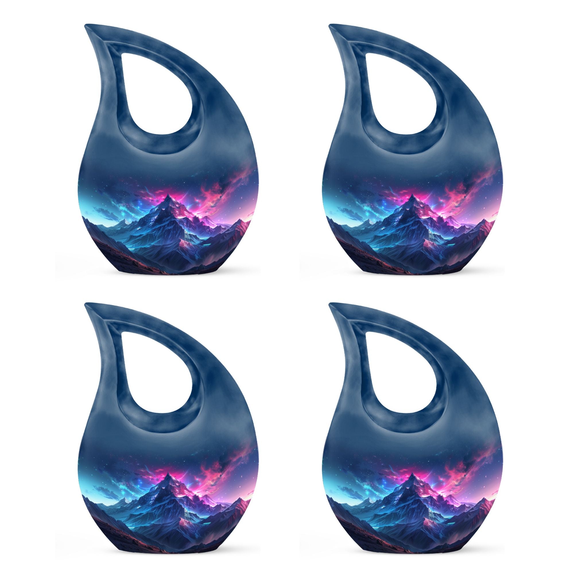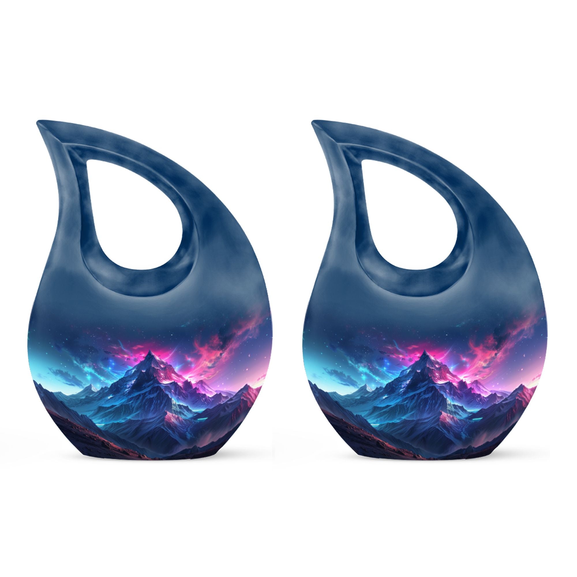 Honor the memory of your loved one with our exclusive Arora Borealis Urn. This large cremation urn, crafted from durable aluminium, radiates a sense of tranquility and peace with its enchanting Cross Drop motif. Standing at a sizeable 10 inches, it has a substantial weight of 3.3 pounds, and can safely contain up to 200 cubic inches of ashes. It is ideally encapsulated in a rich velvet pouch, ensuring proper containment and protection of the ashes. A thoughtfully personalized touch is also available, letting you engrave names on the urn to cherish the eternal bond with the departed soul. This finely crafted urn, fitting the medium urn as well as large urn criteria, is an affordable and loving option for safeguarding ashes. It's not just a cremation box, but a vessel carrying love, memories, and a lifetime of stories. Explore our collection of memorial urns and find the perfect final resting place for your loved one.