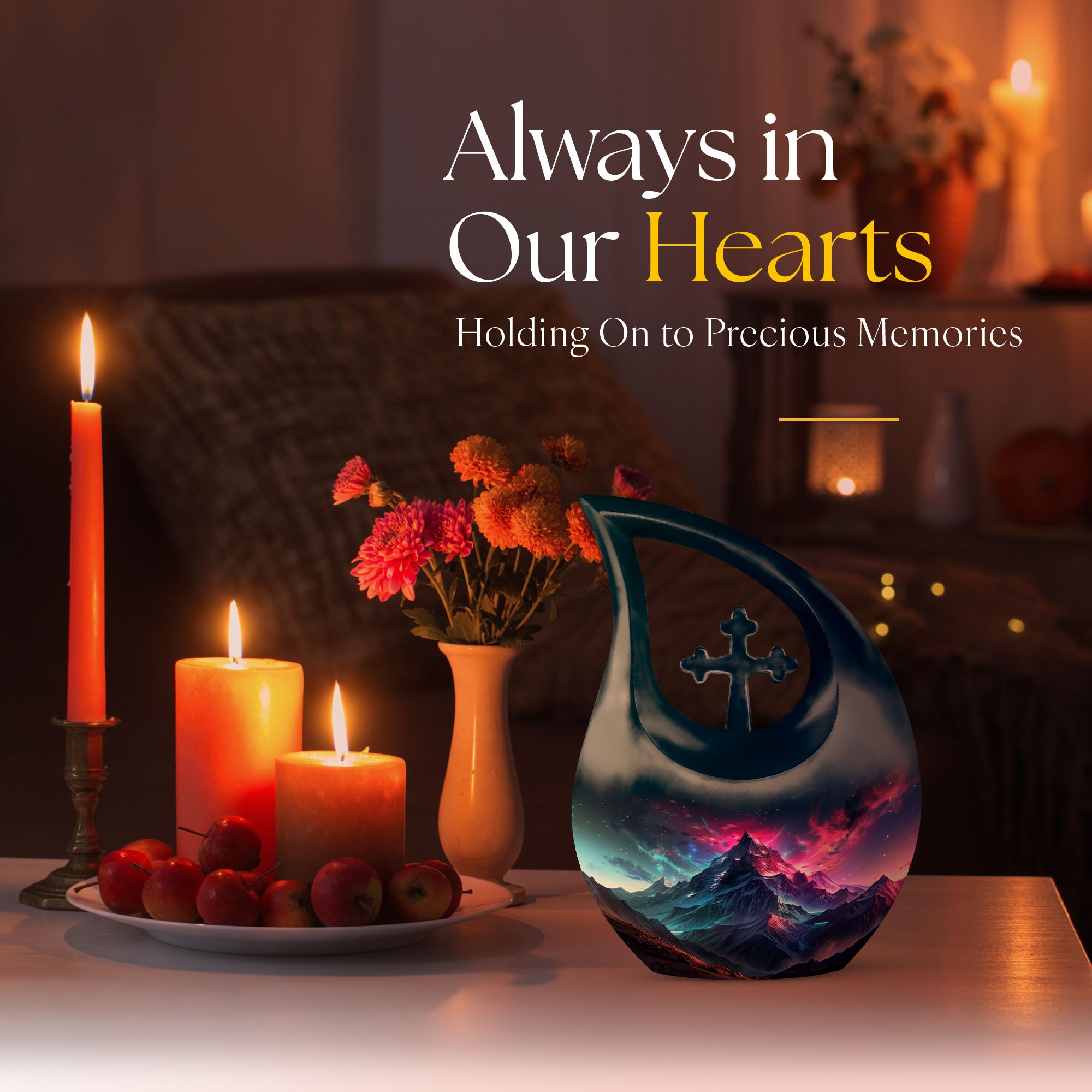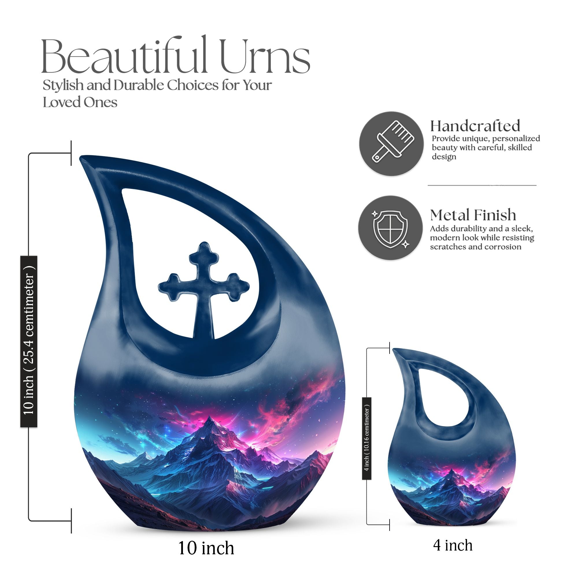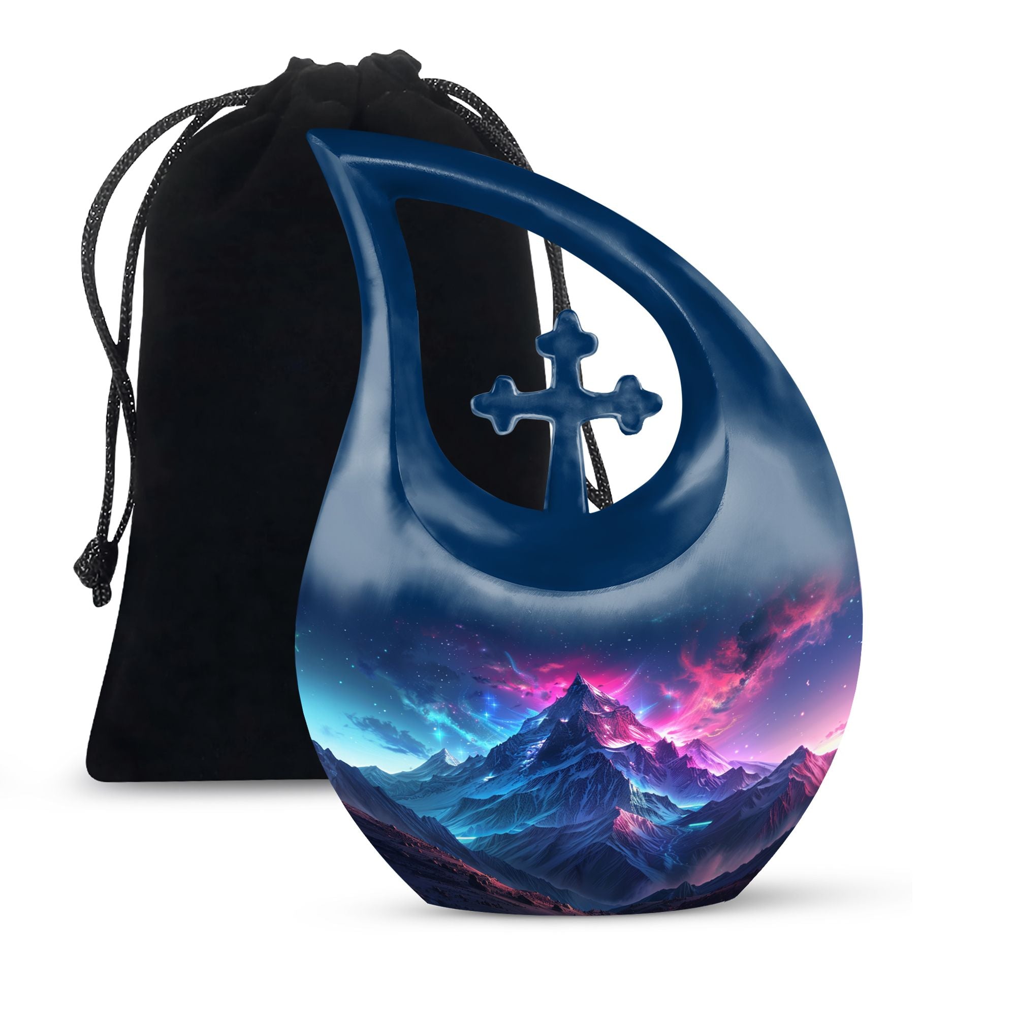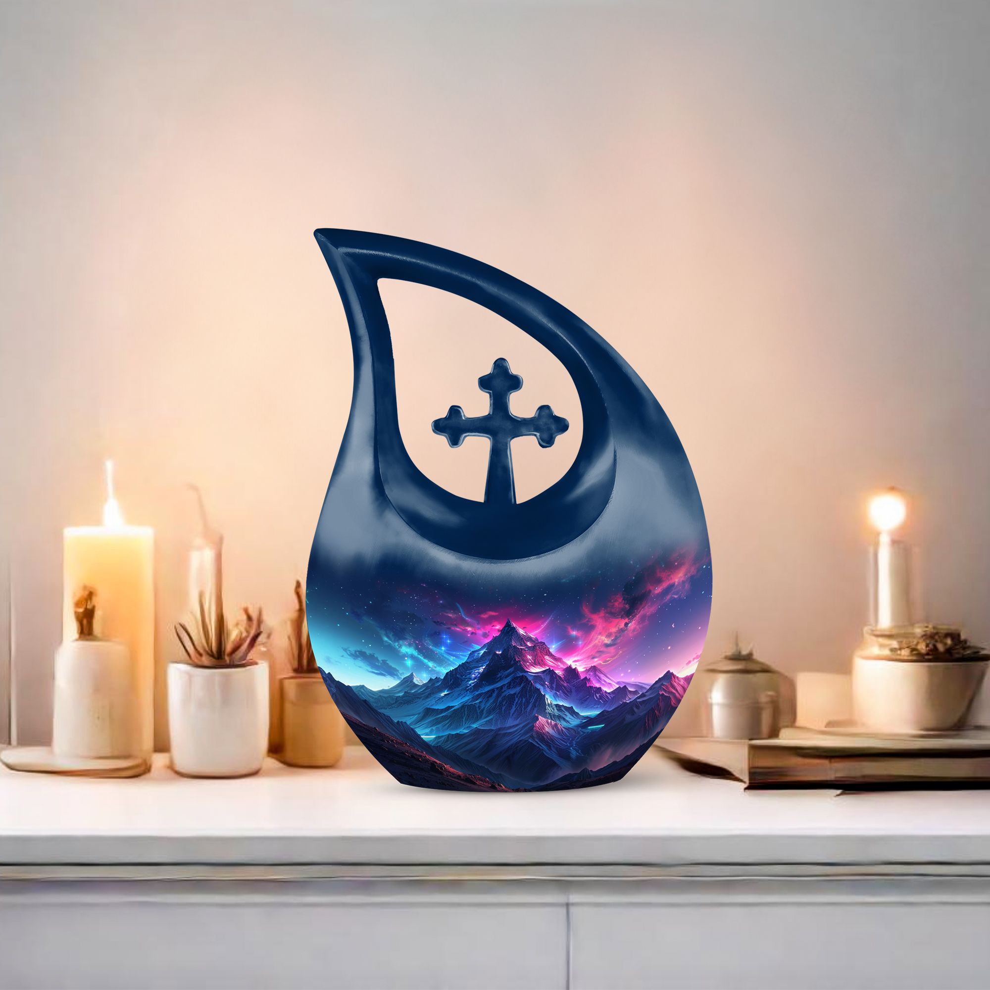 Aurora Borealis Cross Drop Large Cremation Urn - An Affordable Urn