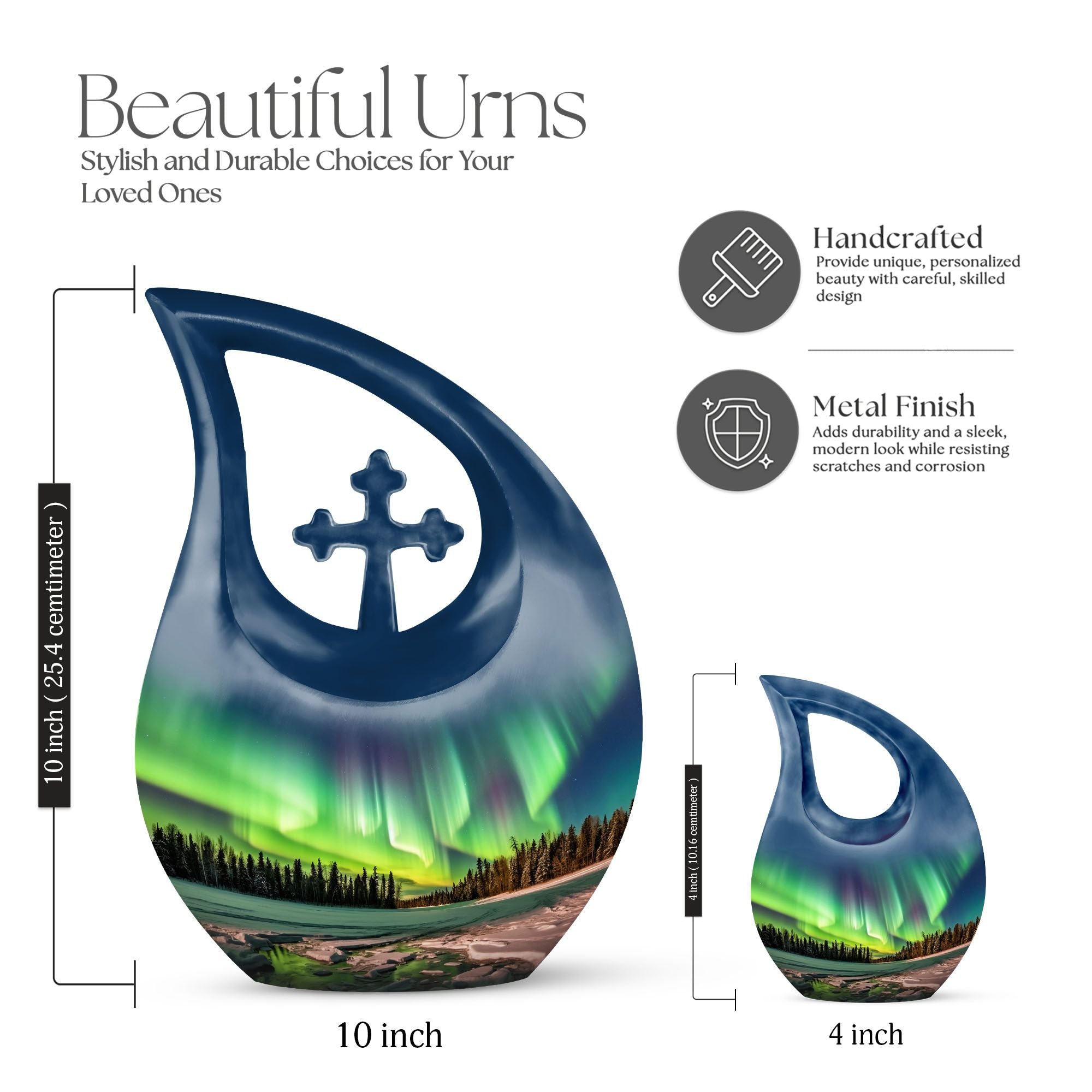 The Aurora Borealis Memorial Urn captures the breathtaking beauty of the Northern Lights, symbolizing eternal peace and the continuation of love beyond life. This exquisite piece is thoughtfully designed to help families cherish and celebrate their loved one’s memory. Perfect for those seeking urns for human ashes adult large, it serves as both a beautiful keepsake and a comforting reminder of everlasting light.