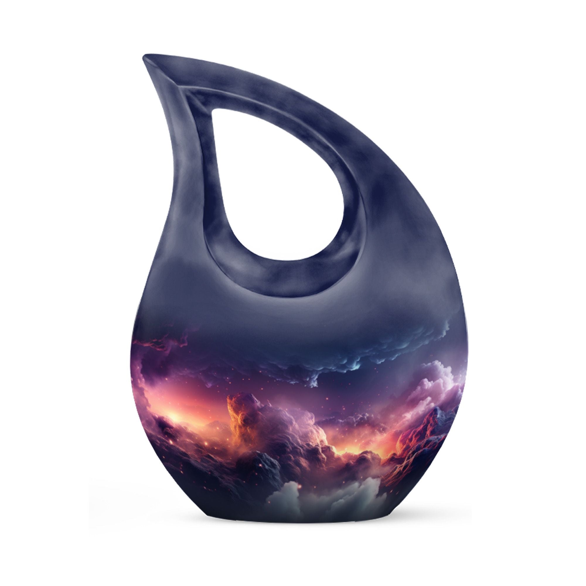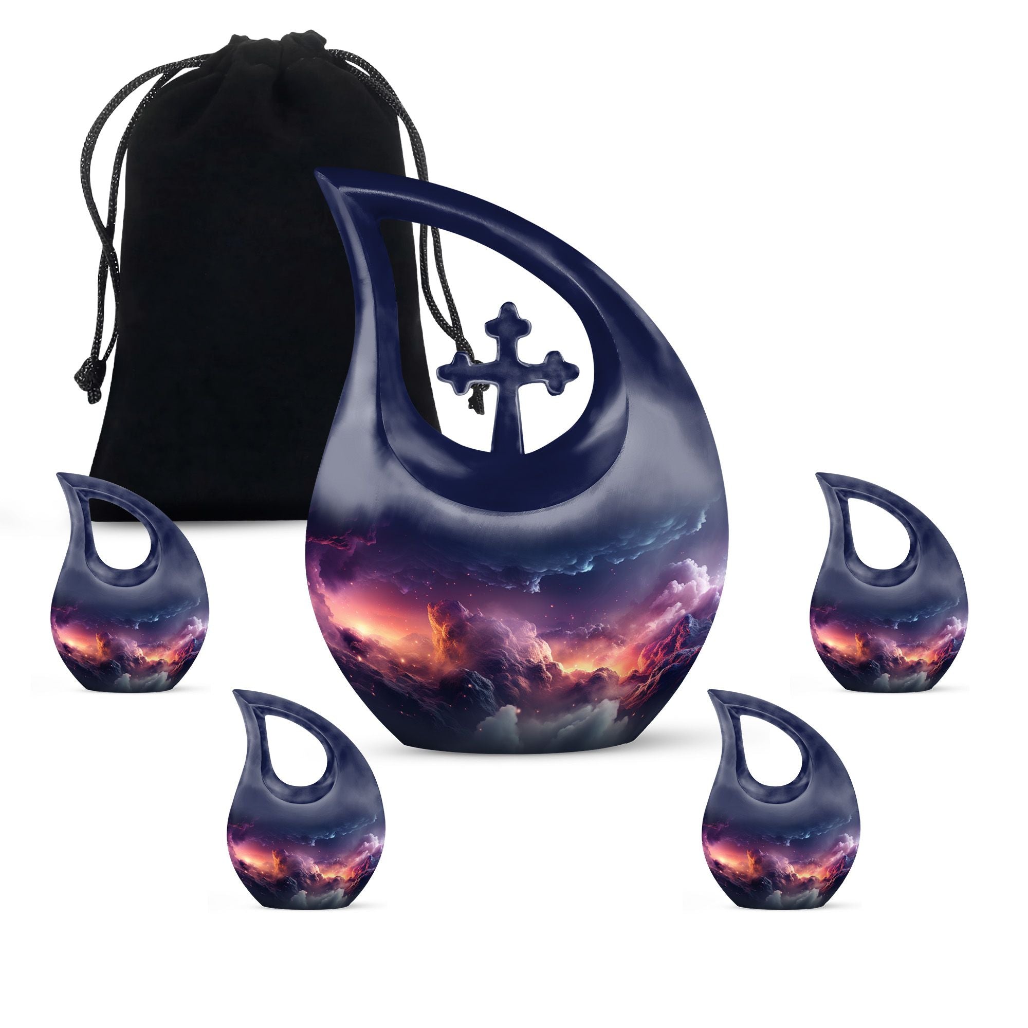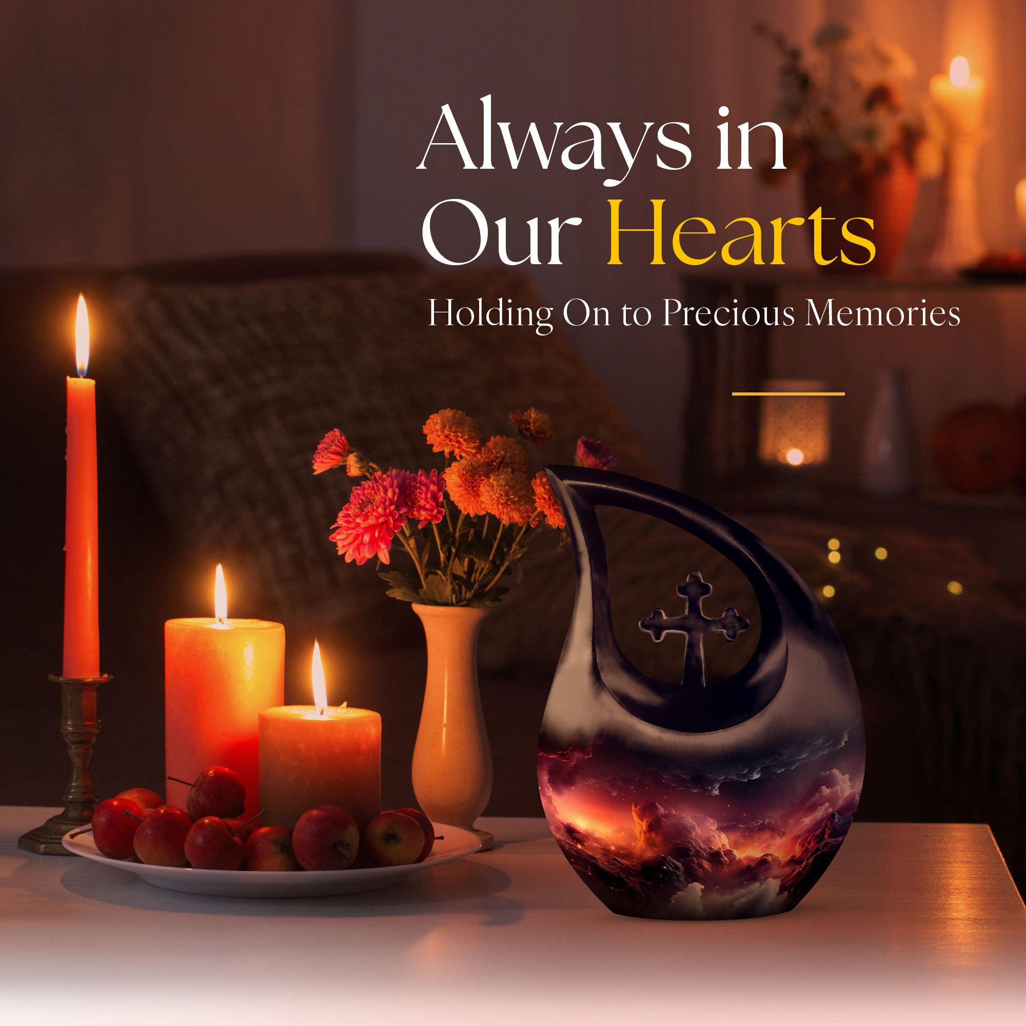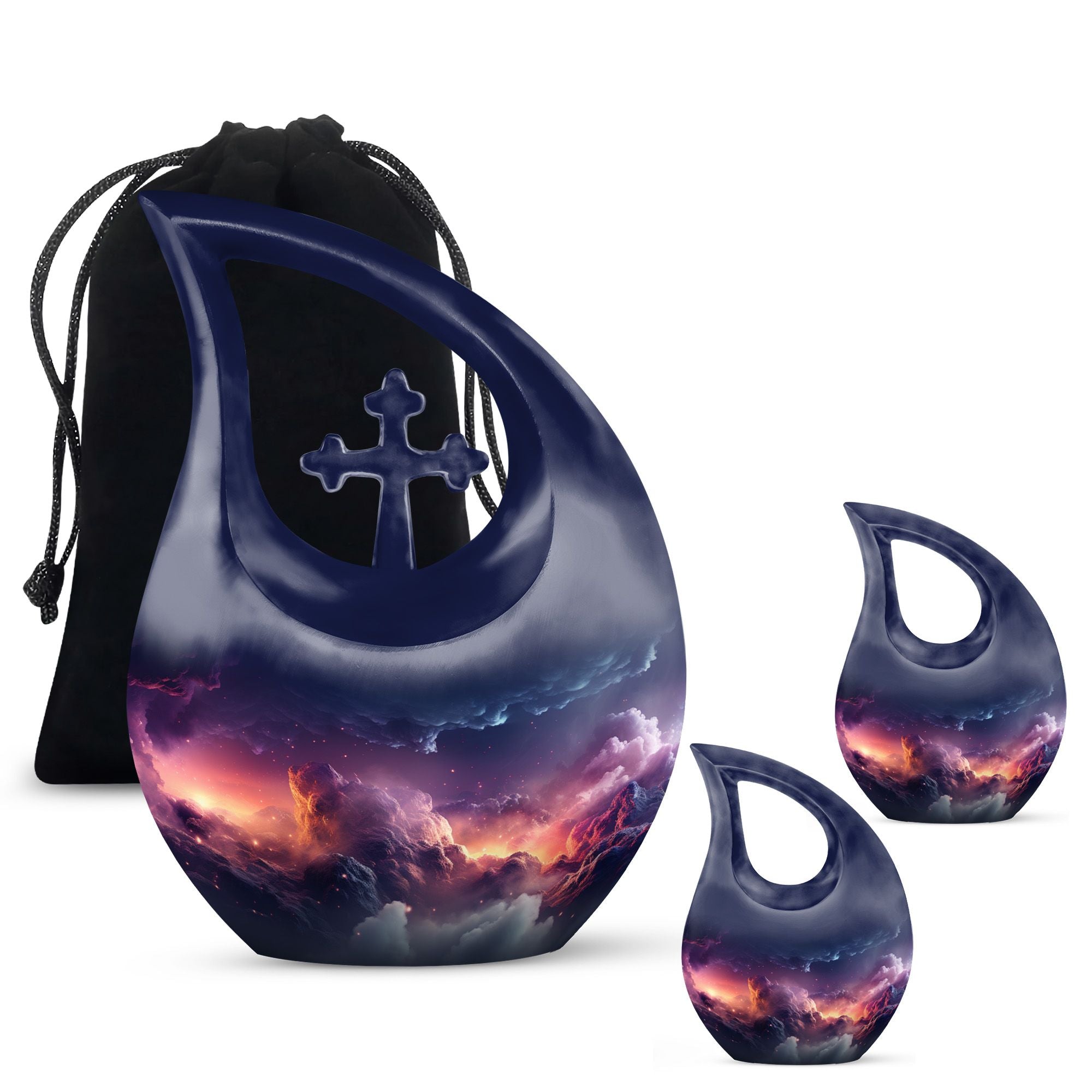 Cherish and commemorate your loved ones with the 'Aurora Urn'. Known for its 'Cross Drop' design, these tasteful keepsake cremation urns are a blend of high-quality craftsmanship and enduring elegance. Sized at 10 Inches with a weight of 3.3 pounds, the urn is built substantial and strong. The capacity of these large urns is 200 cubic inches, making it suitable to hold a considerable amount of ashes with dignity. The aluminium material enhances durability while balancing a solemn beauty. Your purchase also includes a velvet pouch, ensuring careful containment of the ashes. Personalize these cremation urns for human ashes through an engraving option, lending a personal touch to celebrate the unique life of your loved one. So, while looking for memorial urns, your search ends here with our 'Aurora Urn'. Ideal for those wanting cremation boxes or custom urns that stand out, settling on these expensive urns ensures ultimate satisfaction.