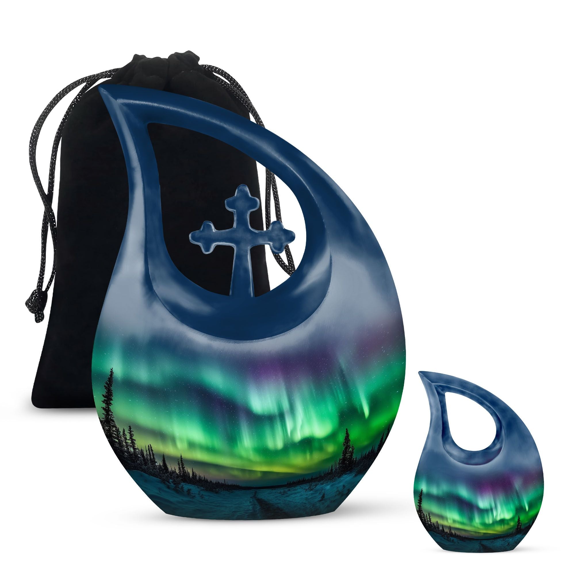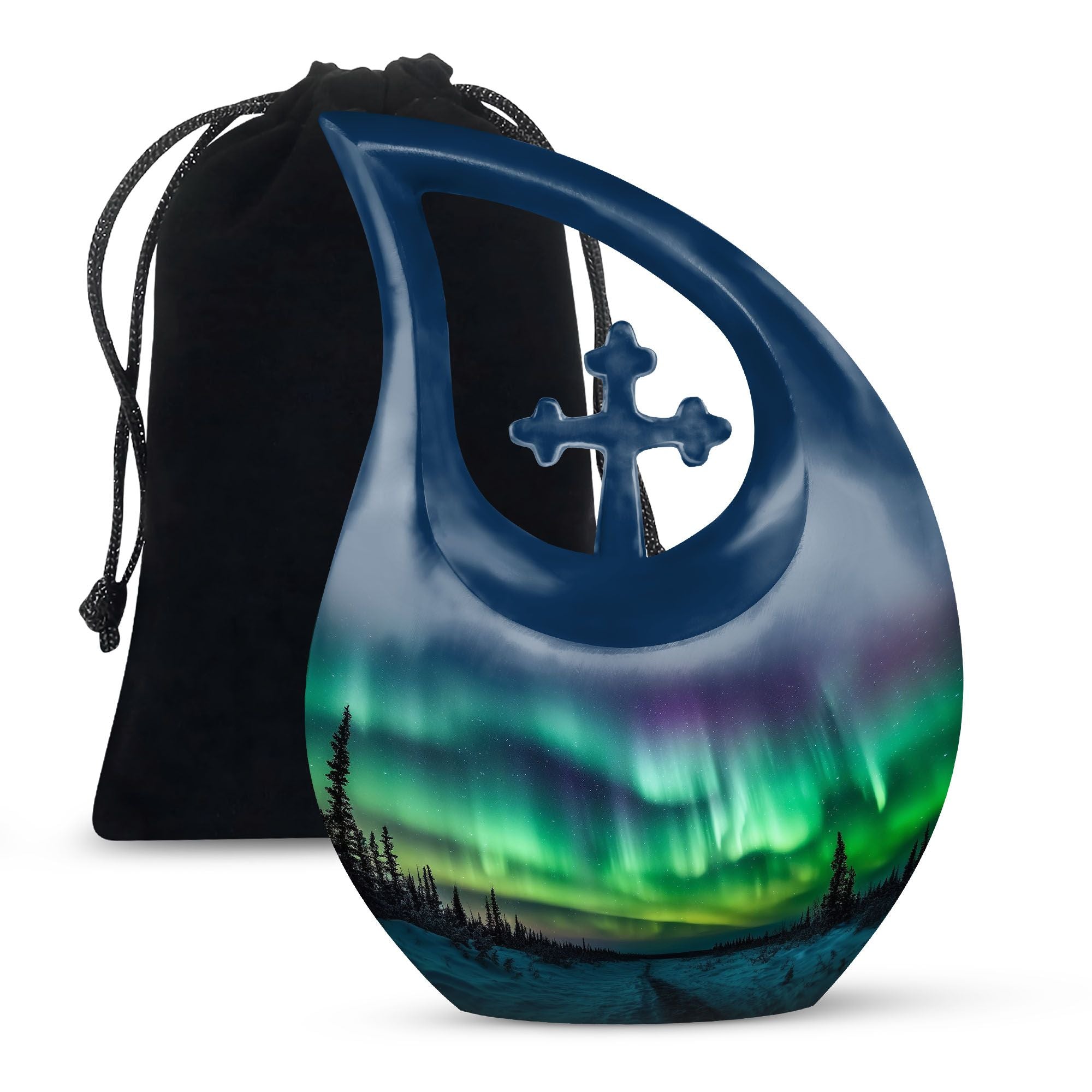 Aurora Borealis Urn For Human Ashes - Northern Lights Memorial Tribute Urn
