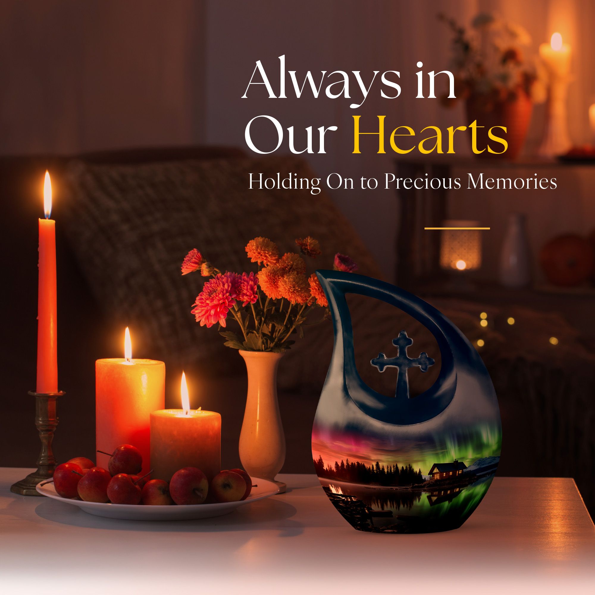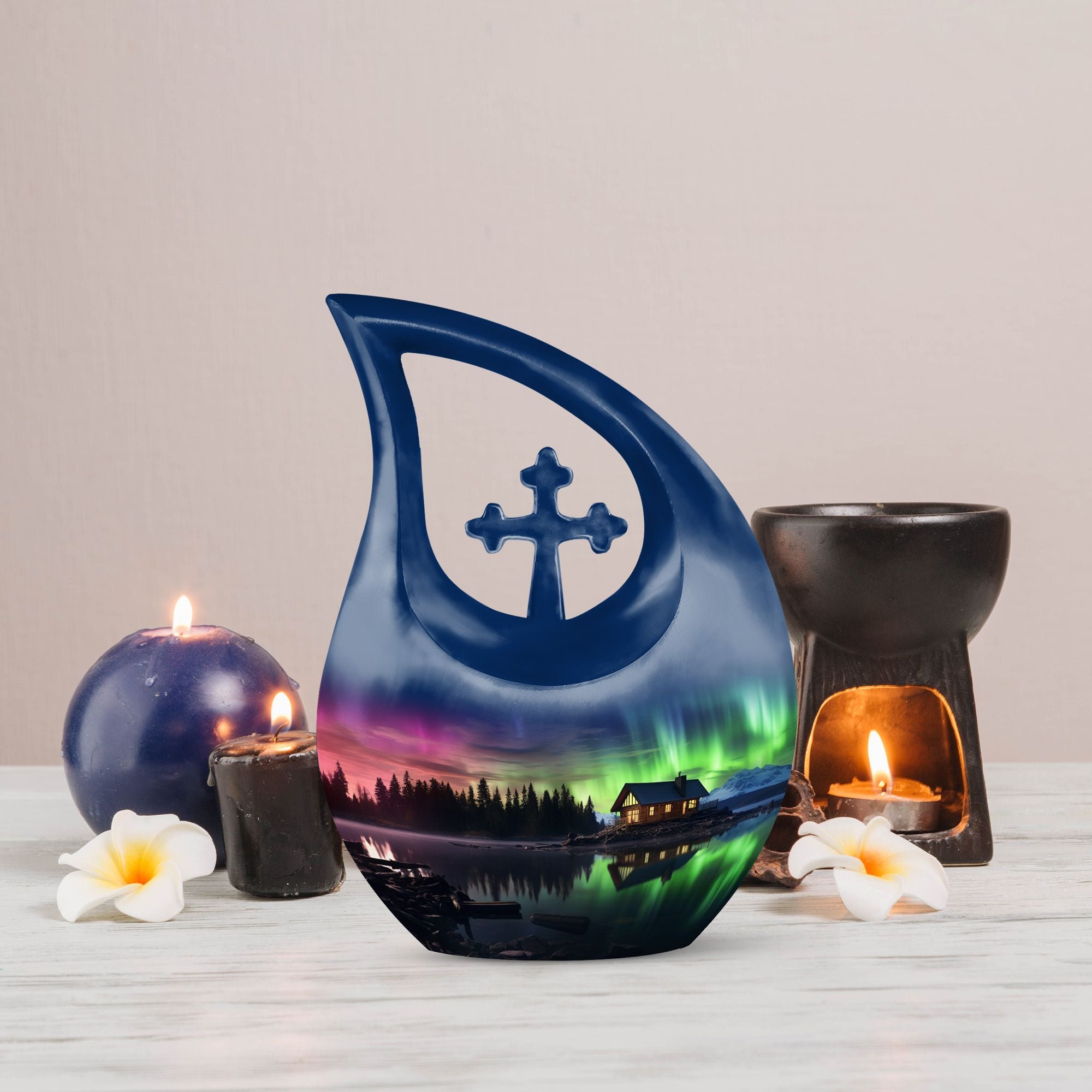 Honor a cherished life with this Aurora Borealis Urn for Men & Women, a radiant tribute inspired by the natural beauty of northern skies. Designed with compassion and dignity, it serves as a meaningful choice for families seeking funeral cremation urns for ashes, funeral urns for human ashes, or funeral urns for adult ashes women.