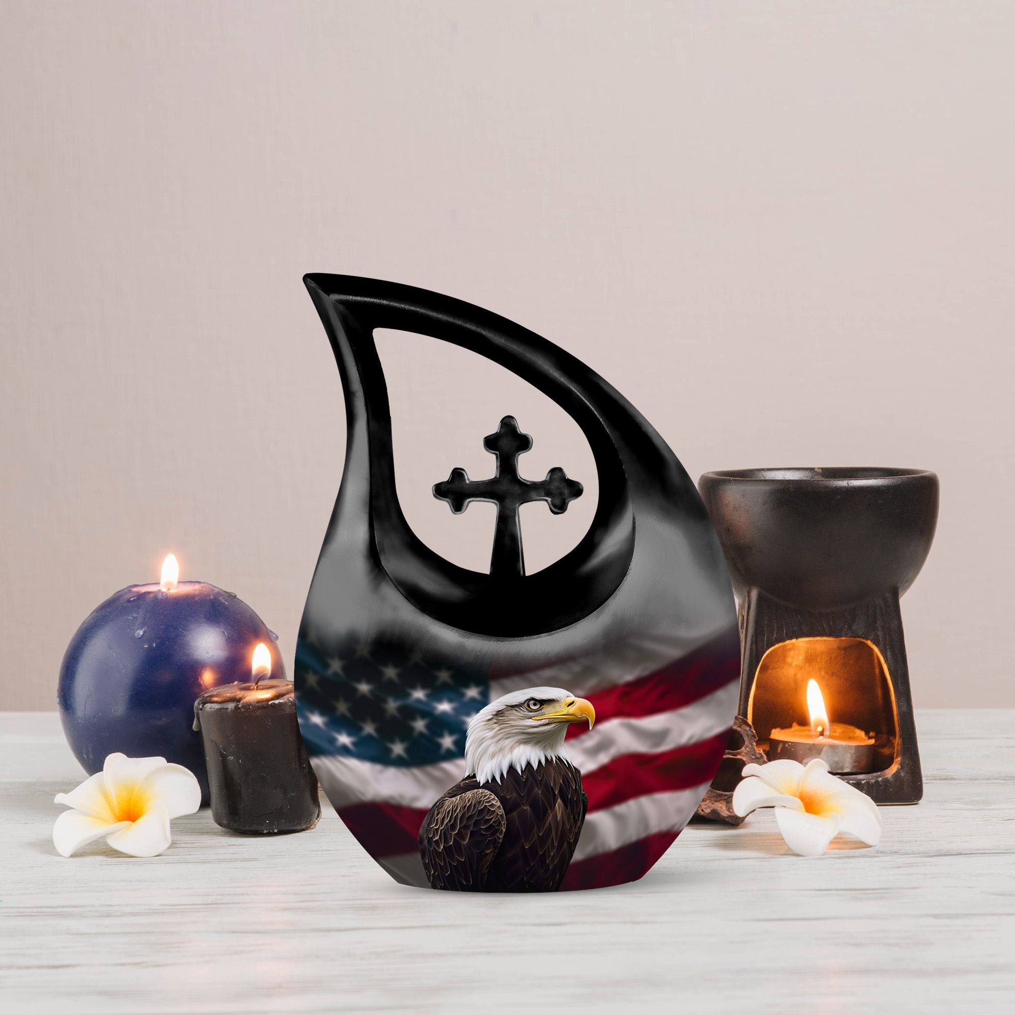 A noble and heartfelt tribute, this patriotic eagle urn symbolizes honor, remembrance, and enduring love—standing proudly as a lasting memorial for those who held America close to their heart.