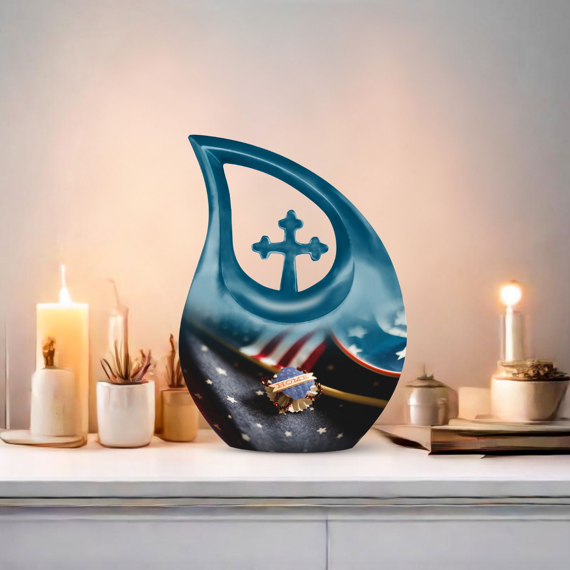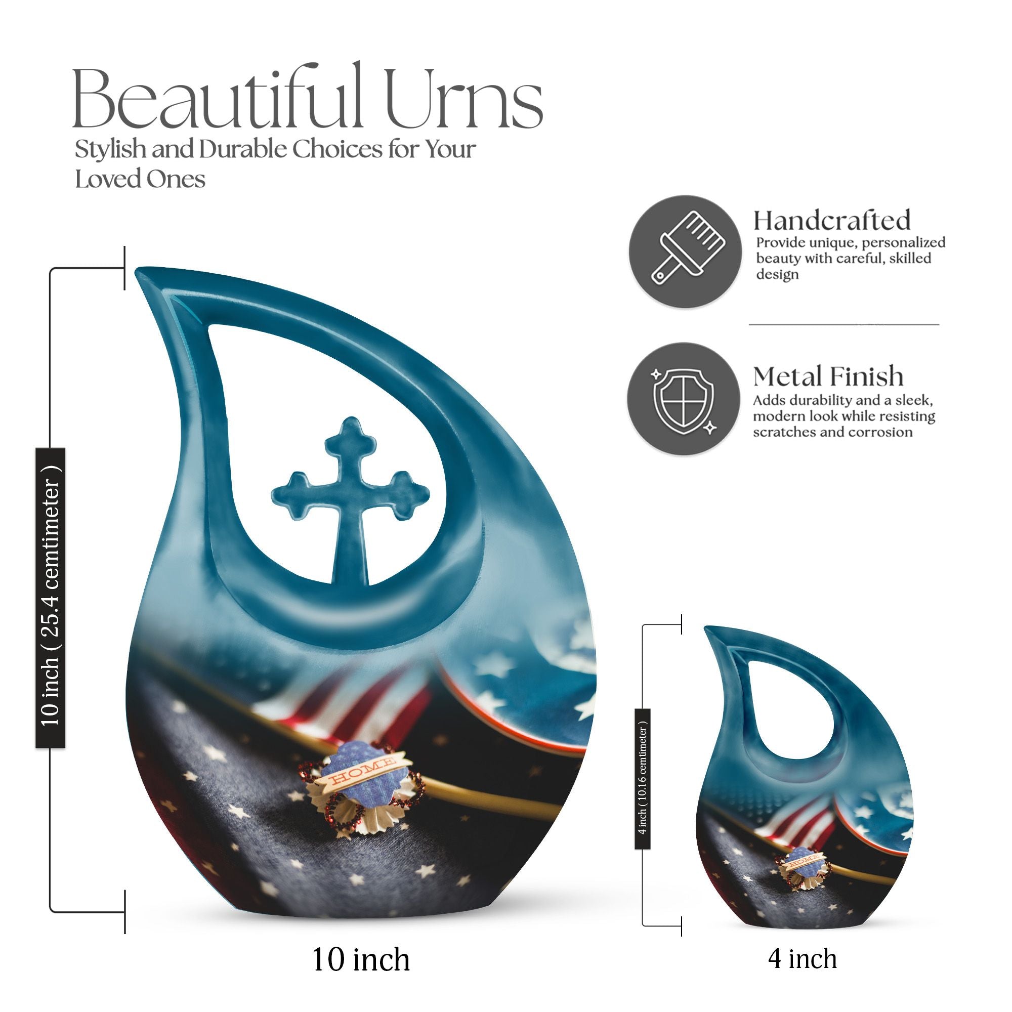 This urn also supports families who prefer memorial keepsakes for ashes, offering a complete remembrance set that honors love, legacy, and national pride. Its symbolic design makes it especially meaningful for veterans, military families, and anyone who held devotion to their country.