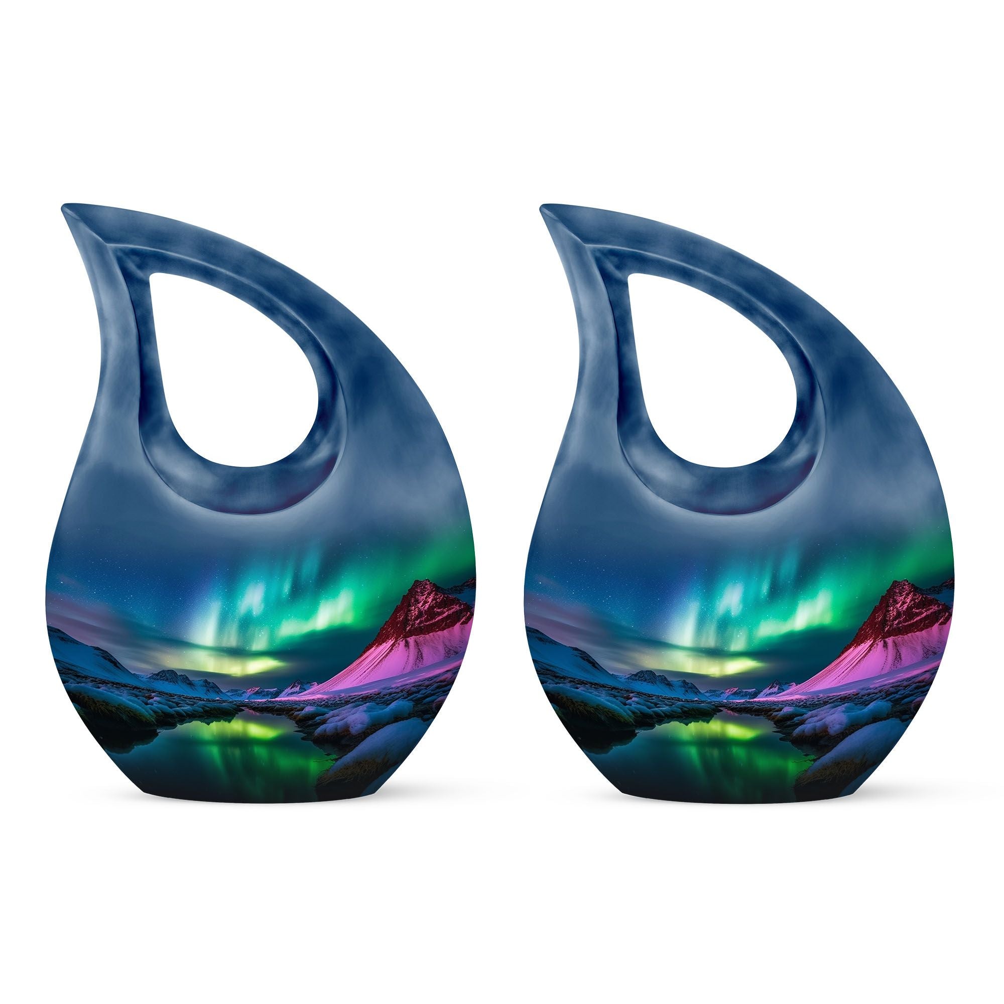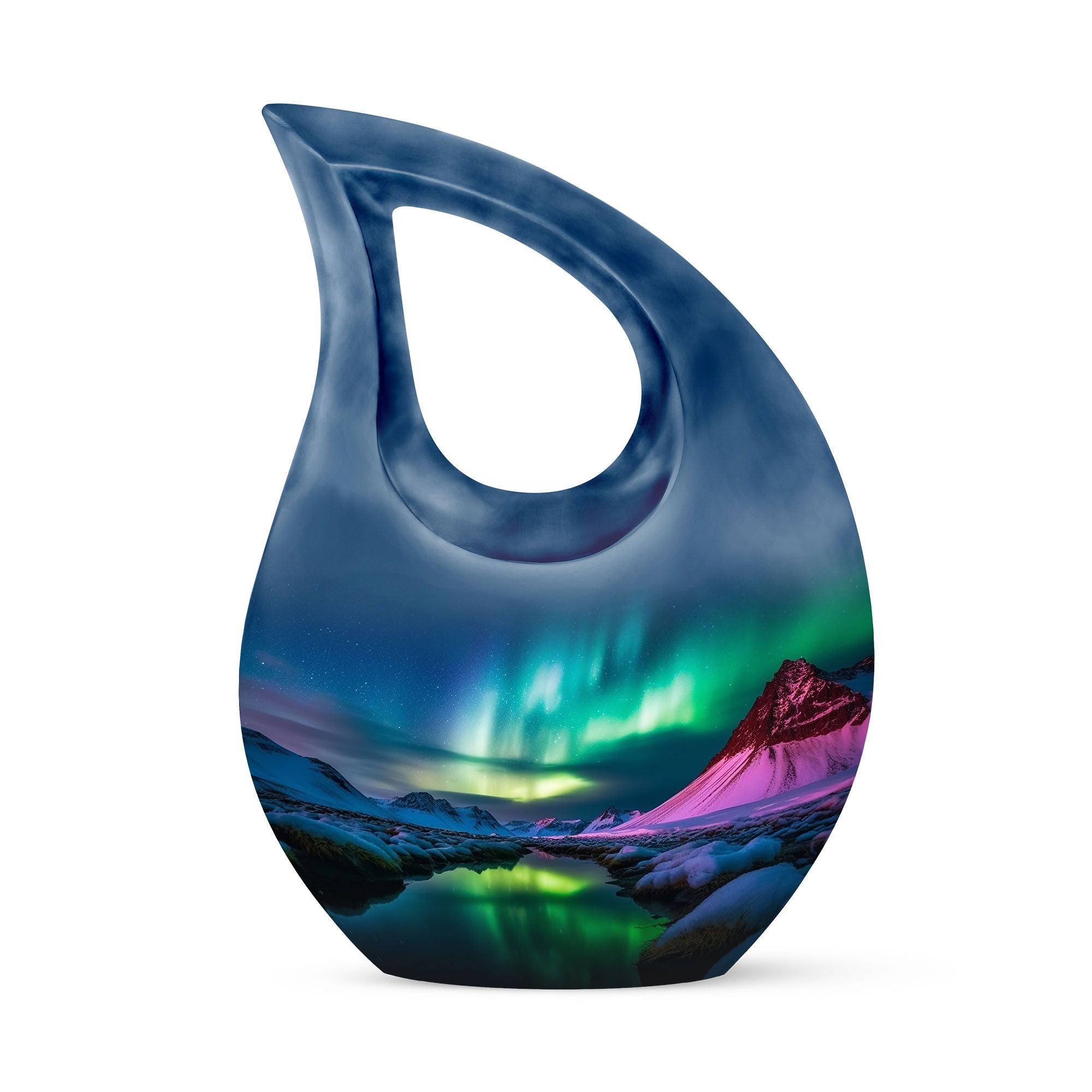 The Aurora Borealis Memorial Urn for Ashes reflects the natural wonder and mystery of the Northern Lights, symbolizing hope, eternity, and the brilliance of a life well-lived. Designed with vibrant aurora-inspired hues, this urn is ideal for those seeking large cremation urns for human ashes or a timeless large funeral urn that radiates peace and light.