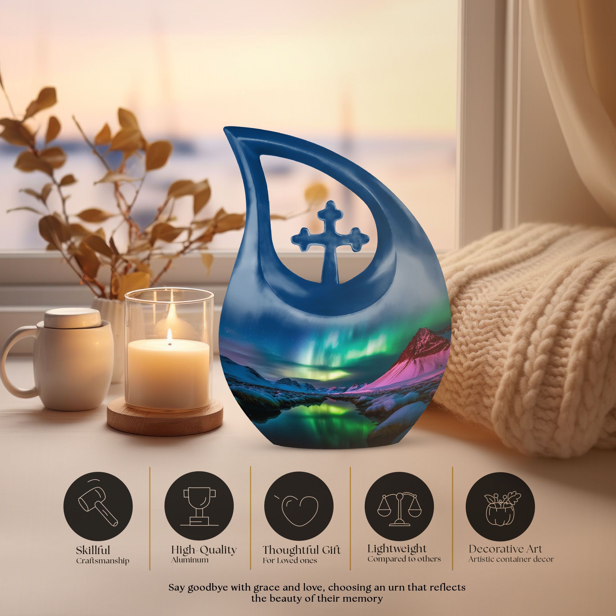 The Aurora Borealis Urn is more than a vessel—it’s a celestial celebration of life and light, a cremation urn adult large that reflects the boundless beauty of the heavens and the eternal journey of the heart.