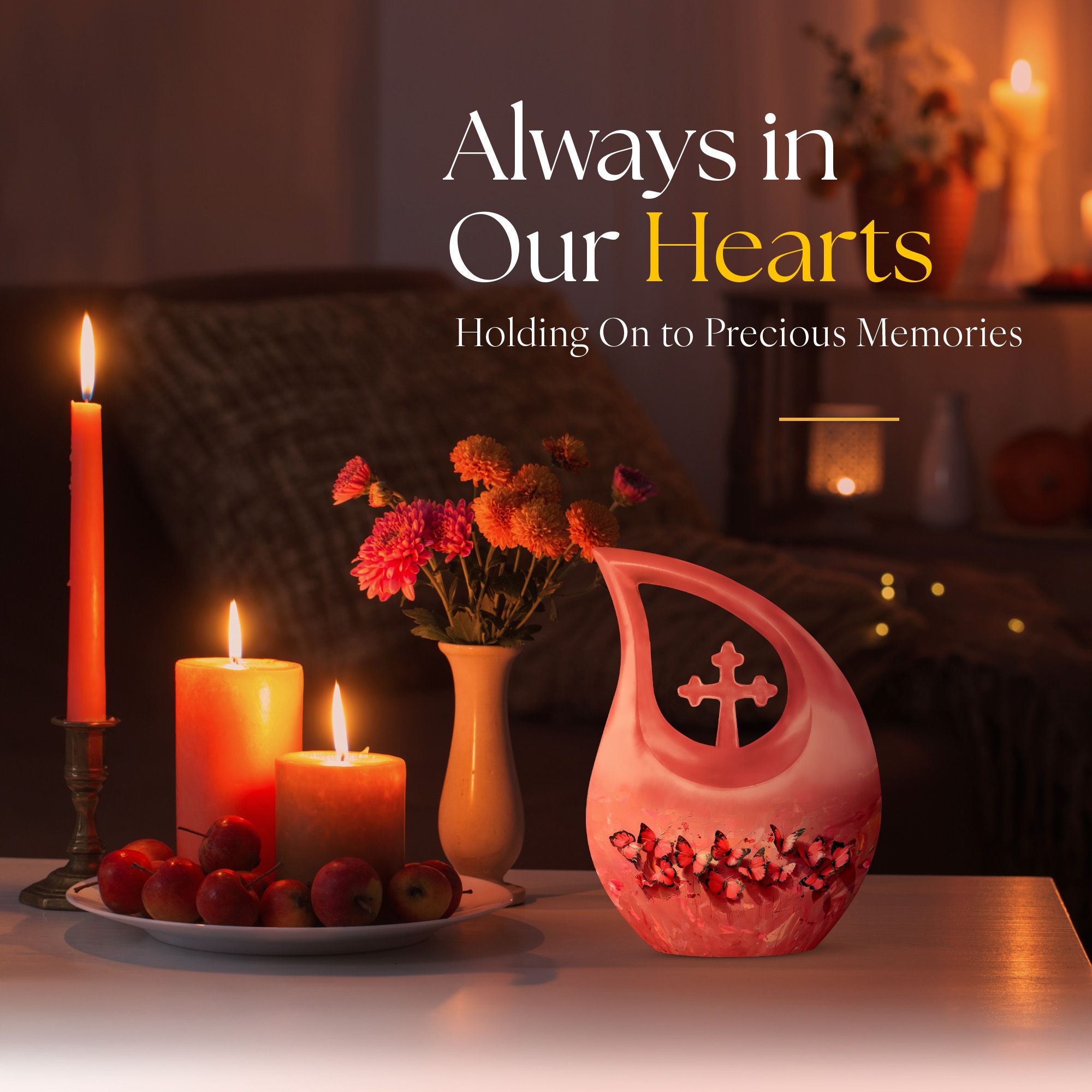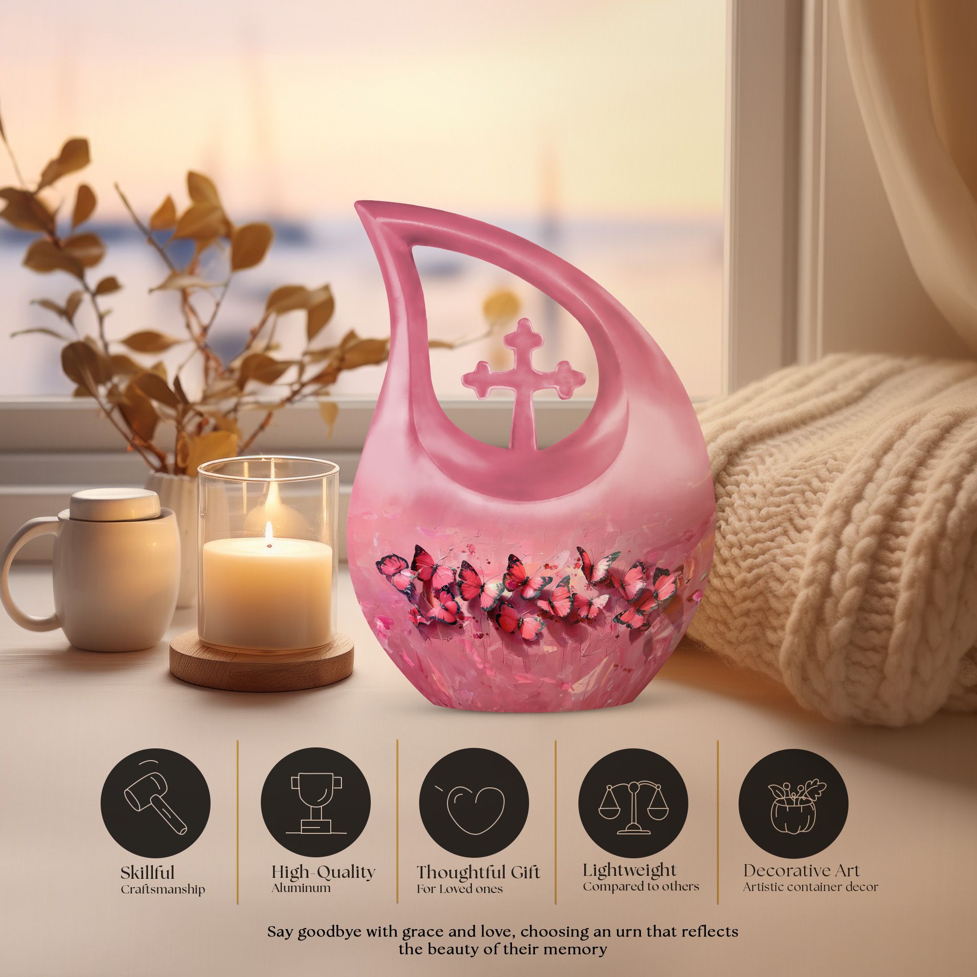 This pink butterfly memorial urn is more than a resting place—it is a symbol of transformation, love, and cherished memories. Its artistic design makes it a timeless tribute to a life well lived.