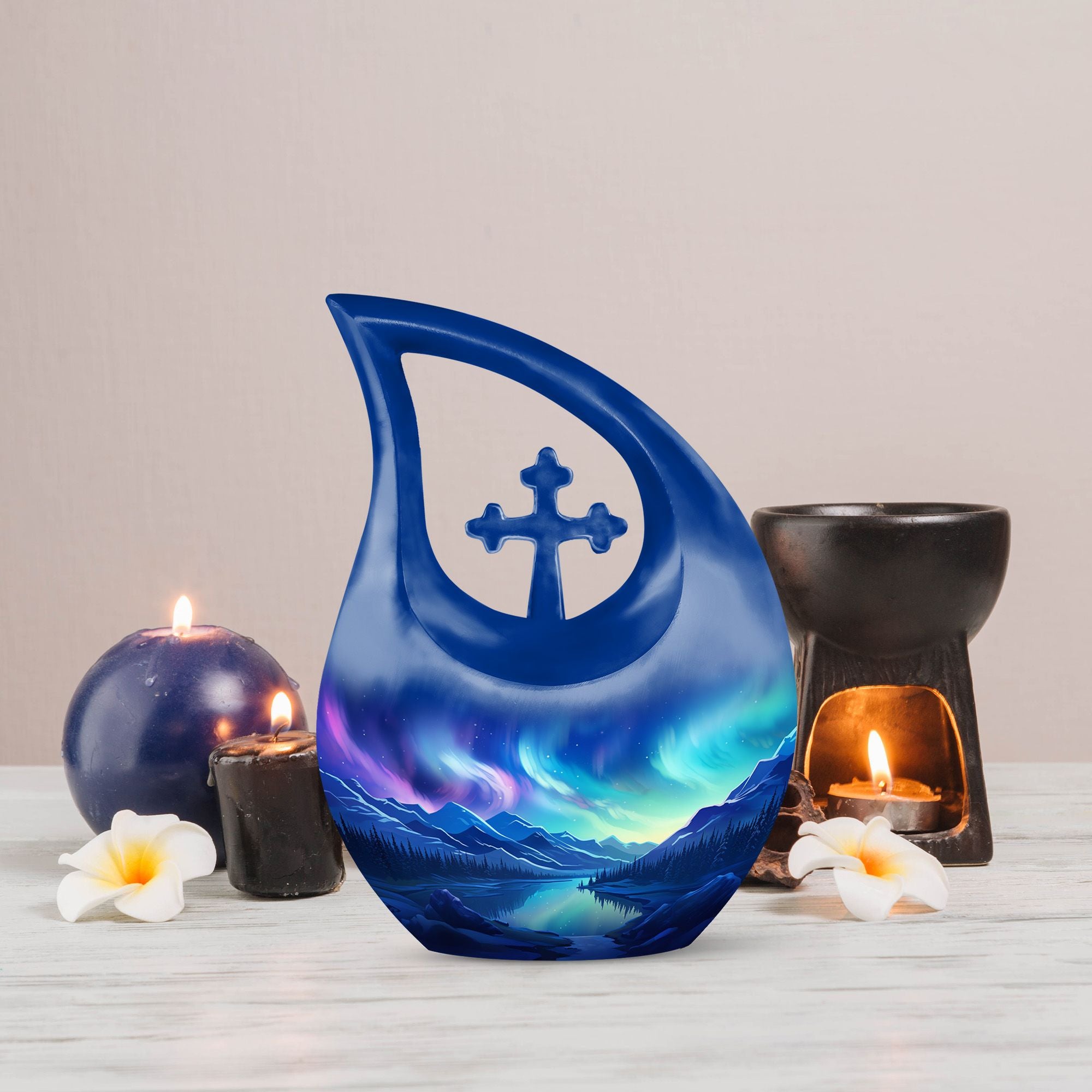Honor the life and spirit of your loved one with the Aurora Borealis Scenic Blue Cremation Urn, a stunning memorial piece that captures the tranquil beauty of the northern lights. Crafted to offer comfort and reflection, this urn serves as a lasting symbol of peace and love. Among the most unique urns for human ashes, it helps preserve cherished memories in a dignified and graceful manner. Whether chosen for a funeral cremation or a special memorial display, it represents everlasting serenity.